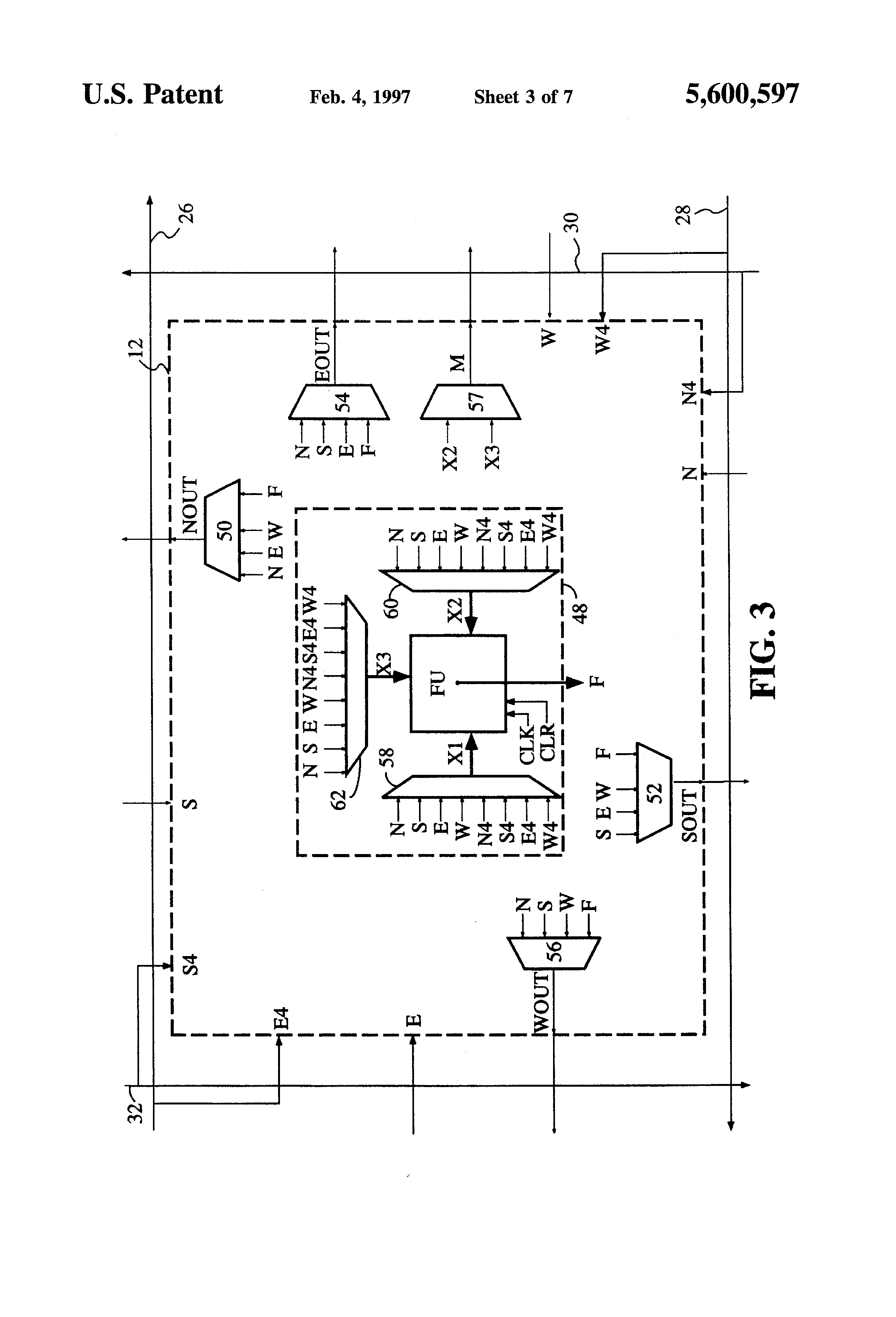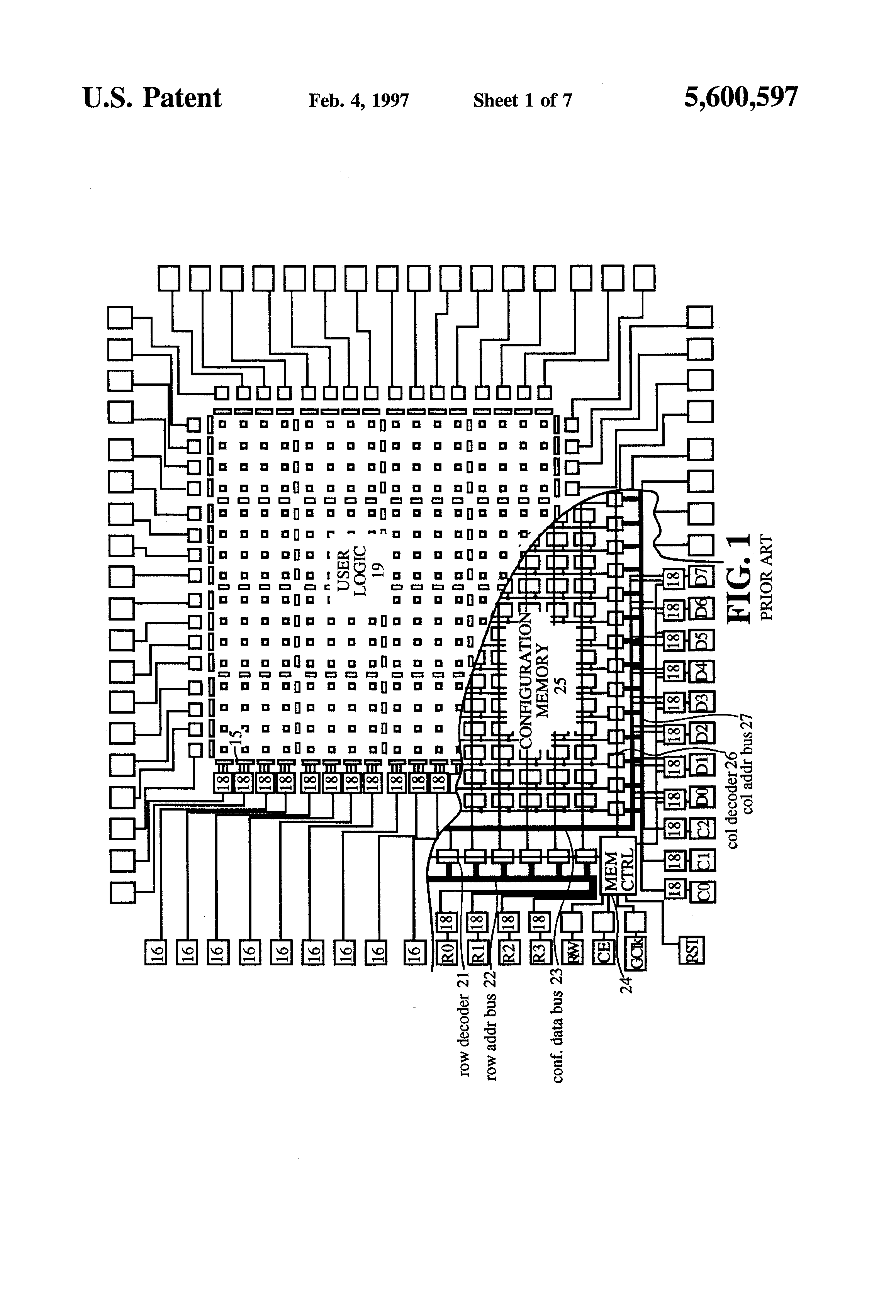 1. A register protect structure comprising: a register having a data input terminal for receiving an input signal D, a register output terminal for providing a register output signal Q, and a clock input terminal; means for generating a user logic signal; means for accessing said register input terminal and register output terminal through configuration memory accessing lines; means for selecting said input signal D from any one of said user logic signal, said configuration memory accessing lines, and said register output signal Q; and register protect means for preventing said user logic signal from being selected by said means for selecting. 2. A register protect structure as in claim 1 in which said register further has a clear input terminal for clearing said output signal Q in response to a clear signal. 3. A register protect structure as in claim 2 further comprising: means for preventing said clear signal from being passed to said clear input terminal. 4. A register protect structure comprising: a register having a data input terminal for receiving an input signal D, a register output terminal for providing a register output signal O, a clock input terminal, and a clear input terminal for clearing said output signal O in response to a clear signal; means for generating a user logic signal; means for accessing said register input terminal and register output terminal through configuration memory accessing lines; means for selecting said input signal D from any of said user logic signal, said configuration memory access lines, and said register output signal O; and register protect means for preventing said user logic signal from being selected by said means for selecting; means for preventing said clear signal from being massed to said clear in terminal, said means for preventing said clear signal from being passed to said clear input terminal comprising a logic gate which receives both said clear signal and a signal from said register protect means and passes said clear signal to said clear input terminal only when said signal from said register protect means is not asserted.