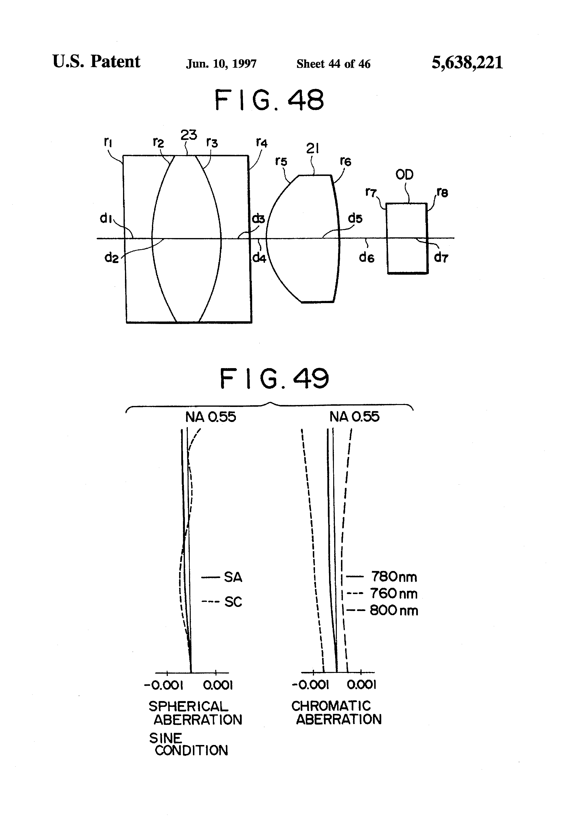 This application is a division of application Ser. No. 08/208,847, filed Mar. 11, 1994, now U.S. Pat. No. 5,479,296, which is a divisional of application Ser. No. 08/005,187, filed Jan. 14, 1993, now U.S. Pat. No. 5,321,550, which is a continuation of application Ser. No. 07/477,464, filed Feb. 09, 1990, now abandoned. 1. Field of the Invention This invention relates to an optical system of an optical information recording/reproducing apparatus in which a semiconductor laser is used as a light source. The invention further relates an objective optical system and a chromatic aberration correcting element suitable for use in the optical system. 2. Description of the Prior Art An optical system of an optical information recording/reproducing apparatus such as optical disk apparatus, etc. is generally shown in FIG. 52. Such an optical system includes a light source portion 10 for emitting a generally parallel luminous flux, an objective optical system 20 for converging (focusing) the luminous flux emitted from the light source 10 onto an optical disk OD, a beam splitter 30 for splitting the luminous flux disposed between the light source 10 and the objective optical system 20 and adapted to split the luminous flux reflected by the disk, and a signal detecting optical system 40 for receiving such split luminous flux. The light source portion 10 has a semiconductor laser 11, a collimator lens 12, and a beam shaping element 13. The objective optical system 20 includes an objective lens 21, and a mirror 22, which are disposed within a head 50 which is slidable in the radial direction of the optical disk. Also, the objective lens 21 is mounted on an actuator (not shown) disposed within the head 50 and designed such that the objective lens 21 can be finely moved at least in the optical axis direction thereof so that an out-of-focus caused by warping of the disk, etc. can be corrected. The signal detecting optical system 40 has a beam splitter 41, a tracking signal detecting system 42, and a focusing signal detecting system 43, and is adapted to read information recorded in the disk and error signals of the tracks by light reflected from the optical disk OD. Incidentally, an emitting light wavelength of the semiconductor laser used as a light source is shifted as a result of changing of output power and/or temperature. Because of the foregoing reason, when the chromatic aberration of the optical system is not yet corrected, the position of a light converging point is varied into a shift of the wavelength. When the light converging position is not coincident with the recording surface of the disk, there is a high possibility that incorrect writing and reading will be performed. However, out of focus due to comparatively gradual change of wavelength caused by change of temperature or the like is automatically corrected by the aforementioned focusing servo when the collimator lens is corrected for chromatic aberration and for change of temperature. However, at the time when data is written, an oscillation wavelength of a semiconductor laser is instantaneously shifted by several nm between a region where the temperature is increased and a region where the temperature is not increased. The out of focus caused by such radical shift cannot be corrected by the above-mentioned focusing servo. Therefore, especially when writing is performed, correction of the chromatic aberration of the objective optical system is important. An optical system in which the objective lens itself is corrected in chromatic aberration is disclosed in, for example, Japanese Patent Early Laid-Open Publication No. SHO 63-10118; Japanese Patent Early Laid-Open Publication No. SHO 60-232519; and Japanese Patent Early Laid-Open Publication No. SHO 58-72114. However, the lens of the Japanese Patent Early Laid-Open Publication No. SHO 63-10118 is of a three component structure including an aspherical lens, while the lenses of the Japanese Patent Early Laid-Open Publication No. SHO 60-232519 and the Japanese Patent Early Laid-Open Publication No. SHO 58-72114 are of four component structures of glass lenses. Accordingly, these lenses are heavy in weight compared with lenses which are not corrected in chromatic aberration, and a load imposed to a movable actuator is large. As an objective lens for an optical disk apparatus is moved at a high frequency for the purposes of focusing and tracking, it is an important requirement that the objective lens is made compact in size and light in weight in order to reduce the load on the actuator. Also, Japanese Patent Early Laid-open Publication No. Sho 62-269922 discloses an optical system for correcting the chromatic aberration of an objective lens by excessively correcting the chromatic aberration of a collimator lens. With this construction, it is necessary to excessively correct even a focusing error detecting optical system because otherwise, out of focus is generated or caused by the focusing servo. However, the correcting amount of the chromatic aberration of the focusing error detecting optical system is proportional to a second raised power of the ratio M, between a focal length of a condenser lens of this optical system and a focal length of the objective lens. Therefore, in an ordinary optical disk apparatus taking a value of about M=10 in view of the size of a light receiving element ,it is difficult to design a system such that the condenser lens can sufficiently correct the chromatic aberration. This invention has been accomplished in order to solve the above-mentioned problems. An optical system of an optical information recording/reproducing apparatus according to the present invention comprises a light source portion for emitting a generally parallel luminous flux, an objective optical system for converging the luminous flux emitted from the light source onto a medium, and a beam splitter for splitting the luminous flux reflected by the medium from a light path directed to the light 