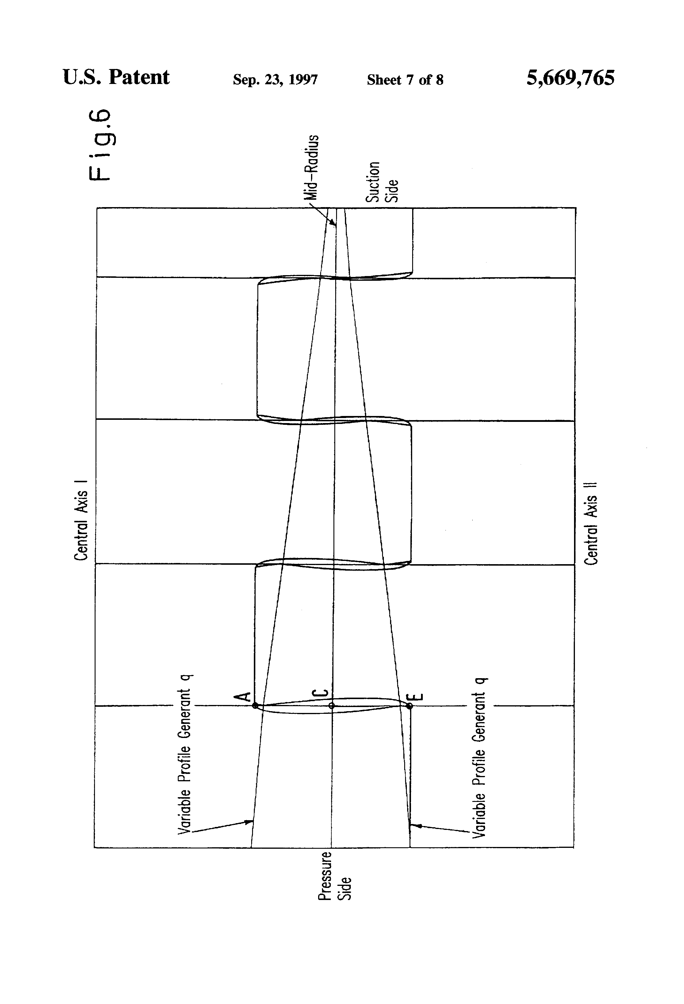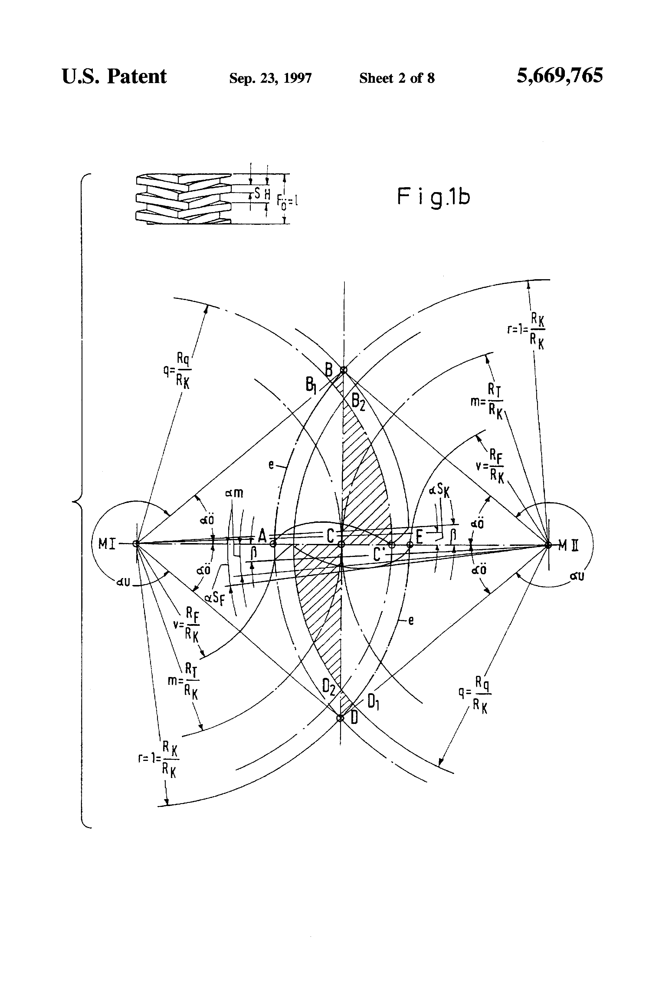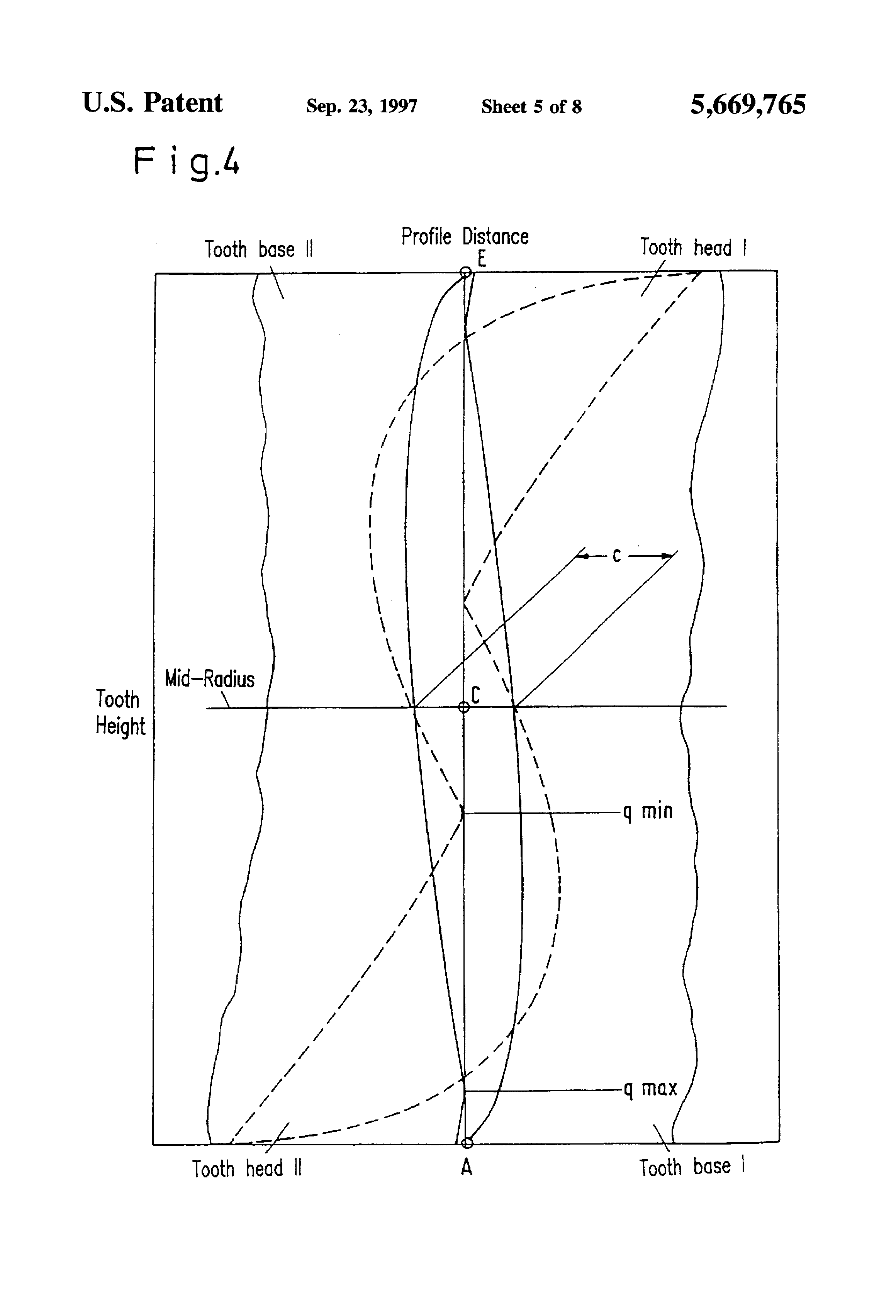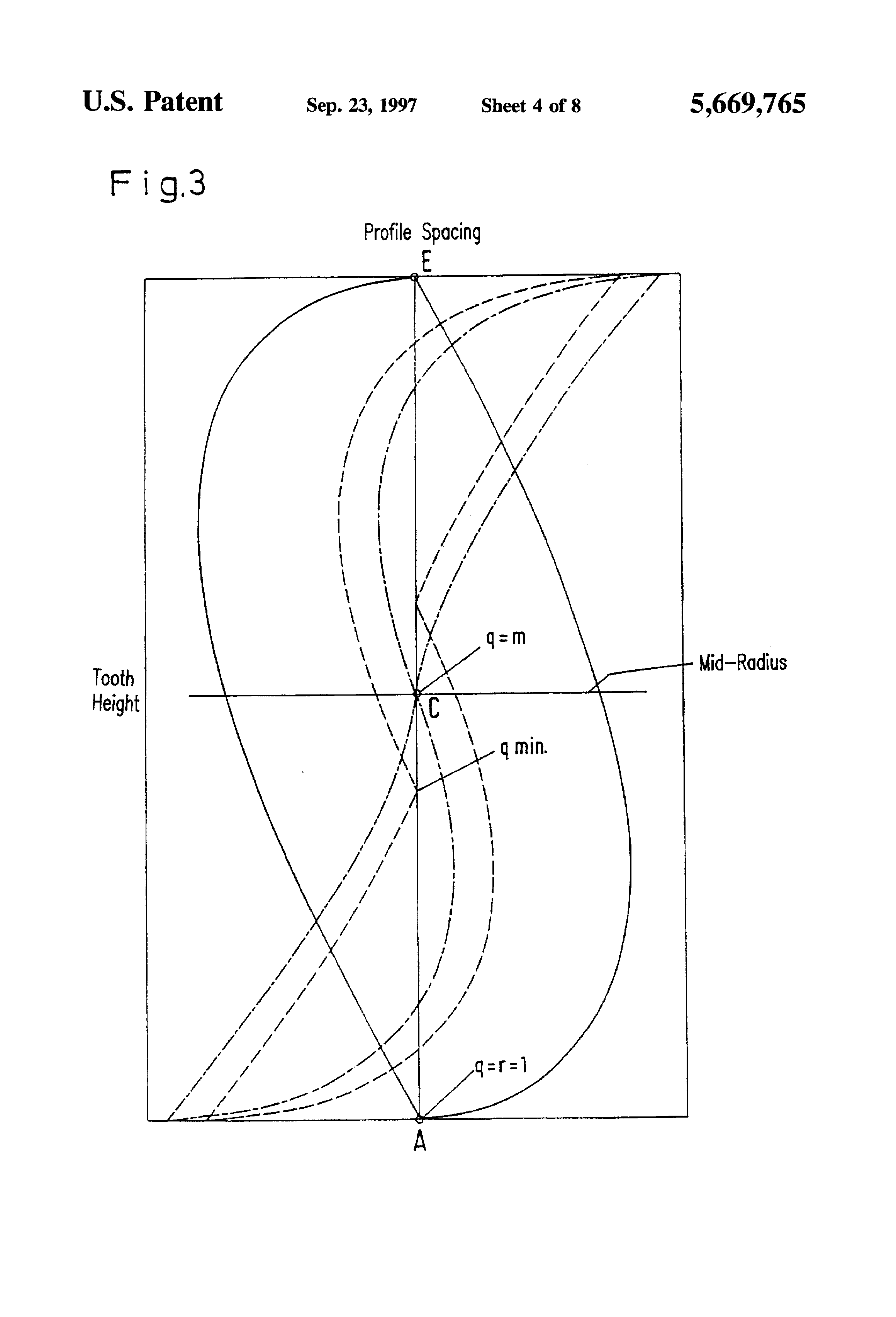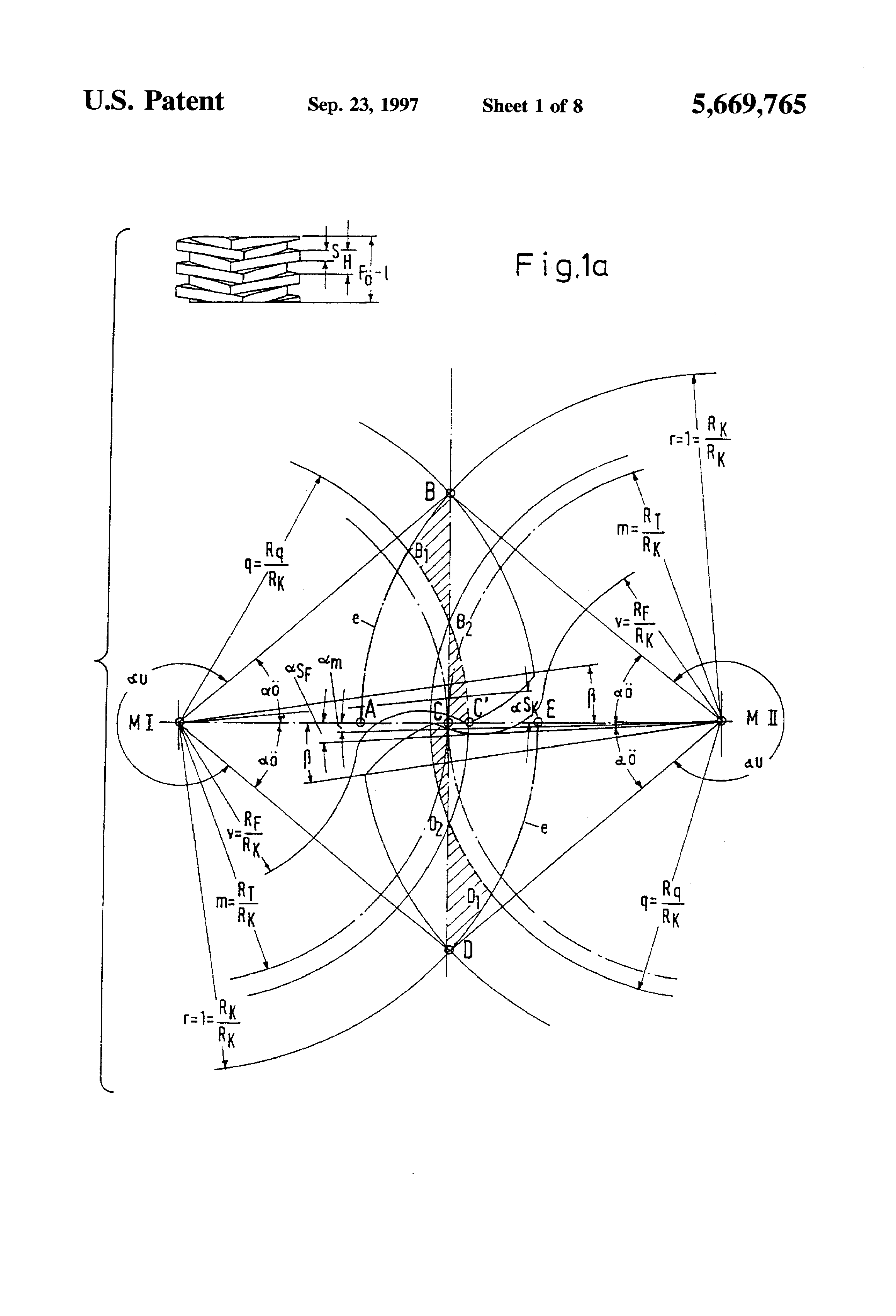This is a Continuation of Application Ser. No. 08/373,277 filed as PCT/DE93/00595, Jul. 3, 1993 published as WO94/03730, Feb. 17, 1994, abandoned. With screw spindle pumps it is known to provide rotating delivering elements, called rotors, with screw-shaped profiles which make up a gear tooth system. The rotors are not primarily used to transmit force. Instead, the rotors are used to seal off the delivering chamber between the suction and pressure chambers. With so called external bearing screw spindle pumps, the rotors rotate with zero contact in the bore and in the flanks. Such pumps are suitable for pumping non-lubricating, viscous media, which often contain particles of dirt and solids. The volumetric and overall efficiency are influenced mainly by the viscosity of the delivering medium and gaps within the pump. Whereas, the pressure within the pump is influenced by the distance between bearings, the length of the rotor, the pitch of the rotor, the rotor diameter and the hub ratio. The hub ratio, referred to as "Nu", is a ratio of the tooth base diameter to the tooth head diameter. A differentiation is made between the "circumferential gap" (this is the gap between the rotor and the surrounding rotor bore), the "base gap" (this is the gap between the outside diameter of the one rotor and the root circle diameter of the other rotor) and the "flank profile gaps" (this is the gap between the flank profiles of the rotors). With regard to the flank profile gap a differentiation is made between a gap that must be pre-set for the required zero-contact running and a profile shape-dependent gap that occurs due to the laws of a gear tooth system. The profile-dependent loss gap forms the subject of the present invention. If the non-lubricating media to be conveyed contains solid particles, the reflux that occurs due to the counter-pressure causes abrasive wear (with any play). As a result thereof, the play increases so that after only a brief operating period the effective delivery rate of the pump is reduced. In practice, this problem is counteracted either by using several closed chambers of the rotor sequentially (i.e., increasing the number of the chambers) or by a differing the speed of the contra-rotor. Using several closed chambers causes a lengthening of the rotor and, accordingly, requires a large distance between bearings and limits the delivering pressure due to the greater deflection. When differing the speed of the contrarotor, the rotors must have a different number of threads, therefore, the filling times increase and (especially at higher viscosities) complete filling of the chamber is prevented. A further disadvantage of asymmetric rotors is that the smallest possible rotor pitch is always greater than with symmetric rotor pairs, otherwise the tooth thickness or thread thickness is too small. This disadvantage also limits the suction head. A conventional screw spindle pump, illustrated in FIGS. 7 and 8 has, as delivering elements, two zero contact meshing conveyor screw pairs rotating in opposite directions, each of which comprises a right-hand thread conveyor screw 1 as well as a left-hand thread conveyor screw 2. As a result of this two-flow arrangement the axial thrust is compensated. The meshing conveyor screws together with the enclosing housing 3 form individually closed delivering chambers. When rotated by a drive shaft 4 these chambers move continuously and parallel to the shafts from the suction side to the pressure side. The direction of rotation of the drive shaft determines the movement of the delivering chambers. A pressure build-up takes place linearly over the length of the delivering elements. The medium that flows in or is sucked up through the suction connection 5 of the pump is fed in the pump housing 6 in two partial flows to the two suction chambers. The torque transmission from the driving to the driven shaft is effected by a gear drive 7, whose adjustment ensures the zero contact running of the delivering elements. Reference numeral 8 indicates a stuffing box. The direction of rotation of the drive shaft 4 is indicated in FIG. 7 by arrow 9. FIG. 8 shows diagrammatically the pressure connection 10. The invention relates to a pair of conveyor screws for rotating positive-displacement pumps. The conveyor screws, in the form of a rotor and a contra-rotor, rotate with zero contact in the bore and in the flanks. The flanks rotate at the same speed (screw spindle pumps) and form loss gaps between each other. The rotors have the same thread depths, the same number of threads and flank profiles which are symmetrical on both sides and, with regard to their pitch, each flank profile includes a tooth base positioned below a flank profile reversing radius and a moth head positioned above the flank profile reversing radius. It is the object of the invention to develop a pair of conveyor screws of the type described above, having a short rotor length and a correspondingly small distance between bearing supports, with as few stages as possible, a large tooth head width, a small rotor pitch and a small circumferential gap length. The screw spindle pump according to the invention has a relatively high delivery flow and a high delivering pressure and uses only a limited amount of material. The invention will be explained in greater detail with reference to diagrams. With regard to the symbols and terms which are used reference is made to the "overview table". FIG. 1a shows a plane of action in face section for qmin; FIG. 1b is an illustration according to FIG. 1a for qmax; FIG. 2 shows an axial section profile; FIG. 3 shows an axial section profile gap with a comparison for q=1 (continuous line), q=m(cross-marked line), q=qmin (dot marked lines) at the same pitch H and the same rotor diameter RK (DK) and the same tooth base diameter DF. The axial section profile gaps c, which depend on the position of the profile reversing radius q, represent the distance between opposing f