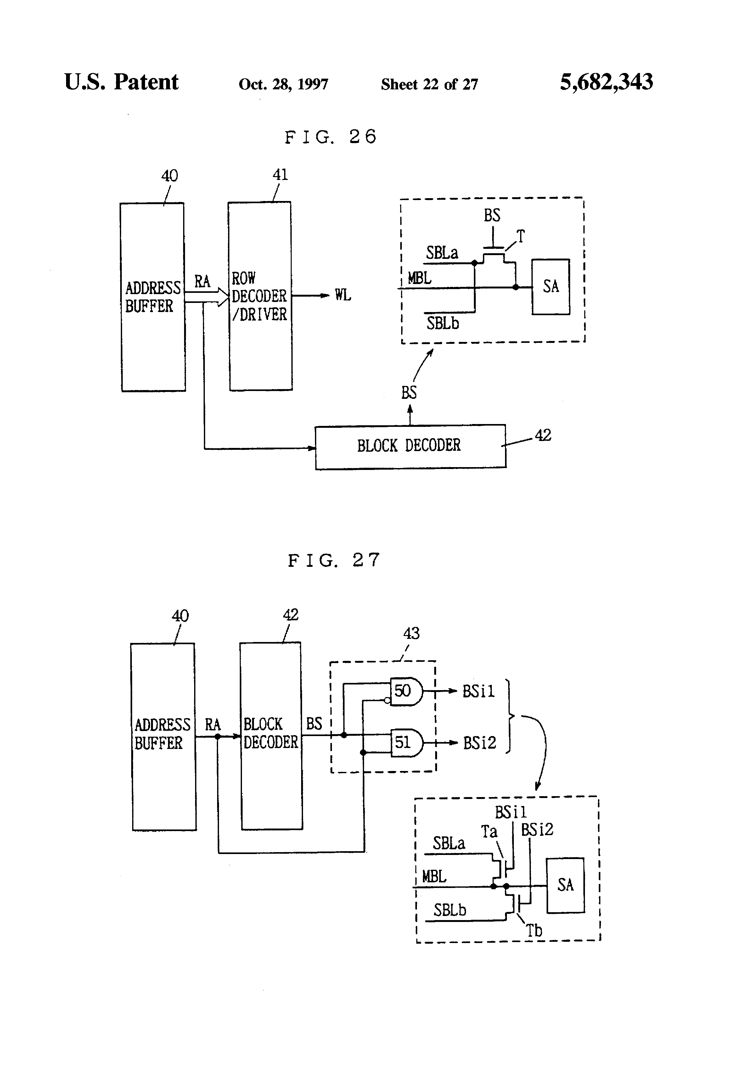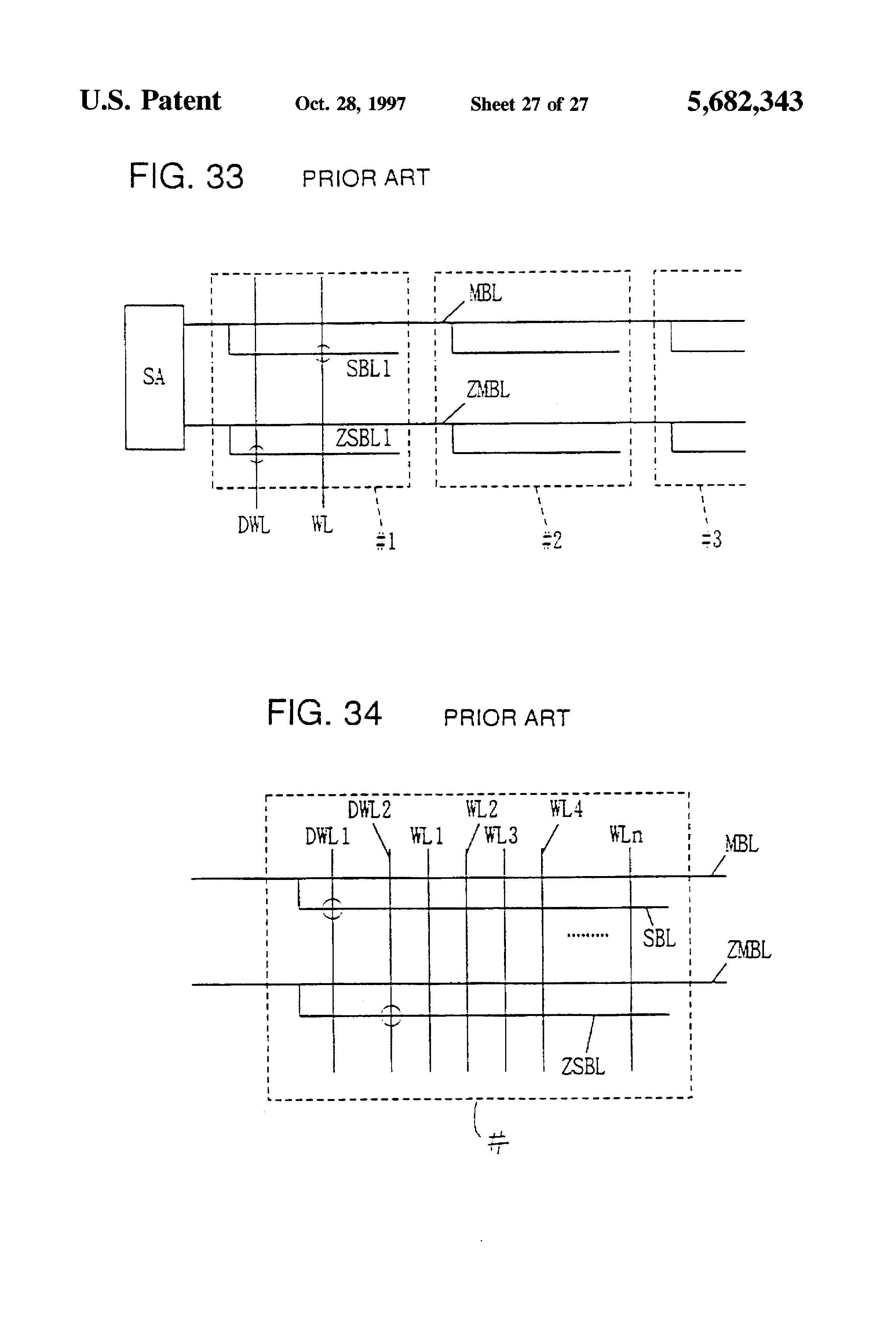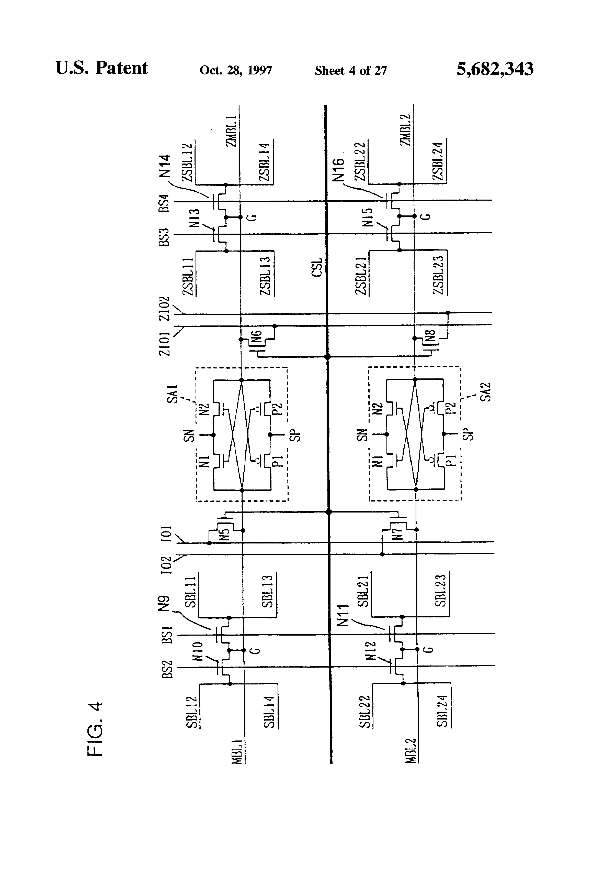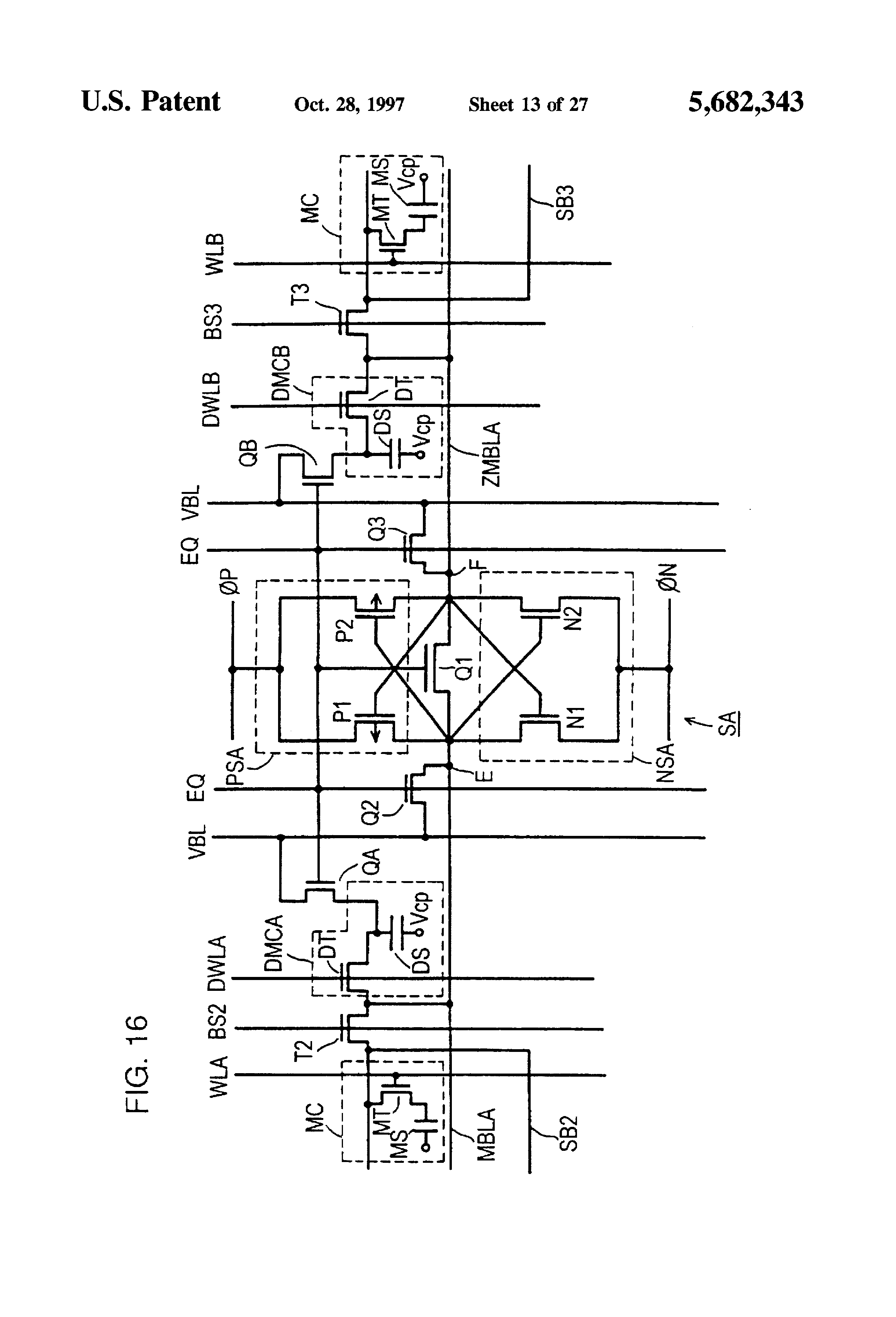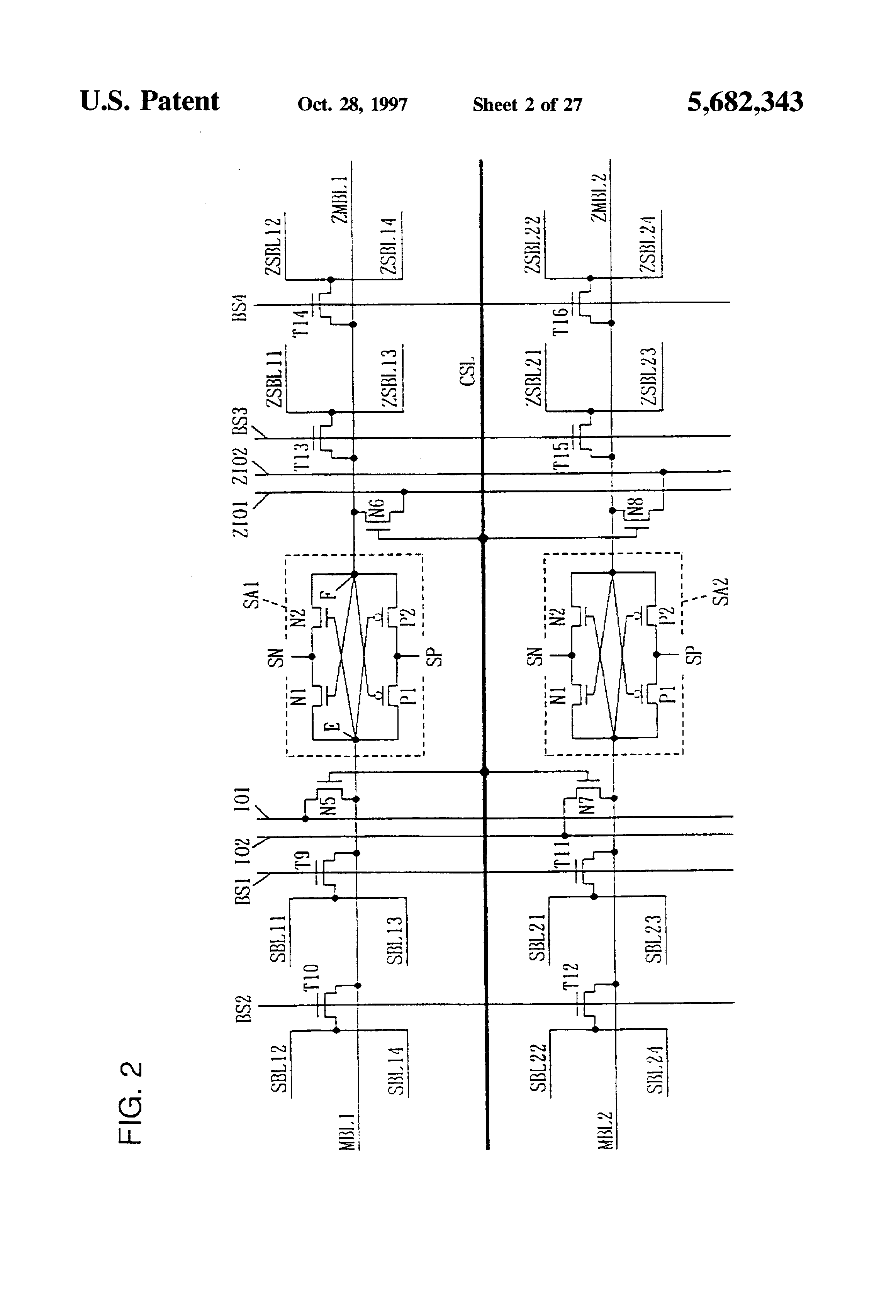 Main bit lines MBL and ZMBL are disposed at opposite sides of a sense amplifier SA. Main bit lines MBL and ZMBL each are provided for paired sub-bit lines SBL1 and SBL2 (or SBL3 and SBL4). Sub-bit line pair SBL1 and SBL2 is connected to main bit line MBL via a block select switch T1. Sub-bit line pair SBL3 and SBL4 is connected to main bit line ZMBL via a block select switch T2. Since one main bit line is provided for two sub-bit lines, a pitch of the main bit lines is twice as large as a pitch of the sub-bit lines, so that conditions on the pitch of main bit lines are remarkably eased, which facilitates layout of elements.