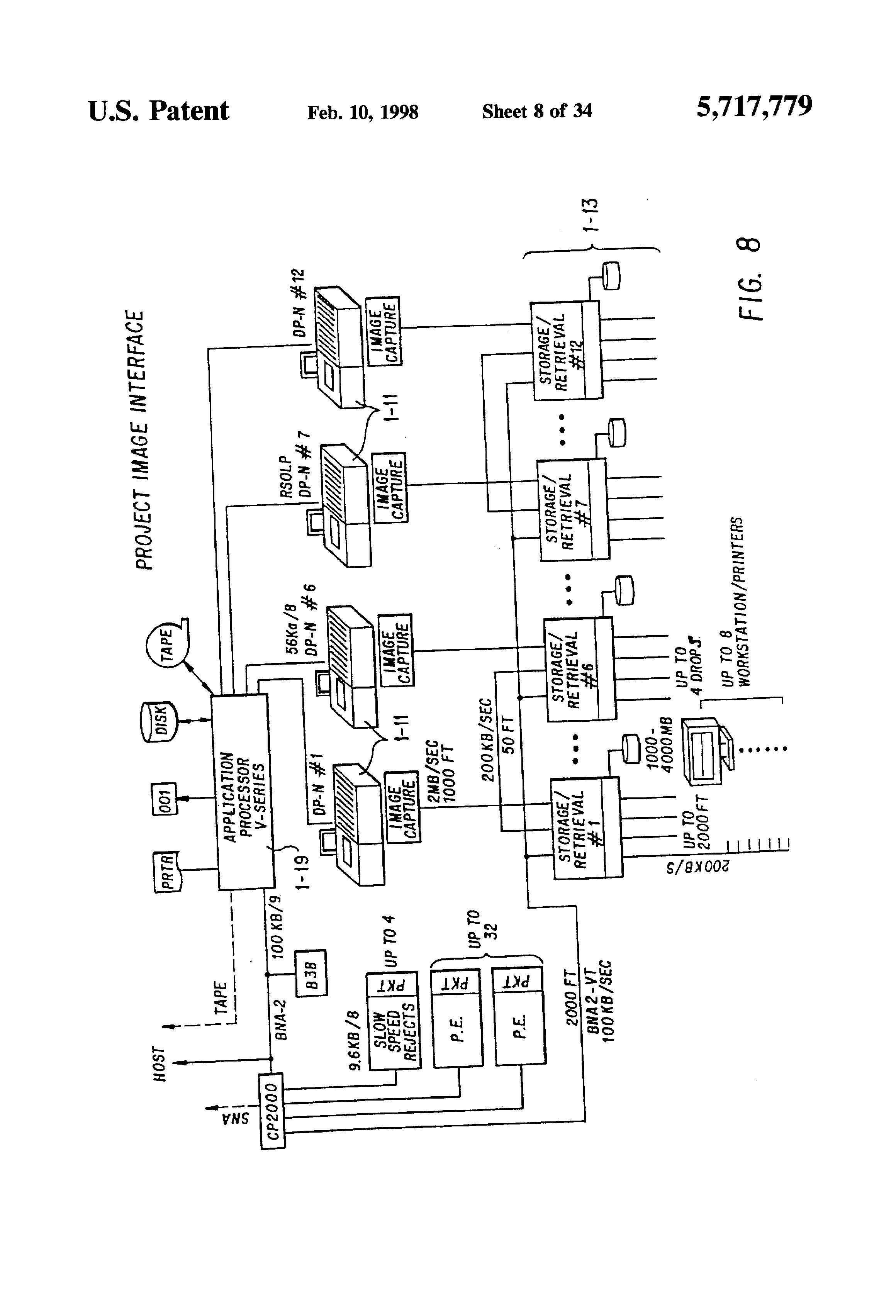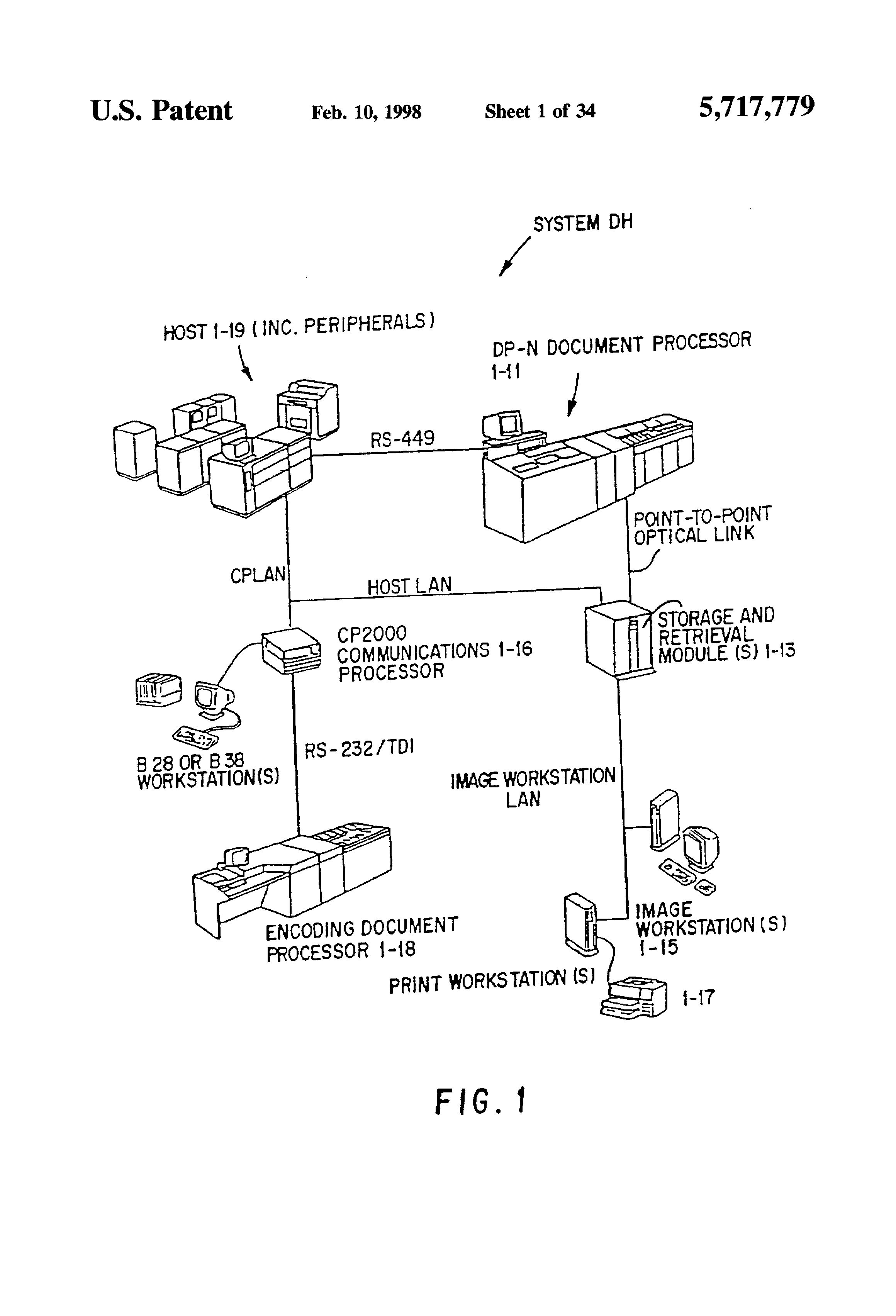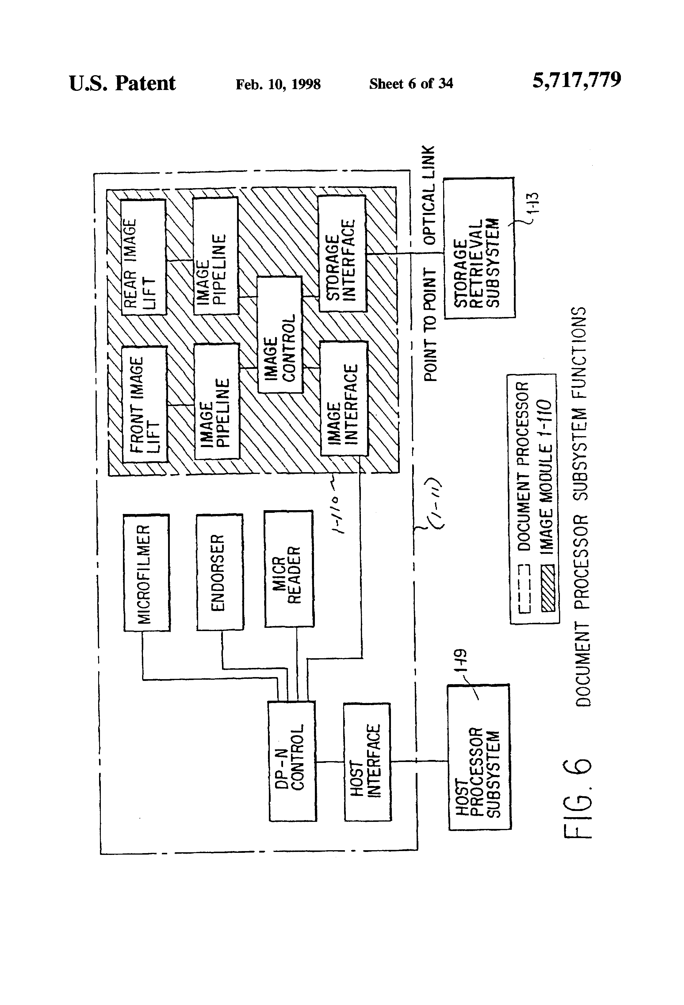 Which is a Division of application Ser. No. 07/874,876 filed Apr. 28, 1992 now U.S. Pat. No. 5,259,043 which is in turn a Div. of U.S. Ser. No. 07/419,355 filed Oct. 10, 1989 now U.S. Pat. No. 5,155,776. The following U.S. Applications, all filed by the instant assignee on Oct. 10, 1989, co-pend with the instant case and are somewhat related: U.S. Ser. No. 419,574 for "ELECTRIC IMAGE LIFT", U.S. Ser. No. 419,560 for "INFRA-RED EXTRACTION FROM ILLUMINATION SOURCE", U.S. Ser. No. 419,044 for "RANDOMIZING OPTICAL CONVERTER FOR ILLUMINATION BEAM", U.S. Ser. No. 419,572 for "PACKAGING OF COMPONENTS FOR IMAGE LIFT". 1. Field of the Invention This invention relates to high-speed check processing, and more particularly to associated "image-lift" operations whereby an electronic image of a document is made and stored. 2. Background, Features Automatic, high-speed check-processing/imaging systems are well known in the art. Many difficulties and disadvantages of present systems stem from how well the imaging-radiation is tailored to the detectors. Since the checks can be mis-imaged by poorly matching imaging radiation to its associated electronic camera, the result is apt to be errors--e.g. check-images that include optical "noise" or other distracting information, or that "miss" meaningful data. Workers recognize that electronically-stored data ("electronic images") can be processed much quicker, rare reliably and less subject to error. But to do so, one must first capture an accurate image, or modified image, of the physical document and convert this into electronic computer (EDP) signals. The EDP image-signals can then be manipulated (e.g. be reproduced for visual review, be sorted and distributed, etc.) much more rapidly, easily and reliably than physical documents. Current systems contemplated for "electronic image-lift" teach using a video camera by which an operator views the front and back of the actual document as desired. Based on what he sees, the operator can electronically enter document-data into a computer system; e.g., such things as check-amount, account number and other data necessary for processing document transactions. Such physical viewing is labor-intensive, is subject to error (e.g. from operator fatigue) and is substantially slower than an automated image-capture arrangement. Workers are beginning to think of using imaging technology as a way of improving document processing, as disclosed, for example, in U.S. Pat. Nos. 4,510,619; 4,205,780; 4,264,808; and 4,672,186. Generally, imaging involves optically scanning documents to produce electronic images that are processed electronically and stored on high capacity storage media (such as magnetic disc drives and/or optical memory) for later retrieval and display. It is apparent that document imaging can provide an opportunity to reduce document handling and movement, since the electronic images can be used in place of the actual documents. It would be somewhat conventional to think of document processing with "image capture" using video cameras, with two light sources, one to illuminate each side of a document, plus various lenses to focus light onto the document. Successive document-images ("image slices") can be reflected from the document, front and back, into respective video cameras. These can convert the optical image into electronic signals; which can then be converted by appropriate circuitry into digital form. But the foregoing would have serious disadvantages; e.g. it would require two light sources and two camera systems--something expensive to provide and cumbersome to coordinate. This invention addresses such disadvantages; e.g. teaching use of a single, high-intensity, well-cooled light source (cf. high-output xenon bulb, requiring substantially less power than a two lamp system); and mounting the light source and associated optical components on a single base, and under a document transfer track, for ready access (e.g. for maintenance) and for better thermal isolation. Also, the taught system is modular (e.g. to plug-in to a relatively conventional sorter); it simplifies service and manufacture using interchangeable, easily-installed components. The system disclosed uses randomly-distributed fiber optics and electronic image conversion means in a high speed, automated "image-lift" system; e.g. one capable of accommodating the present advanced needs of financial institutions for document processing. An object hereof is to address at least some of the foregoing problems and to provide at least some of the mentioned, and other, advantages. These and other features and advantages of the present invention will be appreciated by workers as they become better understood by reference to the following detailed description of the present preferred embodiments which should be considered in conjunction with the accompanying drawings, wherein like reference symbols denote like elements: FIG. 1 is a perspective schematic idealized configuration of an entire Document Handling System DH apt for using our invention, FIG. 2 is an idealized perspective of a Document Processor portion of this system DH; with FIG. 3 showing portions thereof in side view and very schematically; and FIGS. 4, 5 showing in partial-perspective certain submodules thereof; FIG. 6 is a block diagram showing functional units of this Document Processor; while FIG. 7 diagrams image-signal flow therein; and FIG. 8 is a block diagram in the fashion of FIG. 1, showing a number of such Document Processors; FIG. 9 is an upper perspective view of a portion of an Image-Station embodiment, with a different view in FIG. 9A and with portions thereof schematically indicated in the plan view of FIG. 10 and the illumination-optics portion thereof very schematically (functionally) indicated in FIG. 11; FIG. 12 is a diagram indicating functionally, a preferred construction of a Fibre Optic bundle portion of this embodiment; while FIGS. 13, 13A are upper perspective views (fr