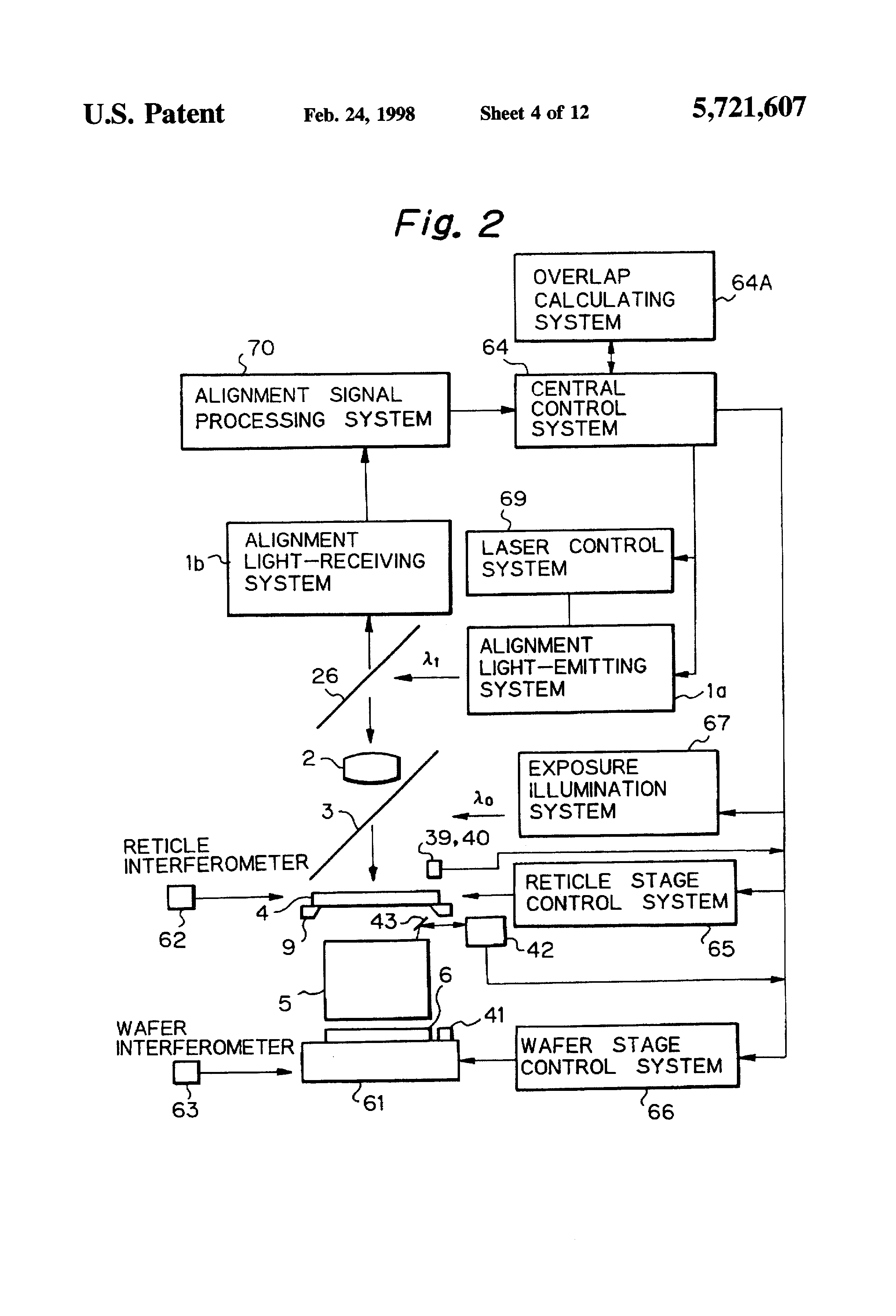An alignment method in which a reticle and a wafer are aligned with each other by using a heterodyne alignment apparatus. The method makes it possible to minimize the time required for alignment even if a wafer beat signal varies for each shot region on the wafer. In pre-alignment of the wafer, AGC (Automatic Gain Control) of a wafer beat signal (SW) is initiated when a central control system confirms that the displacement between the center of a wafer mark and the center of an irradiation region of an alignment light beam irradiated to the wafer has reached a value within ±ΔL1 in the measuring direction (direction X) and a value within ±ΔL2 in the non-measuring direction (direction Y) on the basis of the result of calculation by an overlap calculating system, before the displacement between the reticle and a grating-shaped wafer mark reaches a value within ±1/4 of a grating pitch (PW).