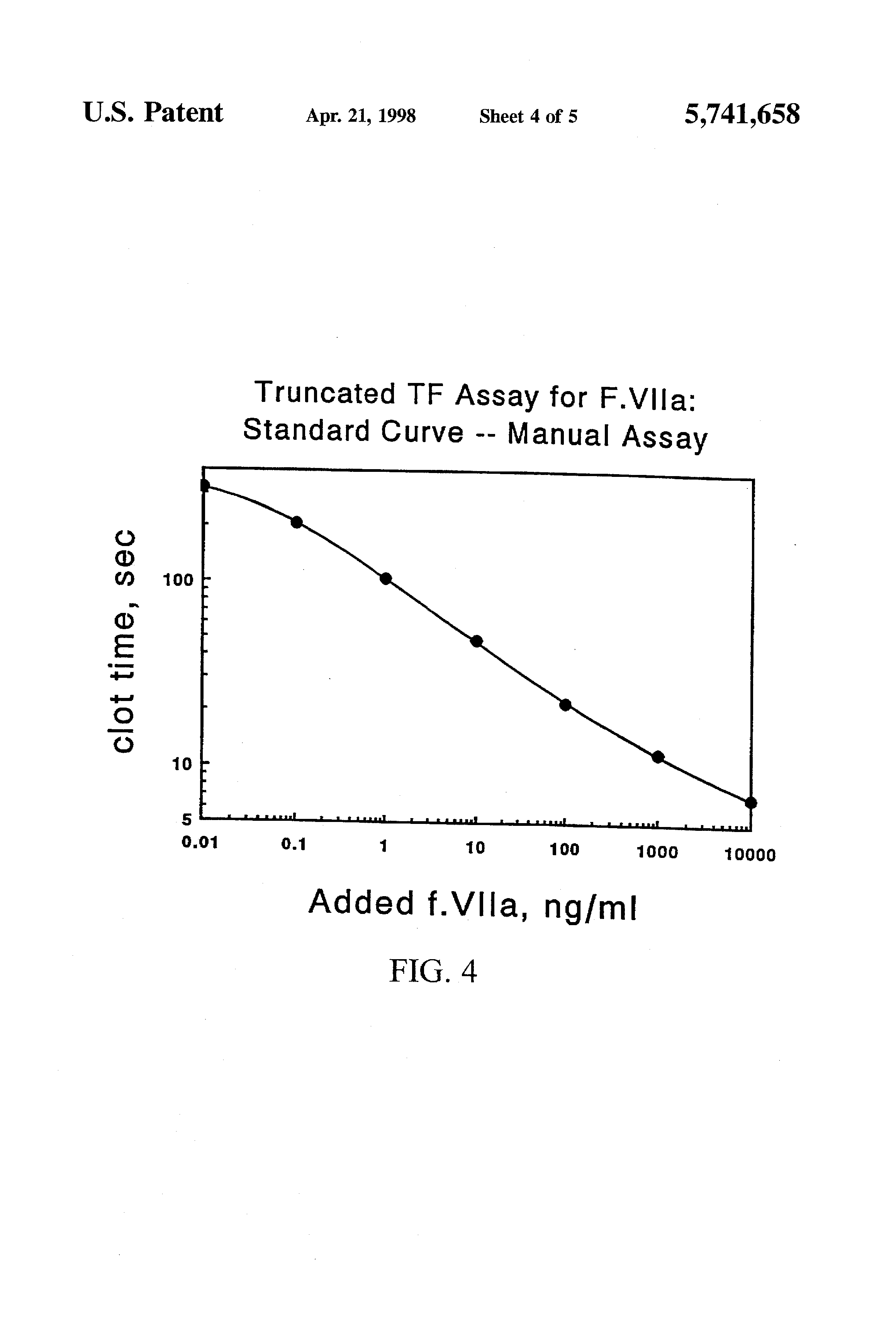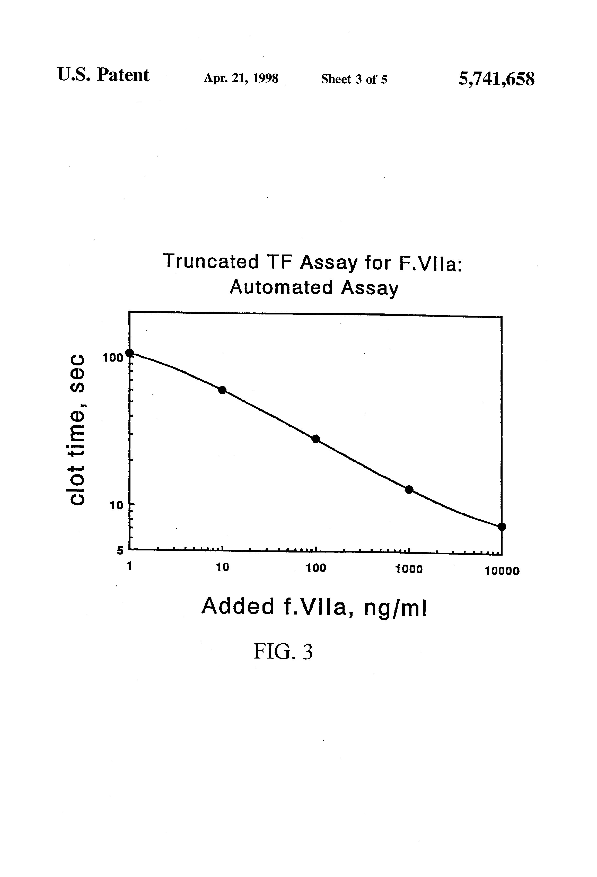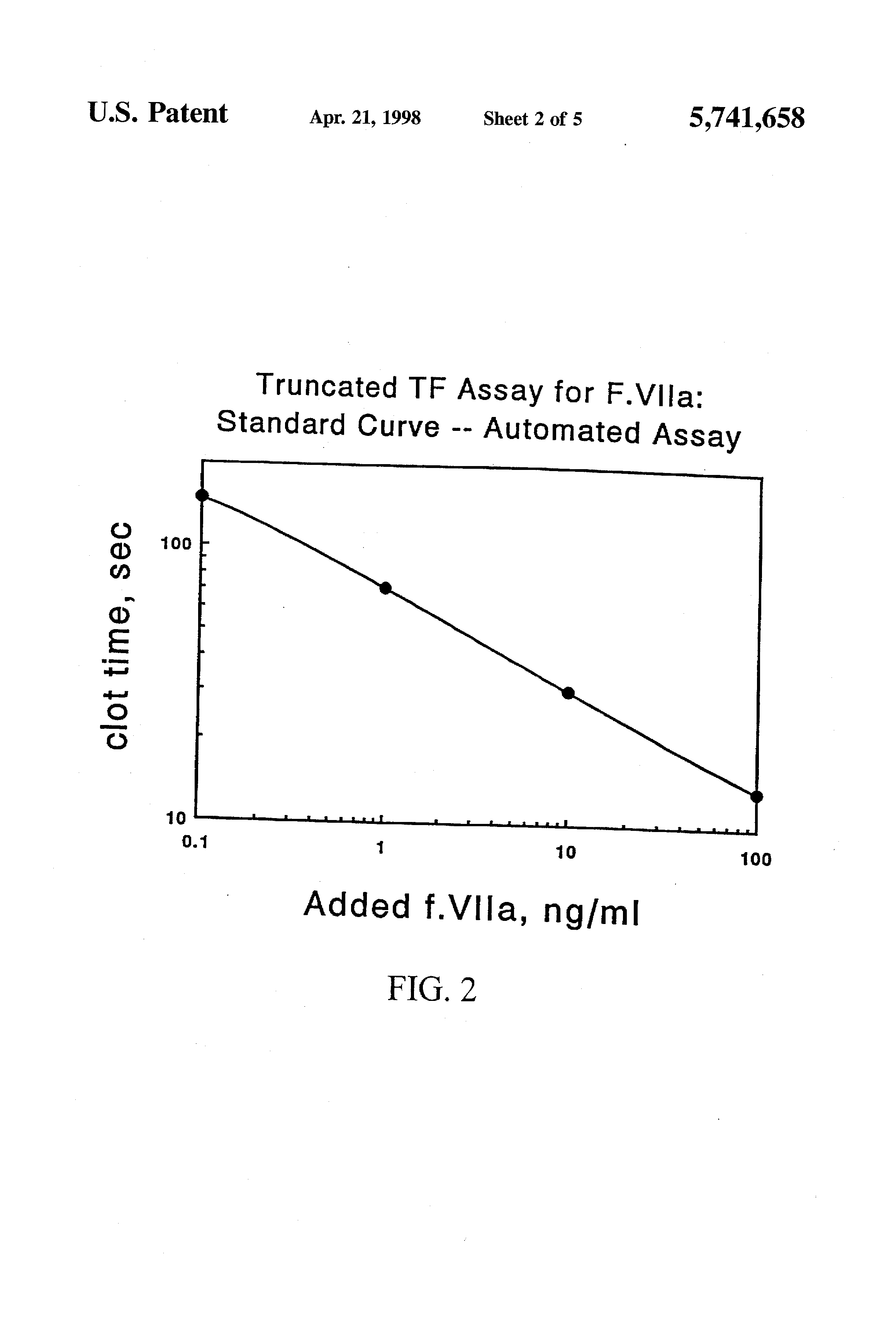 The U.S. government has rights in this invention by virtue of a grant from the National Institutes of Health. This application is a continuation-in-part of U.S. patent application Ser. No. 07/683,682, filed Apr. 10, 1991, U.S. Pat. No. 5,472,850. This invention relates to the field of detection of blood factors involved in blood coagulation. Blood coagulation results from the production of thrombin, a proteolytic enzyme inducing platelet aggregation and cleaving fibrinogen to fibrin, which stabilizes the platelet plug. A number of proenzymes and procofactors circulating in the blood interact in this process through several stages during which they are sequentially or simultaneously converted to the activated form, ultimately resulting in the activation of prothrombin to thrombin by activated factor X (fXa) in the presence of factor Va, ionic calcium, and platelets. Factor X can be activated by either of two pathways, termed the extrinsic and intrinsic pathways. The intrinsic pathway, or surface-mediated activation pathway, consists of a series of reactions where a protein precursor is cleaved to form an active protease, beginning with activation of factor XII to factor XIIa, which converts factor XI to factor XIa, which, in the presence of calcium, converts factor IX to factor IXa. Factor IX can also be activated via the extrinsic pathway by tissue factor (TF) in combination with activated factor VII (factor VIIa; fVIIa). The activated factor IX, in the presence of calcium, phospholipid (platelets), and factor VIIIa, activates factor X to factor Xa. Physiologically, the major pathway involved in coagulation is believed to be the extrinsic pathway, an essential step of which is activation of factor VII to factor VIIa. Clotting assays (and other activity assays) designed to measure factor VII and VIIa generally must employ TF, the cofactor required for factor VIIa coagulant activity. Most commonly, TF is provided as a relatively crude preparation known as thromboplastin. Tissue factor is an integral membrane glycoprotein having a protein and a phospholipid component. It has been isolated from a variety of tissues and species and reported to have a molecular mass of between 42,000 and 53,000. The original crude tissue abstracts referred to the fraction containing the tissue factor as thromboplastin. DNA encoding tissue factor and methods for expression of the protein have now been reported, for example, in European Patent Application 0 278 776 by Genentech, Inc. and by J. H. Morrissey, et al., "Molecular cloning of the cDNA for tissue factor, the cellular receptor for the initiation of the coagulation protease cascade," Cell 50:129-135 (1987). The complex of factor VIIa and TF is the most potent known trigger of the clotting cascade. Factor VII is present in plasma at a concentration of about 0.5 μg/ml plasma. In contrast, measured as described herein, factor VIIa is present in plasma at trace levels of about 0.5 to 8.4 ng/ml. Accordingly, factor VII is normally in considerable excess over factor VIIa. As there are presently no immunoassays capable of discriminating between factor VII and VIIa, current assays attempt to exploit the difference in enzymatic activity between the two, relative to total factor VII protein. Factor VIIa circulates with a relatively long half-life of about two hours in plasma. This is an unusual property among activated coagulation enzymes, which typically are inactivated very rapidly by various protease inhibitors in plasma. Some studies have suggested that elevated levels of plasma factor VIIa are associated with increased risk of thromboembolic disease. This may be due to a direct effect of factor VIIa in promoting thrombosis, or because elevated plasma factor VIIa is a by-product of a "prethrombotic state". In either case, there is clinical interest in measuring plasma factor VIIa levels. Two basic types of assays are routinely employed to assess coagulation function: clotting assays and chromogenic substrate assays. Clotting assays compare clotting times relative to normal controls (time in seconds to clot formation versus percent normal control, also referred to as one unit). Chromogenic substrate assays are typically used only with the purified enzymes and the amount of active factor calculated based on the amount of product generated in a given time as determined by absorbance of light transmitted through the sample at a particular wavelength. Immunological assays involving antigen-antibody reactions are also sometimes used to measure the total amount of protein present. Prothrombin time (PT) and activated partial thromboplastin time (aPTT) assays are routinely employed clinically in the assessment of hemostatic function. PT is performed by adding a preparation of phospholipid, tissue factor and calcium to the patient's citrated plasma and determining the time required for a clot to form. This test measures the aggregate activity of factors II, VII, X, V and fibrinogen. The PT is often used to follow oral anticoagulant therapies, i.e., coumarin and other anti-vitamin K drugs. The aPTT test is performed by adding a preparation of celite (or other contact activator), phospholipid, and calcium to the patient's citrated plasma and determining the time required for a clot to form. This test measures the aggregate activity of factors XII, XI, IX, VIII, X, II, V and fibrinogen. The aPTT is commonly used as a coagulation screening test for factor dysfunction in hospitalized patients. In contrast to these general assays, quantitative assays of specific individual coagulation factors are usually performed using a plasma deficient in the factor to be assayed and comparing clotting times relative to controls. Typically, the amount of factor VII/factor VIIa present in a patient's plasma would be determined using factor VII deficient plasma, adding a dilution of patient plasma, TF, and calcium, usually in the form of calcium chloride, and determining the time required f