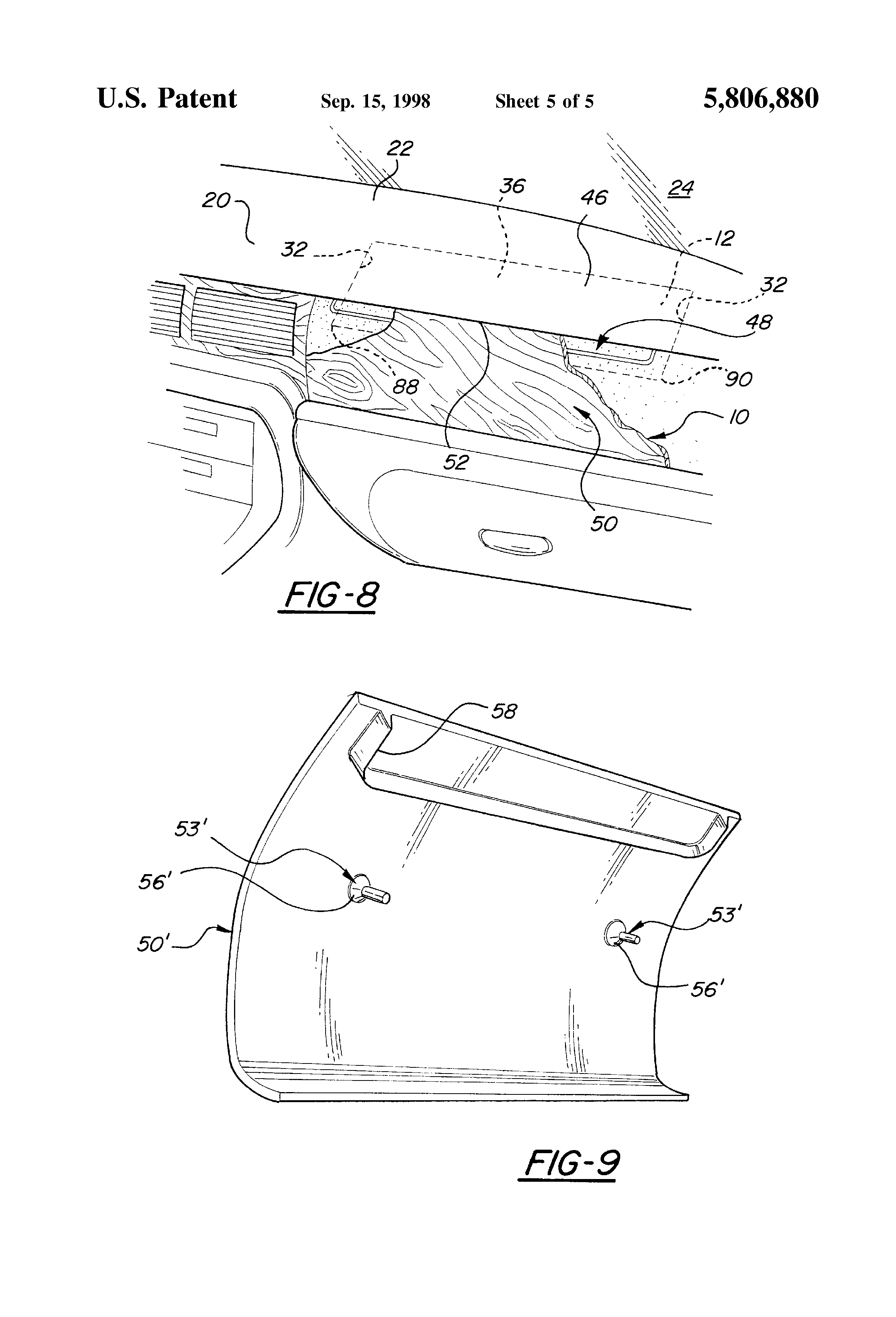 A cover assembly for concealing an automotive vehicle air bag restraint assembly with an air bag, an air bag housing and a gas generator located in the housing for supplying gas to the air bag in response to vehicle impact. The cover assembly includes an inner retainer panel secured between the air bag and a vehicle passenger compartment. An air bag door is mounted within an opening in the retainer panel. A hinge connects the door to the retainer panel and allows the door to swing open under the force of an inflating air bag. A foam layer is sandwiched between an outer skin and the retainer panel and extends across both the retainer panel and the air bag door. A weakened tear-seam is formed in an outer surface of the outer skin and runs parallel to and adjacent an edge of the door opposite the hinge. A rigid applique is supported in a layered disposition over the outer skin to conceal the weakened tear-seam from passenger compartment occupants.