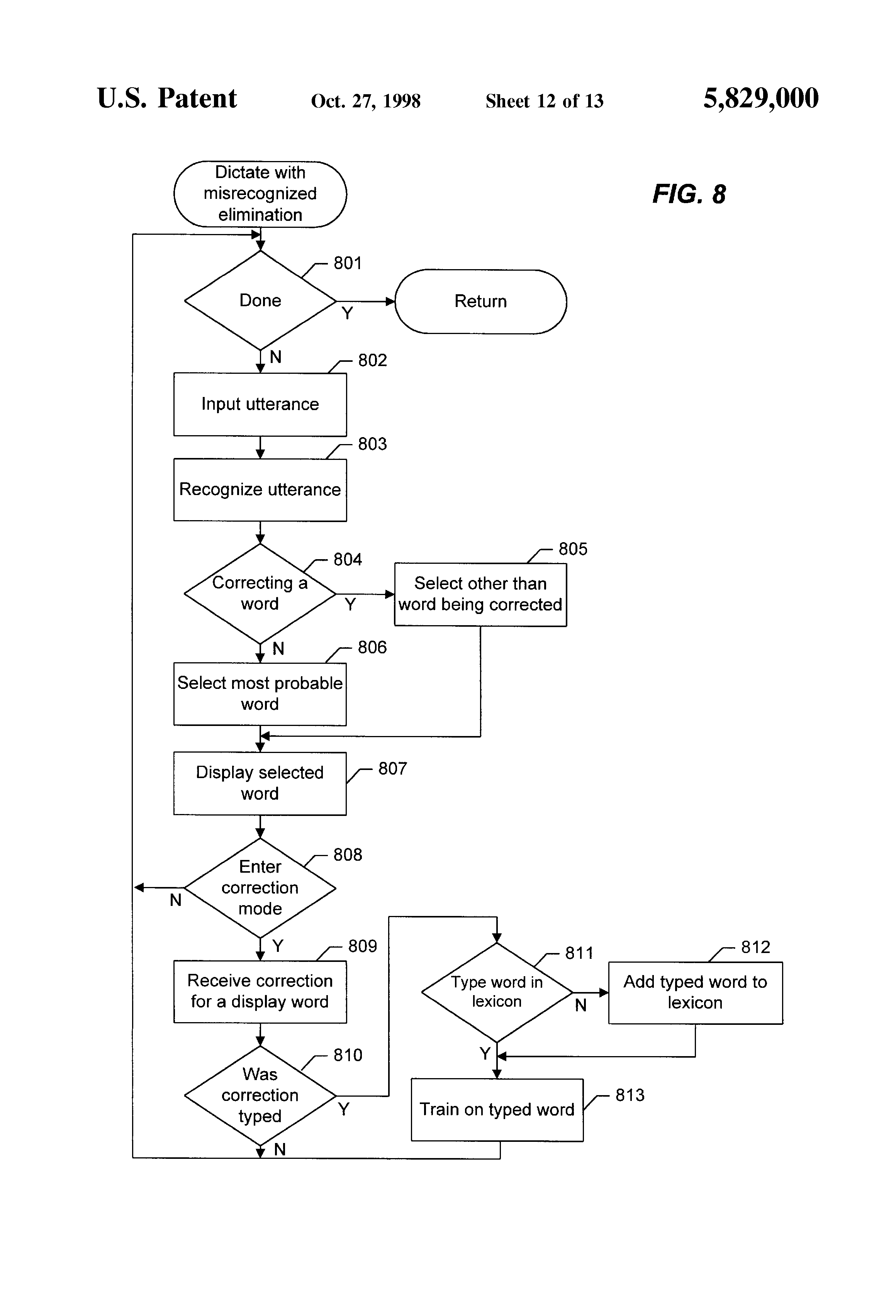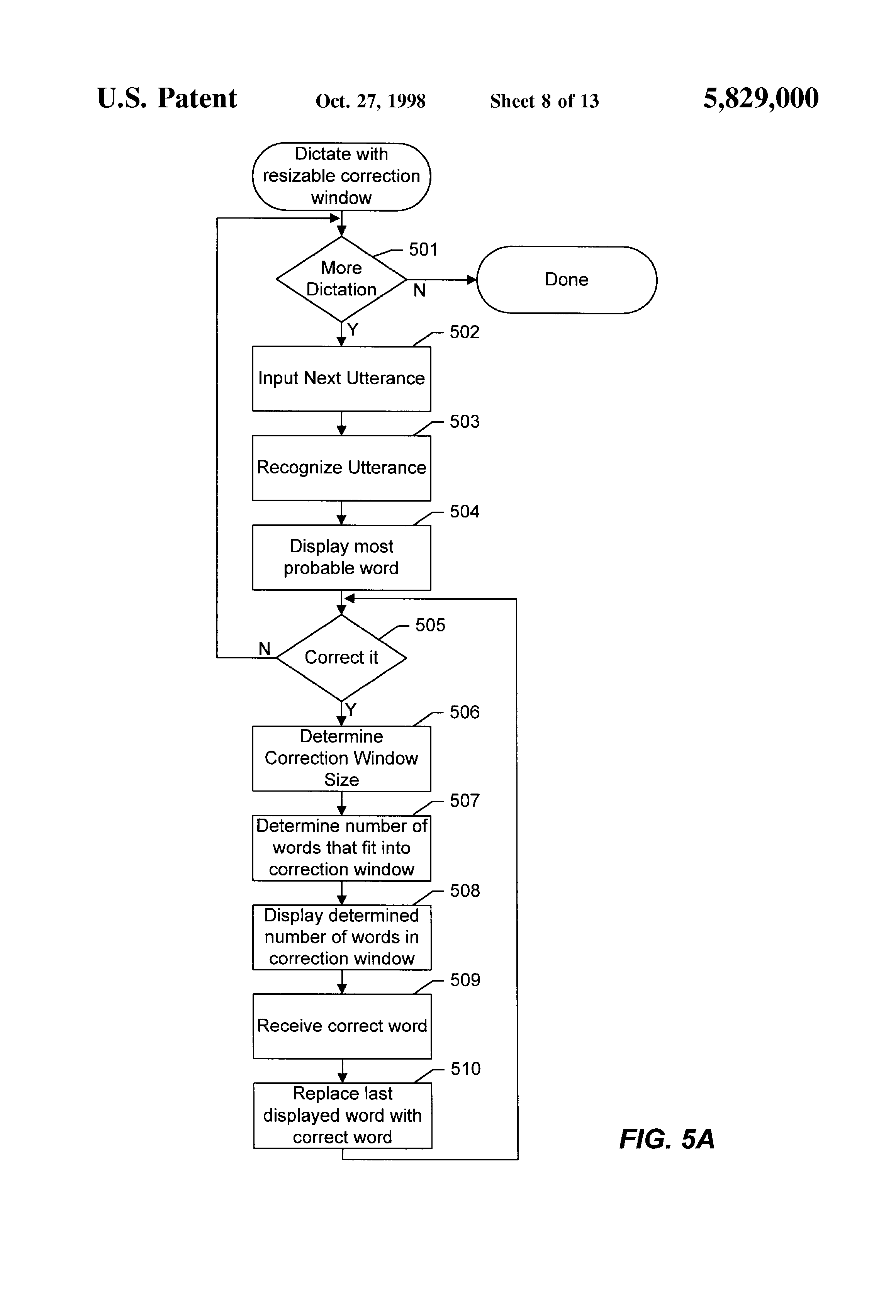 The present invention relates to computer speech recognition, and more particularly, to the editing of dictation produced by a speech recognition system. A computer speech dictation system that would allow a speaker to efficiently dictate and would allow the dictation to be automatically recognized has been a long-sought goal by developers of computer speech systems. The benefits that would result from such a computer speech recognition (CSR) system are substantial. For example, rather than typing a document into a computer system, a person could simply speak the words of the document, and the CSR system would recognize the words and store the letters of each word as if the words had been typed. Since people generally can speak faster than type, efficiency would be improved. Also, people would no longer need to learn how to type. Computers could also be used in many applications where their use is currently impracticable because a person's hands are occupied with tasks other than typing. Typical CSR systems have a recognition component and a dictation editing component. The recognition component controls the receiving of the series of utterances from a speaker, recognizing each utterance, and sending a recognized word for each utterance to the dictation editing component. The dictation editing component displays the recognized words and allows a user to correct words that were misrecognized. For example, the dictation editing component would allow a user to replace a word that was misrecognized by either speaking the word again or typing the correct word. The recognition component typically contains a model of an utterance for each word in its vocabulary. When the recognition component receives a spoken utterance, the recognition component compares that spoken utterance to the modeled utterance of each word in its vocabulary in an attempt to find the modeled utterance that most closely matches the spoken utterance. Typical recognition components calculate a probability that each modeled utterance matches the spoken utterance. Such recognition components send to the dictation editing component a list of the words with the highest probabilities of matching the spoken utterance, referred to as the recognized word list. The dictation editing component generally selects the word from the recognized word list with the highest probability as the recognized word corresponding to the spoken utterance. The dictation editing component then displays that word. If, however, the displayed word is a misrecognition of the spoken utterance, then the dictation editing component allows the speaker to correct the misrecognized word. When the speaker indicates to correct the misrecognized word, the dictation editing component displays a correction window that contains the words in the recognized word list. In the event that one of the words in the list is the correct word, the speaker can just click on that word to effect the correction. If, however, the correct word is not in the list, the speaker would either speak or type the correct word. Some CSR systems serve as a dictation facility for word processors. Such a CSR system controls the receiving and recognizing of a spoken utterance and then sends each character corresponding to the recognized word to the word processor. Such configurations have a disadvantage in that when a speaker attempts to correct a word that was previously spoken, the word processor does not have access to the recognized word list and thus cannot display those words to facilitate correction. The present invention provides a new and improved computer speech recognition (CSR) system with a recognition component and a dictation editing component. The dictation editing component allows for rapid correction of misrecognized words. The dictation editing component allows a speaker to select the number of alternative words to be displayed in a correction window by resizing the correction window. The dictation editing component displays the words in the correction window in alphabetical order to facilitate locating the correct word. In another aspect of the present invention, the CSR system eliminates the possibility, when a misrecognized word or phrase is respoken, that the respoken utterance will be again recognized as the same misrecognized word or phrase based on analysis of both the previously spoken utterance and the newly spoken utterance. The dictation editing component also allows a speaker to specify the amount of speech that is buffered in a dictation editing component before transferring the recognized words to a word processor. The dictation editing component also uses a word correction metaphor or a phrase correction metaphor which changes editing actions which are normally character-based to be either word-based or phrase-based. FIG. 1A illustrates a sample resizable correction window. FIG. 1B illustrates the sample correction window after resizing. FIG. 2A illustrates an adjustable dictation window. FIG. 2B illustrates the use of a correction window to correct text in the dictation window. FIGS. 3A-B illustrate the word/phrase correction metaphor for the dictation editing component. FIGS. 4A-C are block diagrams of a computer system of a preferred embodiment. FIG. 5A is a flow diagram of a dictation editing component with a resizable correction window. FIG. 5B is a flow diagram of a window procedure for the resizable correction window. FIG. 6 is a flow diagram of a dictation editing component with an adjustable dictation window. FIG. 7 is a flow diagram of a window procedure for a word processor or dictation editing component that implements the word correction metaphor. FIG. 8 is a flow diagram of a CSR system that eliminates misrecognized words from further recognition. FIG. 9 is a flow diagram of automatic recognition training. The present invention provides for a dictation editing component that allows the editing of dictation produced by a computer speech recognition (C