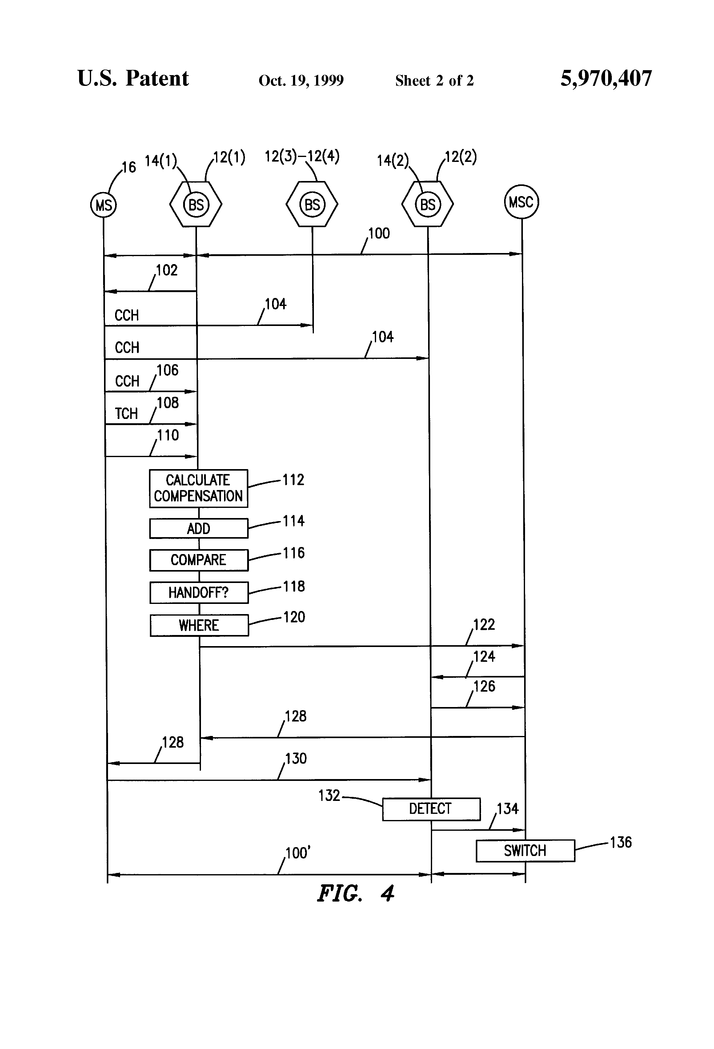 A mobile assisted handoff (MAHO) signal strength measurement is ordered by the cellular telephone system for not only the currently used traffic channel and the reference (control) channels of neighboring cells, but also for the reference (control) channel of the current cell. These MAHO measurements are reported to the system where a compensation factor is determined which accounts for the use of different modulation schemes and or hyperbands by system traffic and control channels. The compensation factor is calculated by subtracting the MAHO measurement made on the reference channel of the current cell from the MAHO measurement made on the traffic channel of the current cell. The calculated compensation factor is then added to each of the MAHO measurements made on the reference channels for each of the neighboring cells to generate compensated signal strength measurements. The compensated measurements are then compared to the MAHO measurement made on the traffic channel (in view of a predetermined hysteresis) to determine whether a handoff to one of the neighboring cells should be made.