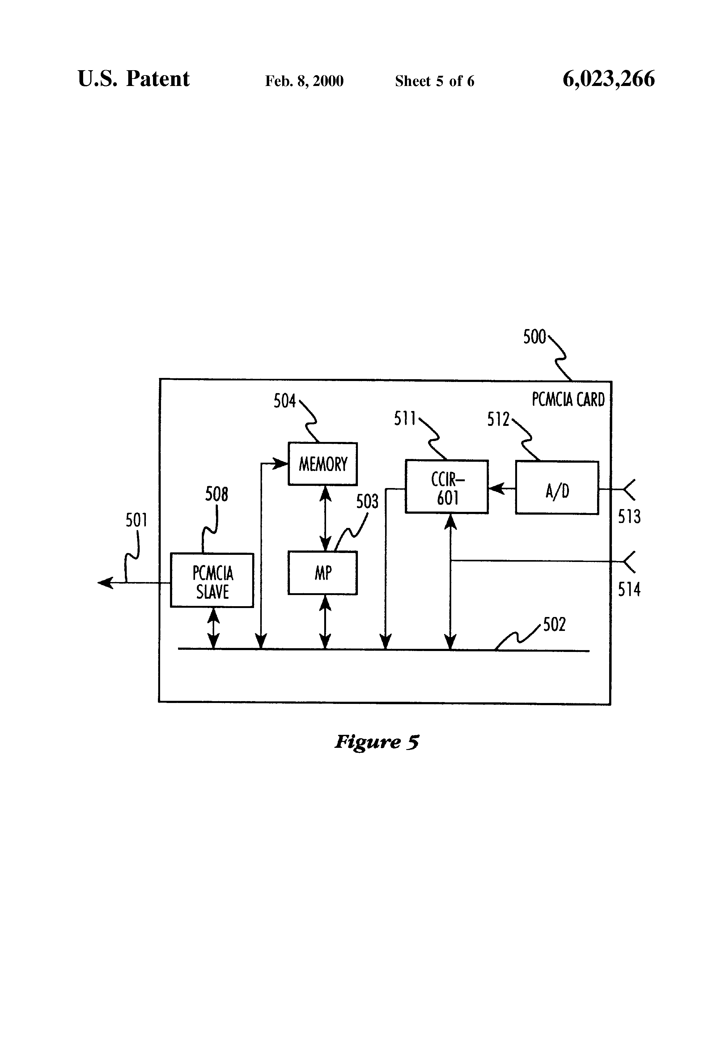 This application is a continuation of Ser. No. 08/235,761 filed Apr. 28, 1994, now U.S. Pat. No. 5,642,139. The subject matter of this application is related to that in co-pending application by the same inventors having Ser. No. 08/235,761 (attorney docket No. 2069-011) entitled "VARIABLE PIXEL DEPTH AND FORMAT FOR WINDOWS" to be assigned to the same assignee of the present invention. The present invention is directed to processing video signals, particularly in portable and personal computers. The present invention has particular application to inputting video signals through a computer I/O port having a limited data bandwidth, such as a PCMCIA interface. Live action or full motion video has been used with personal computers, particularly for so-called multimedia presentations where different types of media are combined to present information to a user. In addition, personal computers have been increasingly used in video applications to manipulate video signals (e.g., editing, computer animation, or the like). For the purposes of this application, the term "motion video" is interpreted to mean any video segment or presentation including live action, real time, or full motion video. Examples of motion video include, but are not limited to, NTSC, PAL, SECAM, or MUSE type television signals, digital and analog HDTV signals, or the like, including live television signals or broadcasts, cable television signals or the like, or motion picture video, which may be suitably digitized and converted into a format suitable for presentation on a computer display. The term motion video may also include, but is not limited to, any computer generated display or display segment, including computer animation or the like. For multimedia presentations, it is particularly useful to be able to provide a motion video interface to a portable or so-called notebook or laptop computer or the like (collectively referred to hereinafter as "portable computer") to display motion video on a computer screen or attached monitor or television. A separate video interface may be provided in a portable computer, tied to the system bus or incorporated into the video adapter in order to import motion video into the portable computer. However, such an interface would increase the cost of a personal or portable computer significantly. Since only a potion of computer users are envisioned as requiring such a video interface, it is desirable to be able to offer a video interface as an add-on option for a personal or portable computer. In order to support optional features for portable or personal computers, an industry standard known as the PCMCIA standard has been developed to allow computer manufacturers to offer optional features on a removable card, referred to as a PCMCIA card. Optional features such as modems, I/O ports, network interfaces, and even hard drives have been incorporated into PCMCIA cards which may be used to upgrade a portable or personal computer to add such features. FIG. 1 shows a notebook computer 100 provided with a PCMCIA interface 101. Although shown here as a notebook computer, as applied to the present invention, other types of computers may also be used, including portable, transportable, lap-top, palm-top, personal digital assistants (PDAs), pen based computers, or the like, or Personal Computers (PCs) such as the IBM™ PC, Apple™ Macintosh™, or the like or other types of computer systems (e.g., mainframes, minis, or the like) where it is desirable to import video images through a PCMCIA or similar type data port. Notebook computer 100 may be provided with a system bus 102 shown here as a PCI bus having a data bandwidth in the range of 25 to 30 megabytes per second. Notebook computer 100 is provided with a CPU 103 (e.g., Intel™ Pentium™, 486, 386 or the like, or Motorola™ 68000 or the like) coupled to the system bus 102. Notebook computer 100 is also provided with a system memory 104 also coupled to system bus 102. A video controller 105, shown here as a VGA controller, is also coupled to system bus 102. Video controller 105 may comprise another type of controller such as a SVGA controller or the like, and may also be provided with a video memory 110 which may be periodically refreshed by CPU 103. Video controller 105 is connected to panel display 106 which may comprise a flat panel display (e.g., active matrix type, passive matrix type, gas plasma, or the like). A CRT port 107 may also (or alternately) be provided to provide an image on a CRT screen. Although not shown, other types of video output ports may also be provided, including a television output (e.g., NTSC, PAL, SECAM, MUSE, analog HDTV, digital HDTV or the like, any of which may be either broadband or baseband outputs). Also coupled to system bus 102 is PCMCIA host 108 which in turn is coupled to PCMCIA interface 101. The construction of such a PCMCIA host is known in the art and provides the necessary interface between the system bus 102 and a PCMCIA compatible device (i.e., PCMCIA card) coupled to PCMCIA interface 101. The PCMCIA host, by design, has a data bandwidth of approximately five megabytes per second. A PCMCIA card 109 may be selectively and removably coupled to PCMCIA host 108 through PCMCIA interface 101. In the prior art, the PCMCIA card 109 may comprise a modem, network interface, serial port, parallel port, memory card, hard drive, or other peripheral device. Unfortunately, the PCMCIA standard has some inherent limitations which make it difficult to adapt to video data transmission. For motion video, digitized under the CCIR 601 standard, for example, an average bandwidth of 27 megabytes per second may be required in order to transmit the video data from one device to another. Modern high performance computers (e.g., Intel™ Pentium™, 486-33 MHz, or the like) using advanced bus structures such as the PCI or VESA bus architecture may have a memory bandwidth in the range of 25 to 35 megabytes per second. Thus,