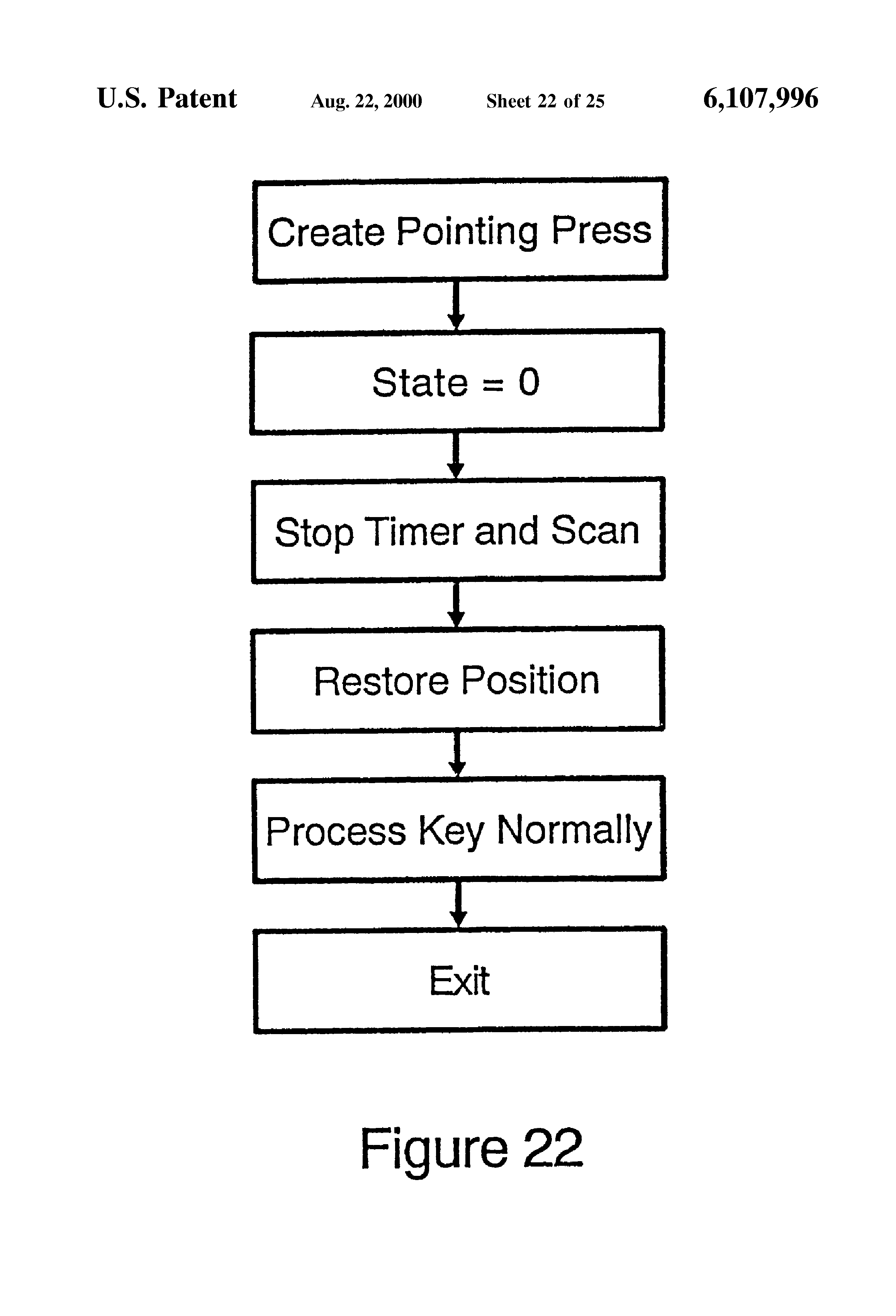 This is a division of application Ser. No. 07/649,711, filed Feb. 1, 1991, now U.S. Pat. No. 5,189,403 which is a continuation-in-part of application Ser. No. 07/412,680 filed Sep. 26, 1989, now U.S. Pat. No. 5,124,689. The QWERTY keyboard is entrenched as the preferred device for typing alpha-numeric data into a computer. Various apparatus and methods are known for pointing operations, such as selecting text, on a CRT display. Devices for that purpose include the mouse, joystick, step keys and text keys. Keyboards are known which include a joystick, joydisk or other pointing device mounted on the keyboard. However, a separate mouse has been shown to be the most effective pointing device with respect to operating time, error rate and the like. This accounts for its widespread acceptance in the computer industry. Use of a conventional keyboard and a discrete mouse for entering typing and pointing information, respectively, into a computer require physical and mental disruptions that significantly reduce a user's productivity. For example, typing on a keyboard and pointing with a mouse require the user frequently to move the hands back and forth between the keyboard and the mouse. One research paper reports that it takes about 0.36 seconds to move a hand from the keyboard onto a mouse and additional time to adjust the grasp for operating the mouse buttons. Time to return to the keyboard must be considered as well. The data suggests that the total time spent moving to and from the mouse is greater than one second per occurrence. See S. K. Card, et al, "Evaluation of Mouse, Rate-Controlled Isometric Joystick, Step Keys, and Text Keys for Text Selection on a CRT" (Xerox Palo Alto Research Center), published in Ergonomics, Vol.2, No.8, 601-613 (1978). These movements between keyboard and mouse are disruptive physically because of the distances and side to side arm motions typically required. These movements are disruptive mentally because of the time the movements take, because of the dramatic shift in physical activity (typing on a keyboard is very unlike pointing with a mouse), and because of many mental and physical steps required to perform the movements. Each additional step requires physical and mental effort and is an opportunity for error. U.S. Pat. No. 4,712,101 describes a cursor positioning device which may be positioned on a keyboard below the space bar. Such a device has been announced under the trade name Isopoint. The Isopoint device includes a finger or thumb actuated roller coupled to a rotary-shaft encoder for indicating position change in a first direction. The roller rests in a sliding cradle which drives a second encoder. Such a device is awkward to operate, especially for diagonal cursor movement, because of the required combination of rolling and sliding actions. Additionally, the sliding cradle has fixed end points which impose discontinuities in its operation. Another pointing device which can be embedded into a conventional keyboard for cursor control is the OmniPoint™ cursor controller, announced by Osiris Technologies, Inc., Nevada City, Calif. Omnipoint essentially includes a miniature joystick and associated interface electronics. The joystick may be mounted in a keyboard adjacent the standard array of keys. Its use of course requires moving the hand away from the usual typing position. Both the Isopoint and Omnipoint devices include an embedded switch so that the user can press the device downward (into the keyboard) to emulate a mouse button "click" or dragging operation. Such devices therefore can emulate at best only a single button mouse. U.S. Pat. No. 4,680,577 to Straayer, et al. shows a multipurpose keyswitch disposed within a keyboard array for controlling cursor movement on a CRT display and for character entry. One of the standard alpha keys is replaced with the multipurpose keyswitch. An additional keyswitch is suggested for activating the cursor positioning capabilities of the multipurpose keyswitch. The '577 patent does not disclose a practical way to implement and use such a system. Additionally, that patent does not address how to input any pointing event information, for example mouse button actions ("clicking"), so that system cannot substitute for a mouse. What is needed is a practical method of allowing a user to type and point without moving the hands away from the usual typing position and without dramatically changing the physical activity. Prior art methods of pointing and typing assumed these disruptions and incorporated them as limitations in computers, keyboards, pointing devices, and software. Typing and pointing were perceived as distinct and irreconcilable activities. As a result, there is considerable duplication of hardware and software. For example, the buttons on a mouse are required because pointing has been perceived as very different, mentally and physically, from typing. Since pointing is so different, the hardware and software are duplicated, reinforcing the separation. For example, the buttons on a mouse are duplications because there are plenty of keys on the keyboard that generally are not being used while the mouse is being used. What is needed is a pointing device system that eliminates the restrictions and the duplications of present systems, while maintaining the same software interface to application programs for complete compatibility. Many known pointing devices also have physical limitations on the number of buttons they can have. These limitations severely limit the range of actions the user can take while pointing. One commercial product that attempts to add additional buttons, called the PowerMouse 100, integrates a two-button mouse with forty programmable keys, resulting in a large, cumbersome device that is difficult to use. What is needed is to allow the user to keep the hands on the keyboard while pointing, and simultaneously allow the user to input other pointing related data or "pointing events," present