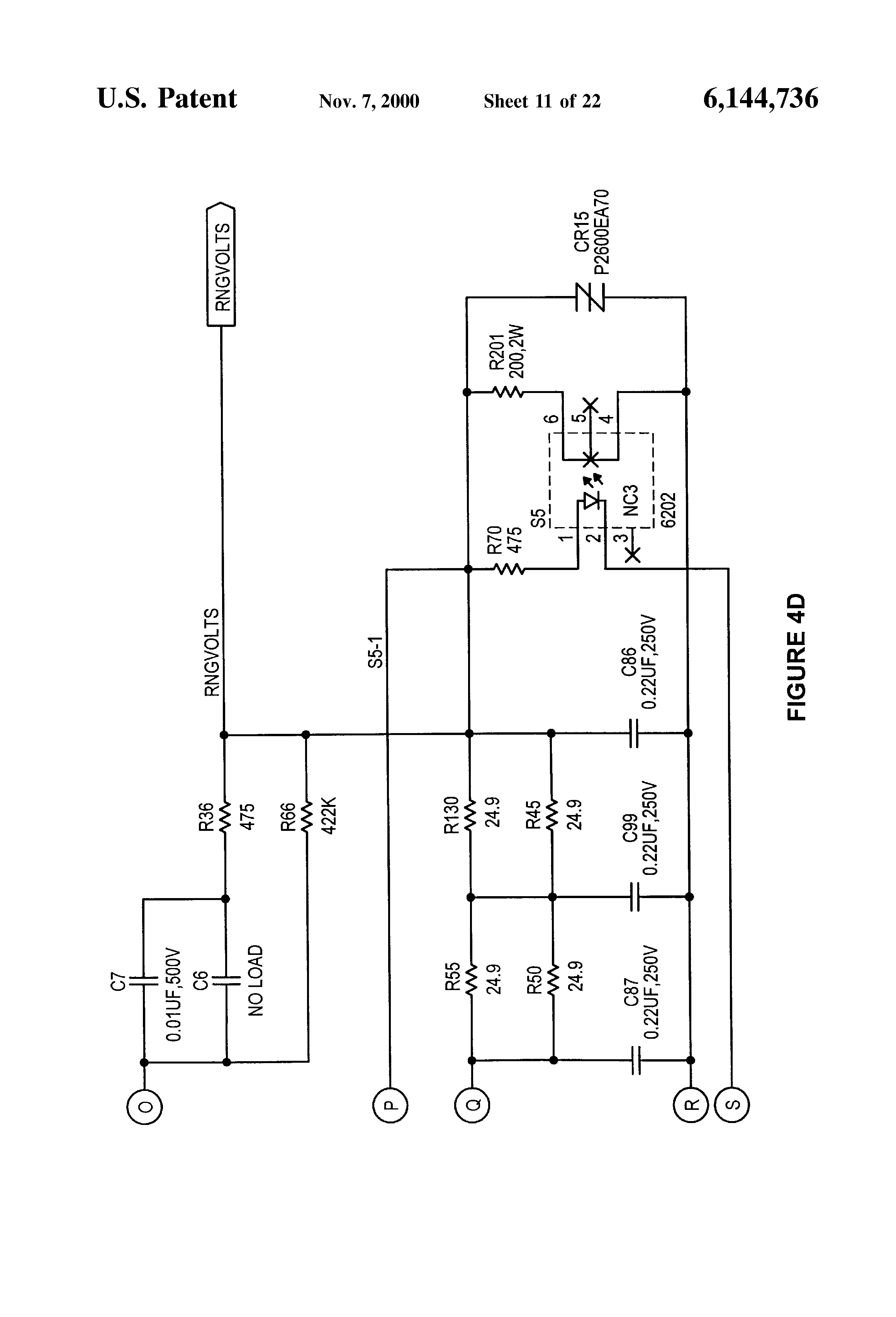 1. A floating filter for powering telephone line circuits functioning to attenuate AC ripple noise without the use of large capacitances, comprising: an input having a voltage with AC and DC components; an output having a voltage; a return path; a load resistor R75; a voltage regulator; a voltage divider having an output; a capacitance in parallel with the output of the voltage divider; said voltage regulator having an input terminal connected to said input, an output terminal connected to said output and an adjust terminal; said voltage divider comprising a first resistor R73 connected to the input terminal and the adjust terminal of the voltage regulator; said voltage divider further comprising a second resistor R74 and a capacitor C28 each connected to the adjust terminal of the voltage regulator, and each connected to the return path; said load resistor R75 connected to said output terminal of said voltage regulator and said return path, the output voltage of the floating filter equaling a filtered proportion of the value of the rectified AC input voltage, thereby reducing a ripple noise; wherein a low-pass filter network is formed with resistors (R73,R74) and the capacitor (C28) said network removing the high frequency (audible) components from the error/feedback signal and further allowing a regulator adjustment node (U10) to float and follow the slowly changing (sub-audible) DC+AC input voltages, providing AC ripple rejection without the inherent excessive power dissipation of a fixed output regulator; and wherein the low-pass filter network has a steady state (DC) output of less than an average of the input voltage. 2. The floating filter of claim further comprising: a filter capacitor C13 connected to said input terminal of said voltage regulator and to said return path; and a filter capacitor C31 connected to said output terminal of said voltage regulator and to said return path. 3. The floating filter of claim 1 further comprising protection circuitry. 4. The protection circuitry of claim 3 further comprising: a zener diode CR22 see schematic (FIG. 7A) having a cathode connected to the output terminal of said voltage regulator, and an anode connected to the input terminal of said voltage regulator. 5. The protection circuitry of claim 3 further comprising: an automatic limiting device CR25 functioning to provide a low impedance when voltage (CR25) across the device exceeds a predetermined level connected to said output terminal, and said input terminal of said voltage regulator. 6. The protection circuitry of claim 3 further comprising: an automatic current limiting device functioning to limit current passing through the device when said current exceeds a predetermined level S9 inserted between said input and said input terminal of the voltage regulator. 7. The protection circuit of claim 3 further comprising: a diode CR27 having a cathode and an anode, said diode CR27 inserted between said output and said output terminal of said voltage regulator; said cathode of diode CR27 connected to said output terminal of said voltage regulator; and said anode of diode CR27 connected to said output. 8. The protection circuit of claim 3 further comprising: a diode CR26 having a cathode and an anode, said CR26 inserted between the said adjusted terminal of said voltage regulator; said cathode of diode CR26 connected to said adjust terminal of said voltage regulator U3; and said anode of diode CR26 connected to said intersection of resistors R73, R74 and capacitor C28. 9. The floating filter of claim 1 wherein the voltage regulator is a three terminal voltage regulator. 10. The apparatus of claim 1, wherein the AC ripple noise output voltage is attenuated by a factor greater than one. 11. The apparatus of claim 1, wherein the voltage divider formed by R73 & R74 is designed to reduce the output voltage by approximately 20%. 12. The apparatus of claim 1, wherein the values of the low-pass network are selected to attenuate 50 Hz or greater ripple by a factor as high as 100.
