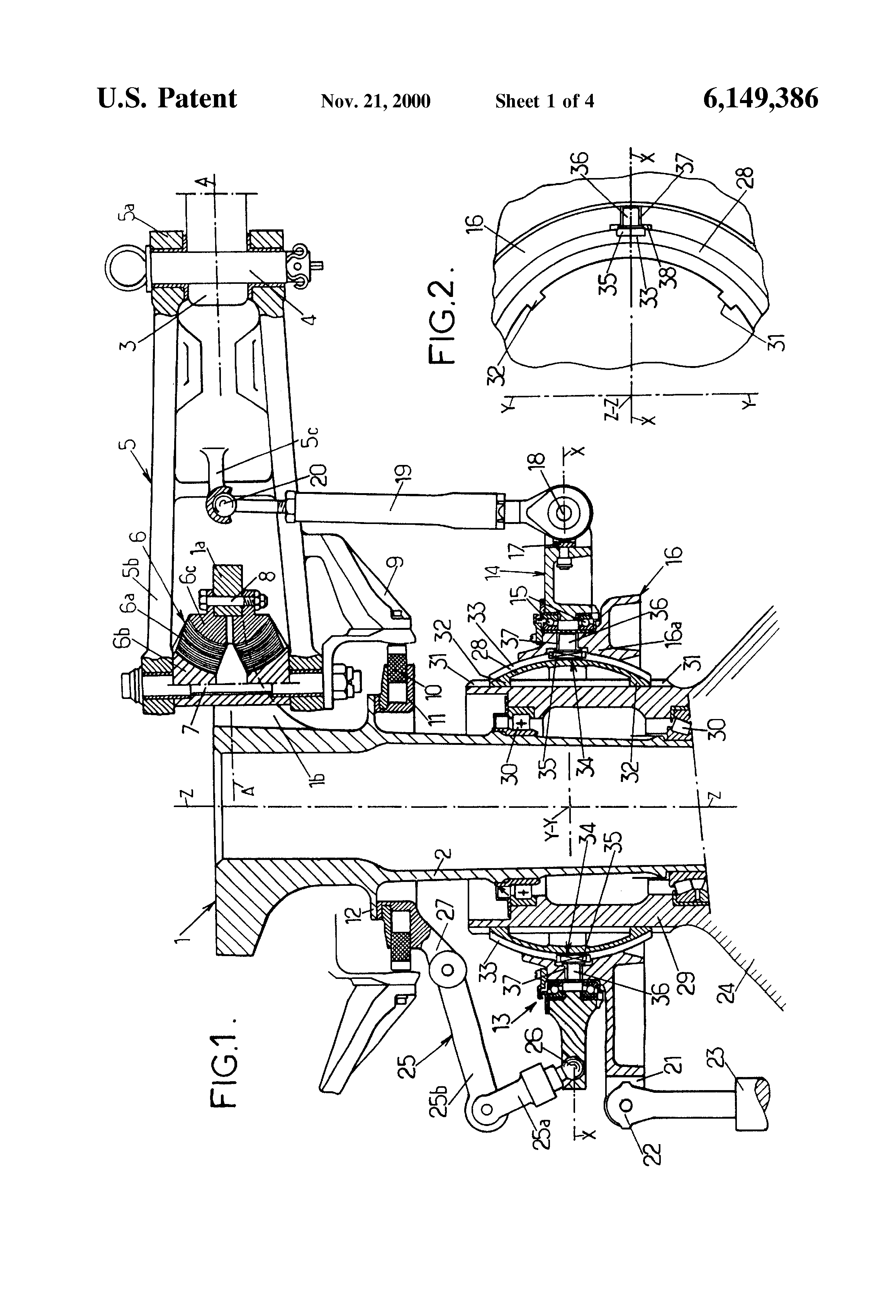 The swash-plates are oscillating mounted by the non-rotating plate on a central ball joint sliding axially around a guide fixed to the structure and on which the ball joint is locked from rotation by internal splines engaging external splines of the guide. Two cotters slide in diametrically opposite grooves in the external face of the ball joint, and the non-rotating plate pivots on trunnions of the cotters around one of two perpendicular axes the other of which an axis around which the cotters pivot and which is perpendicular to the rotor axis.