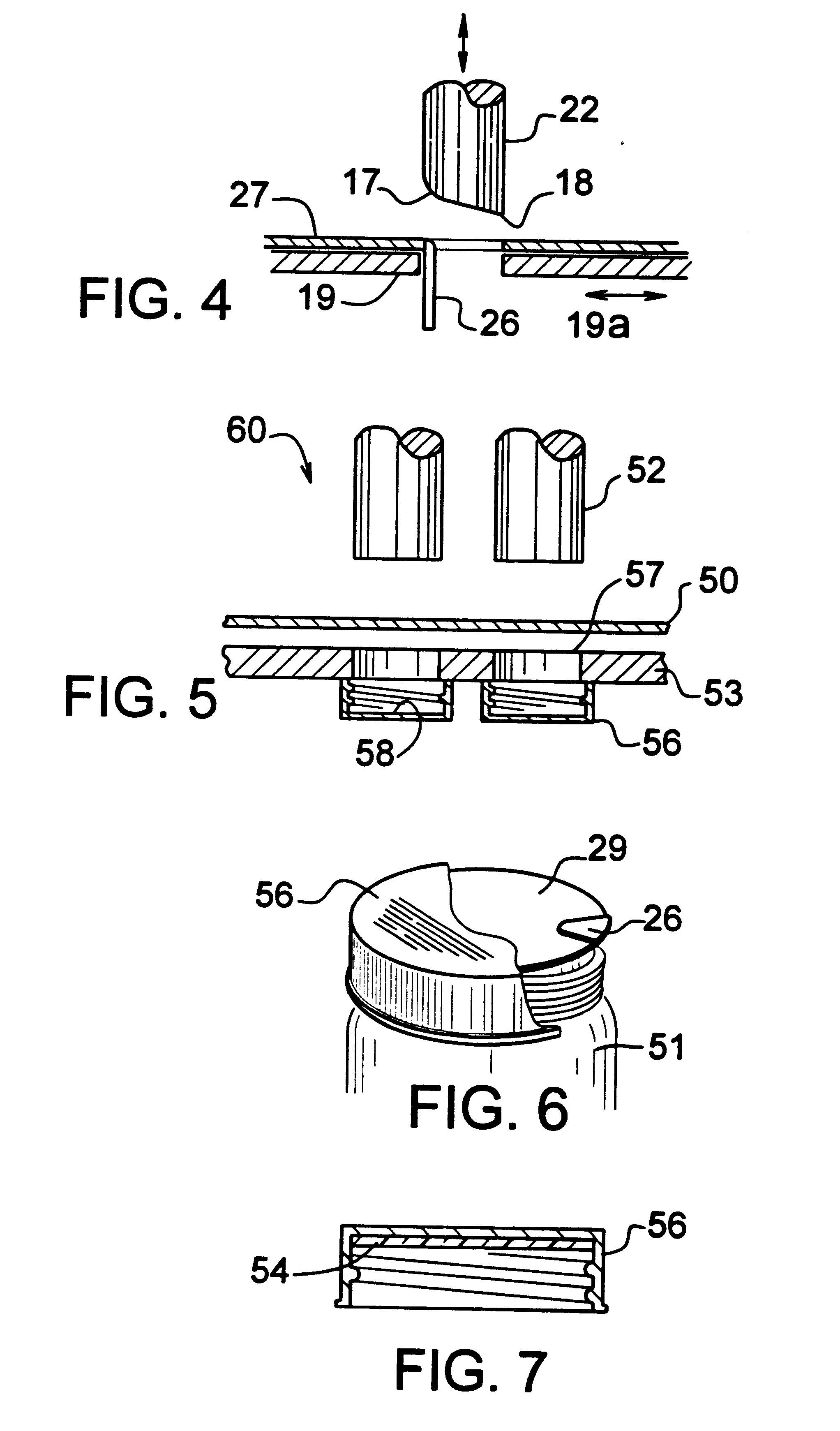 1. An apparatus for manufacturing a bonded pull tab over a reseal liner, comprising: a web of reseal liner material; a web of pull tab seal material; first tab forming punch press, said web of pull tab seal material positioned below said punch press, said first punch press further having at least one tab forming anvil extending downward therefrom and reciprocating through said web of pull tab seal material and forming at least one pull tab therein, said at least one pull tab being hingedly connected to said web of pull tab seal material, said first tab forming punch press further having a registration hole punch actuating on said web of reseal liner and said web of pull tab seal material; a folding mechanism to place said at least one pull tab against said web of pull tab seal material; a radiant heater to bond said web of pull tab seal material and said web of reseal liner material to form a combined web of material such that said at least one pull tab is compressed between said web of pull tab material and said reseal liner material; a second punch press located down line from said first tab forming punch press along said combined web of material for cutting out of said combined web of material said bonded pull tab over a reseal liner. 2. The apparatus of claim 1 wherein said web of pull tab seal material is comprised of a layer of bidirectionally strengthened material, a layer of thermoplastic material and a layer of aluminum. 3. The apparatus of claim 1 wherein said web of reseal liner material is a paper based material. 4. The apparatus of claim 1 wherein said reseal liner material is comprised of a layer of paperboard and a layer of wax. 5. The apparatus of claim 1 wherein said first tab forming punch press is further comprised of four diagonally spaced tab forming anvils. 6. The apparatus of claim 1 further comprising an optical sensor operably connected to a compression roller, said compression roller contacting said web of reseal liner material and said pull tab seal material along said formed registration holes. 7. An apparatus for manufacturing pull tab inner seal liner for a container, comprising: an inner seal liner web of material and a wax paperboard web of material; a first pull tab rotary punch press having a plurality of tab forming anvils; a conveyance motor to transport said wax paperboard web through said first pull tab rotary punch press; wherein said first pull tab rotary punch press forms a plurality of pull tabs in said inner liner web of material, said first pull tab rotary punch press further comprising a registration hole punch actuating on said inner seal liner web of material and said wax paperboard web of material; a radiant heater which receives said inner seal liner web and said wax paperboard web and creates a combined pull tab and reseal liner web; a second liner punch press which receives said combined pull tab and reseal liner web and having a plurality of reciprocating safety seal anvils thereon; wherein said second liner punch press punches out a plurality of closure pull tab and reseal liners from said combined pull tab and reseal liner web. 8. An apparatus for manufacturing a plurality of bonded pull tab over a reseal liners for closures, comprising: a pull tab seal web of material and a reseal liner web of material; a first tab forming punch press having a plurality of tab forming anvils thereon, said anvils forming a plurality of pull tabs in said pull tab seal web of material, said first tab forming punch press folding said plurality of pull tabs against said pull tab web of material; said first tab forming punch press including actuating a registration hole punch on said web of reseal liner and said web of pull tab seal material to form registration holes for further alignment; a conveyance motor for transporting said pull tab seal web through said first tab forming punch press; a radiant heater to combine said pull tab seal web and said reseal liner web such that said pull tabs are compressed therebetween and form a bonded pull tab over a reseal liner web of material alignment; a second liner punch press having a plurality of reciprocating safety seal anvils to punch out from said bonded pull tab over a reseal liner web of material said plurality of bonded pull tab over a reseal liners into said closures.