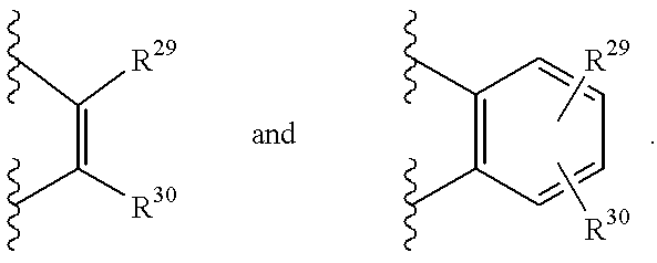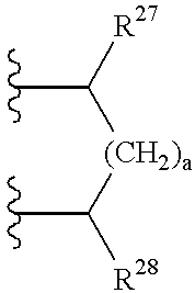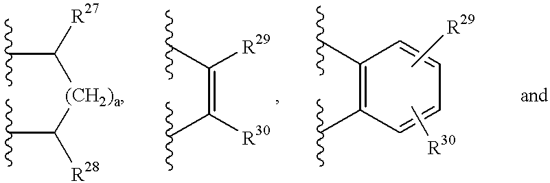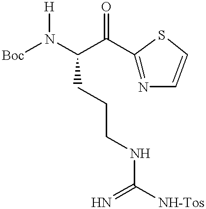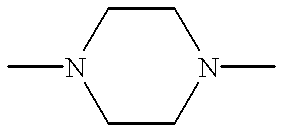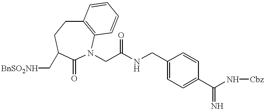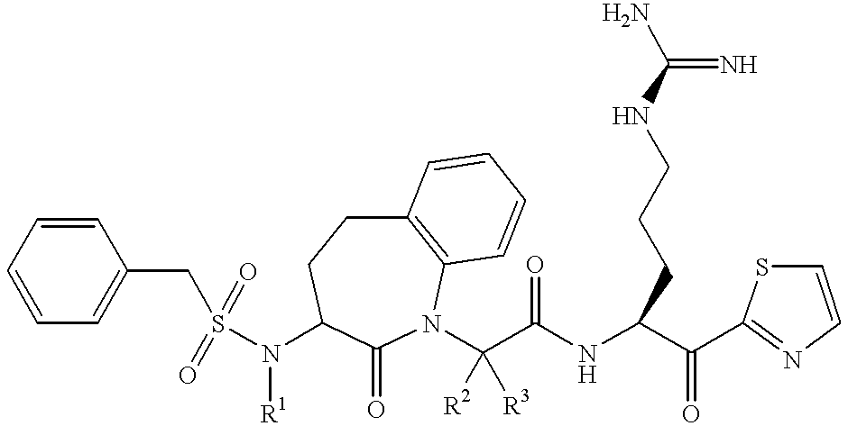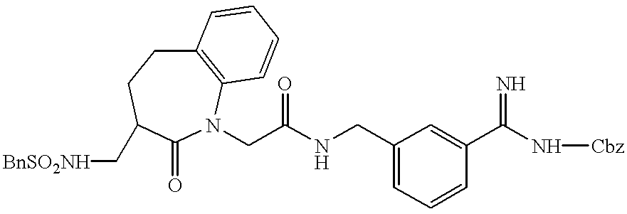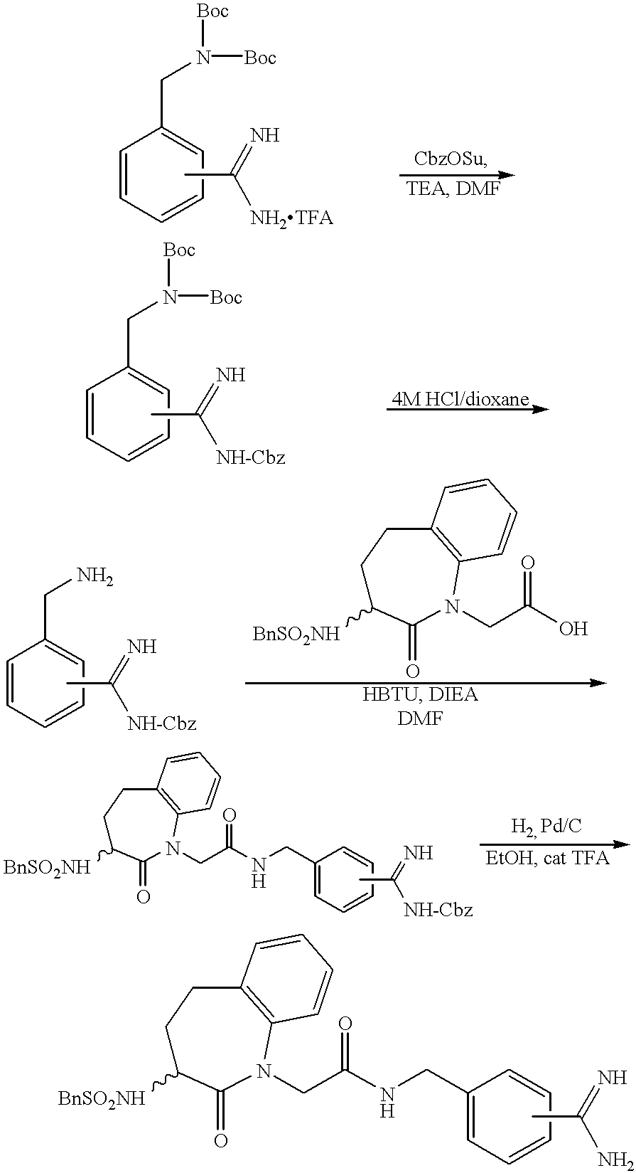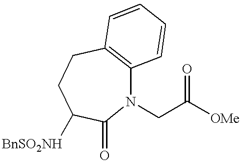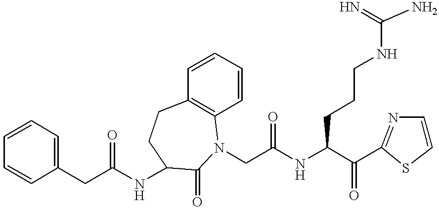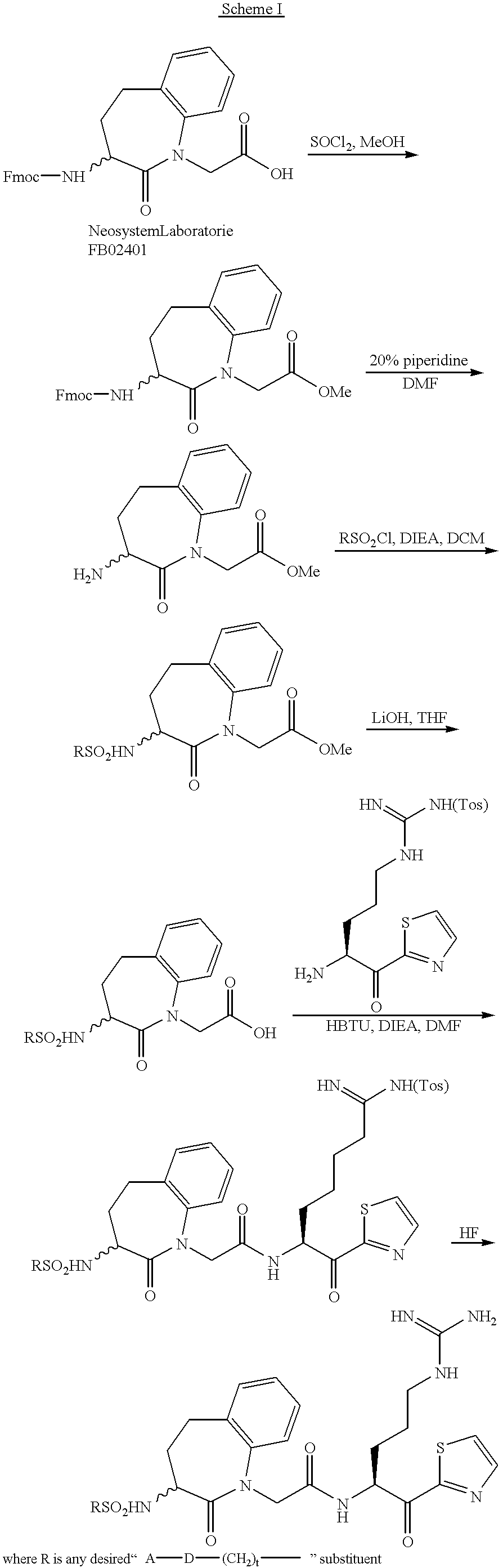 (IV) # A D t E 1 H— 2 —SO2— 2 H3C— 1 —SO2— 3 H— 1 direct link 4 H— 1 —CO— 5 H3C— 2 —NHSO2— 6 H3C— direct link 0 —N(CH3)— SO2— 7 H3C— direct link 0 —SO2— 8 H— 2 —NHCO— 9 CH3CH2— 2 —NHCO— 10 0 —SO2— 11 (CH3)2N— direct link 3 —SO2— 12 H— 0 —SO2— 13 direct link 3 —CO— 14 1 —CO— 15 H— direct link 1 —CO— 16 H— 1 direct link 17 HO— 2 direct link 18 (CH3)3C— 0 —SO2— 19 H— 2 —SO2— 20 H— direct link 0 direct link 21 H— 0 —SO2— (V) # r G s J 1 3 direct link 0 2 3 direct link 0 3 3 direct link 0 4 1 0 5 1 0 6 0 0 —NH2 7 2 0 —H 8 2 0 —CH3 9 3 0 —H 10 0 0 11 4 direct link 0 —NH2 12 0 1 —NH2 (VI) # R1 R2 R3 1 —CH3 —H —H 2 —H —CH3 —H 3 —H 4 —H —H —H (VII) # Q 1 —H 2 3 4 5 6 7 —C(O)H 8 —C(O)—COOH 9 10 11 —C(O)—CF2CF3 12 13 14 15 16 17 (VIII) # K′ K″ K′′′ K′′′′ 1 —CH— —N— —CH— —CH— 2 —C(Cl)— —N— —CH— —CH— (IX) # L 1 —O— 2 —S— 3 —SO— 4 —SO2— (X) # X d Y e Z 4 0 direct link 3 —CO— 5 0 1 direct link 6 0 direct link —CO— 7 0 2 direct link 9 H2N— 0 1 —CO— 10 H— 0 —CH2—C(CH3)2— 0 —O—CO— 11 H— 0 1 —SO2— 12 0 0 —CO— 13 H— 0 0 —SO2— 14 H— 0 0 —SO2— 15 H— 0 2 —NH—SO2— 16 H3C— 0 1 —NH—SO2— 17 H3C— 0 0 —SO2— 18 H3C— 0 0 —SO2— 19 1 1 —CO— 20 H— 0 2 —N(CH3)—SO2— 21 H— 0 2 —N(OH)—CO— 22 H— 0 1 —SO2— (X) # r G s J 1 0 0 2 0 0 Preparation of the Disclosed Compounds