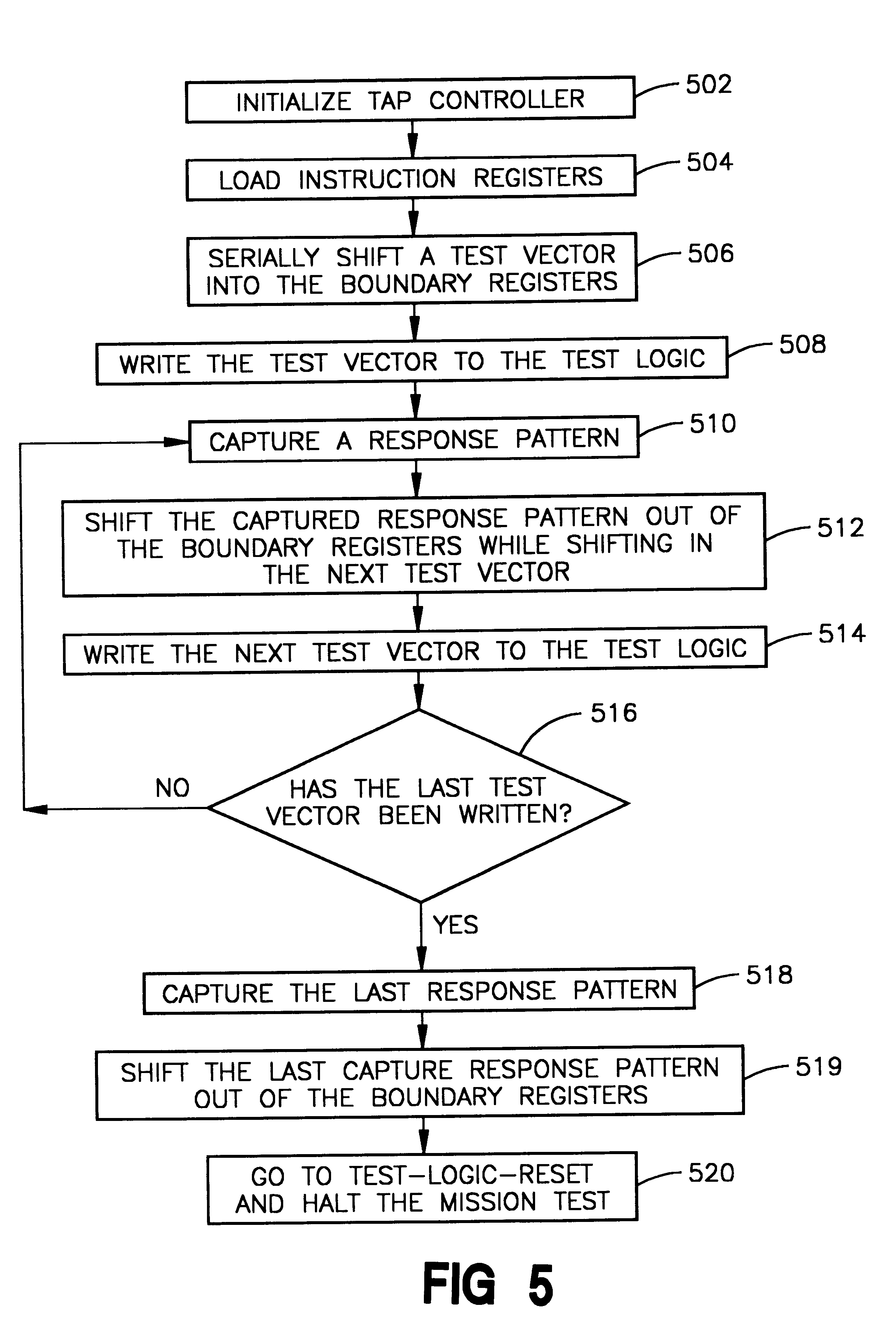 1. A boundary scan testing method for performing a mission test on a circuit under test formed by a plurality of interconnected integrated circuit (IC) chips, each chip having internal logic and a boundary scan circuit, wherein the plurality of boundary scan circuits are interconnected to form a scan path, and confirming the integrity of the mission test after the mission test has been performed, comprising the steps of: executing the mission test on the circuit under test, wherein the scan path has a pre-test configuration; determining, after performance of the mission test, a post-test configuration of the scan path; comparing said pre-test configuration with said post-test configuration; and confirming the integrity of the mission test if said pre-test configuration is the same as said post-test configuration. 2. The method according to claim 1, wherein said step of determining said post-test configuration comprises determining an actual bit length of the scan path in said post-test configuration; said step of comparing comprises comparing said actual bit length to an expected bit length of the scan path in said pre-test configuration; and said step of confirming the integrity of the mission test comprises confirming that said actual bit length is equal to said expected bit length. 3. The method according to claim 2, wherein said step of determining said actual bit length of the scan path in said post-test configuration comprises the step of: shifting a signature pattern through the circuit. 4. The method according to claim 1, wherein said step of executing the mission test comprises the steps of: shifting a test vector into the scan path in said pre-test configuration; writing said test vector to the circuit under test; capturing into the scan path a response pattern of said test vector; and shifting said response pattern out of the scan path in said post-test configuration. 5. The method according to claim 1, wherein the mission test includes more than one test vector and said step of executing the mission test comprises, for each test vector, the steps of: shifting the test vector into the scan path in said pre-test configuration; writing said test vector to the circuit under test; capturing into the scan path a response pattern of said test vector; and shifting said response pattern out of the scan path in said post-test configuration. 6. A method for testing a circuit under test formed by a plurality of interconnected integrated circuit (IC) chips, each chip having internal logic and a boundary scan circuit, wherein the plurality of boundary scan circuits are interconnected to form a scan path, the method comprising the steps of: serially shifting a mission test vector into the scan path in a pre-test configuration; writing said test vector to the circuit under test; capturing into the scan path a response pattern; serially shifting said response pattern out of the scan path, wherein the scan path has a post-test configuration after the preceding steps have been performed; and shifting a signature pattern through the scan path in said post-test configuration to determine an actual bit length of the scan path in said post-test configuration. 7. The method according to claim 6, further comprising the steps of: comparing said actual bit length of the scan path in said post-test configuration with an expected bit length of the scan path in said pre-test configuration; and indicating an invalid mission test if said actual bit length does not equal said expected bit length. 8. The method according to claim 6, wherein said step of shifting a signature pattern through the scan path comprises completely shifting the signature pattern through the scan path in the post-test configuration to determine the actual bit length of the scan path in the post-test configuration. 9. The method according to claim 6, wherein said step of shifting a signature pattern through the scan path comprises partially shifting the signature pattern through the scan path in the post-test configuration prior to determining the actual bit length of the scan path in the post-test configuration. 10. The method according to claim 6, further comprising the step of: repeating, for a plurality of missions test vectors, said steps of serially shifting said mission test vector into the scan path, writing said test vector to the circuit under test, capturing a response pattern and serially shifting said response pattern out of the scan path, prior to said step of shifting said signature pattern through the scan path. 11. A method for testing a circuit under test formed by a plurality of interconnected integrated circuit (IC) chips, each chip having internal logic and a boundary scan circuit, wherein the plurality of boundary scan circuits are interconnected to form a scan path, the method comprising the steps of: executing a mission test to test interconnects in the scan path on the circuit board; checking an integrity of the scan path after execution of the mission test to confirm that the mission test is valid; and diagnosing a result of the mission test only when the checking step confirms that the mission test is valid. 12. The method according to claim 11, wherein the step of checking the integrity of the scan path after execution of the mission test comprises: determining an actual bit length of the scan path after the mission test has been executed; comparing said actual bit length to an expected bit length; and indicating an invalid mission test if said actual bit length is not equal to said expected bit length. 13. The method according to claim 11, wherein said step of checking comprises the step of: shifting a signature pattern through the scan path in a post-test configuration to determine an actual bit length of the scan path in said post-test configuration. 14. The method according to claim 13, wherein said step of shifting comprises completely shifting the signature pattern through the scan path in the post-tes