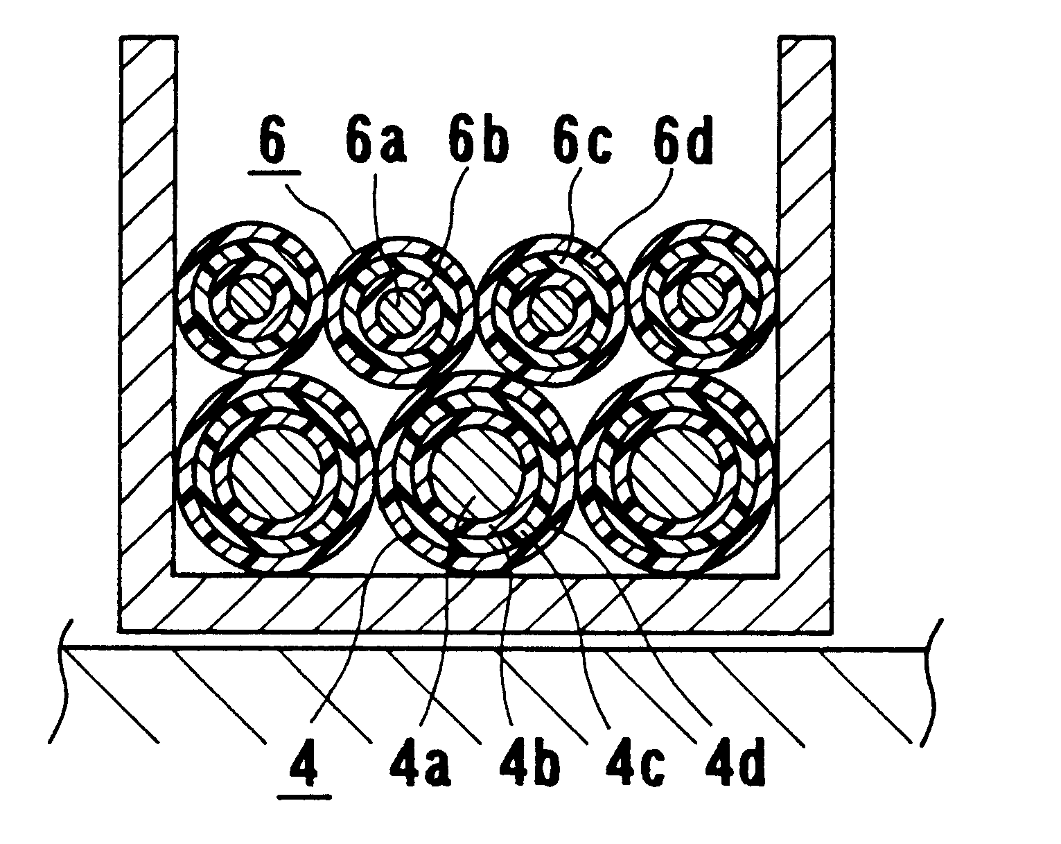 First Resin (A) PEI*1 100 layer (wt. parts) PES*2 100 100 100 100 (0.48) (0.41) (0.41) (0.41) Resin (B) PAR*3 80 (wt. parts) PC*4 65 18 PCT*5 45 PA*6 45 Sum of resins (wt. parts) 165 118 145 180 145 Inorganic titanium oxide 1*7 150 filler (C) titanium oxide 2*8 (wt. parts) silica 1*9 silica 2*10 Coating thickness (μm) of 33 33 33 33 33 first layer Second Resin (A) PEI*1 100 layer (wt. parts) PES*2 100 100 100 100 (0.48) (0.41) (0.41) (0.41) Resin (B) PAR*3 80 (wt. parts) PC*4 65 18 PCT*5 45 PA*6 45 Sum of resins (wt. parts) 165 118 145 180 145 Inorganic titanium oxide 1*7 150 50 16 filler (C) titanium oxide 2*8 (wt. parts) silica 1*9 silica 2*10 Coating thickness (μm) of 33 33 33 33 33 second layer Third Resin (A) PEI*1 100 layer (wt. parts) PES*2 100 100 100 100 (outer (0.48) (0.41) (0.41) (0.41) -most Resin (B) PAR*3 80 layer) (wt. parts) PC*4 65 18 PCT*5 45 PA*6 45 Sum of resins (wt. parts) 165 118 145 180 145 inorganic titanium oxide 1*7 150 50 16 80 filler (C) titanium oxide 2*8 60 (wt. parts) silica 1*9 silica 2*10 calcium carbonate*11 silica 3*12 Coating thickness (μm) of 33 33 33 33 33 third layer Surface-treatment refrigera- refrigera- refrigera- refrigera- solid ting mach- ting mach- ting mach- ting mach- paraffin ine oil ine oil ine oil ine oil Overall coating thickness (μm) 100 100 100 100 100 Solvent resistance 5H 4H 3H 4H 4H Solderability (450° C.) 3.5 4.5 4.5 3 3.5 Dielectric breakdown voltage (kV) 15.5 20.1 20.4 17.5 19.6 Heat resistance Class B passed passed passed passed passed Class E — — — — — Heat shock resistance (1D) good good good good good High-frequency characteristic (3.8 kV) 67.4 39.7 24.5 23.1 21.4 Static friction coefficient 0.18 0.15 0.15 0.16 0.1 (Note)*1polyetherimide resin, ULTEM 1000 (trade name; manufactured by GE Plastics Ltd.) *2polyethersulfone resin, SUMIKAEXCEL PES (trade name; manufactured by Sumitomo Chemical Co., Ltd.); reduced viscosity is shown in parenthesis. *3polyarylate resin, U-POLYMER U-1000 (trade name; manufactured by Unitika Ltd.) *4polycarbonate resin, LEXAN SP-1210 (trade name; manufactured by GE Plastics Ltd.) *5polyester (polycyclohexanedimethylene terephthalate) resin, EKTAR DA (trade name; manufactured by Toray Industries, Inc.) *6polyamide resin (nylon 6-T, ARLEN AE-4200 (trade name; manufactured by Mitsui Petrochemical Industries, Ltd.) *7FR-88 (trade name: manufactured by FURUKAWA CO., LTD.); av. particle diameter of 0.1 μm *8RLX-A (trade name; manufactured by FURUKAWA CO., LTD.); av. particle diameter of 3 to 4 μm *9UF-007 (trade name; manufactured by Tatsumori LTD.); av. particle diameter of 5 μm *105X (trade name; manufactured by Tatsumori LTD.); av. particle diameter of 1.5 μm *11VIGOT-15 (trade name; manufactured by SHIRAISHI KOGYO KAISHA LTD.); av. particle diameter of 0.15 μm *12A-1 (trade name: manufactured by Tatsuimori LTD.); av. particle diameter of 10 μm First Resin (A) PEI*1 layer (wt. parts) PES*2 100 100 100 100 (0.31) (0.31) (0.31) (0.31) (0.31) Resin (B) PAR*3 (wt. parts) PC*4 45 45 45 45 45 PCT*5 PA*6 Sum of resins (wt. parts) 145 145 145 145 145 Inorganic titanium oxide 1*7 filler (C) titanium oxide 2*8 (wt. parts) silica 1*9 silica 2*10 Coating thickness (μm) of 33 33 33 33 33 first layer Second Resin (A) PEI*1 layer (wt. parts) PES*2 100 100 100 100 100 (0.31) (0.31) (0.31) (0.31) (0.31) Resin (B) PAR*3 (wt. parts) PC*4 45 45 45 45 45 PCT*5 PA*6 Sum of resins (wt. parts) 145 145 145 145 145 Inorganic titanium oxide 1*7 filler (C) titanium oxide 2*8 (wt. parts) silica 1*9 silica 2*10 Coating thickness (μm) of 33 33 33 33 33 second layer Third Resin (A) PEI*1 layer (wt. parts) PES*2 100 100 100 100 100 (outer (0.41) (0.41) (0.41) (0.41) (0.41) -most Resin (B) PAR*3 45 layer) (wt. parts) PC*4 45 45 45 45 PCT*5 PA*6 Sum of resins (wt. parts) 145 145 145 145 145 inorganic titanium oxide 1*7 filler (C) titanium oxide 2*8 60 40 (wt. parts) silica 1*9 60 silica 2*10 60 calcium carbonate*11 60 silica 3*12 Coating thickness (μm) of 33 33 33 33 33 third layer Surface-treatment solid fatty acid fatty acid fatty acid fatty acid paraffin wax wax wax wax Overall coating thickness (μm) 100 100 100 100 100 Solvent resistance 4H 4H 4H 4H 4H Solderability (450° C.) 3.5 4 4 4 4 Dielectric breakdown voltage (kV) 20.1 20 19.8 25.1 26.0 Heat resistance Class B passed passed passed passed passed Class E — — — — — Heat shock resistance (1D) good good good good good High-frequency characteristic (3.8 kV) 21.1 20.3 14.8 26.4 19.5 Static friction coefficient 0.1 0.0 0.1 0.09 0.09 (Note)*1polyetherimide resin, ULTEM 1000 (trade name; manufactured by GE Plastics Ltd.) *2polyethersulfone resin, SUMIKAEXCEL PES (trade name; manufactured by Sumitomo Chemical Co., Ltd.); reduced viscosity is shown in parenthesis. *3polyarylate resin, U-POLYMER U-1000 (trade name; manufactured by Unitika Ltd.) *4polycarbonate resin, LEXAN SP-1210 (trade name; manufactured by GE Plastics Ltd.) *5polyester (polycyclohexanedimethylene terephthalate) resin, EKTAR DA (trade name; manufactured by Toray Industries, Inc.) *6polyamide resin (nylon 6-T, ARLEN AE-4200 (trade name; manufactured by Mitsui Petrochemical Industries, Ltd.) *7FR-88 (trade name: manufactured by FURUKAWA CO., LTD.); av. particle diameter of 0.1 μm *8RLX-A (trade name; manufactured by FURUKAWA CO., LTD.); av. particle diameter of 3 to 4 μm *9UF-007 (trade name; manufactured by Tatsumori LTD.); av. particle diameter of 5 μm *105X (trade name; manufactured by Tatsumori LTD.); av. particle diameter of 1.5 μm *11VIGOT-15 (trade name; manufactured by SHIRAISHI KOGYO KAISHA LTD.); av. particle diameter of 0.15 μm *12A-1 (trade name: manufactured by Tatsuimori LTD.); av. particle diameter of 10 μm First Resin (A) PEI*1 layer (wt. parts) PES*2 100 100 100 100 (0.31) (0.31) (0.41) (0.41) Resin (B) PAR*3 (wt. parts) PC*4 45 45 150 45 PCT*5 PA*6 Sum of resins (wt. parts) 145 145 145 145 Inorganic titanium oxide 1*7 filler (C) titanium oxide 2*8 (wt. parts) sili