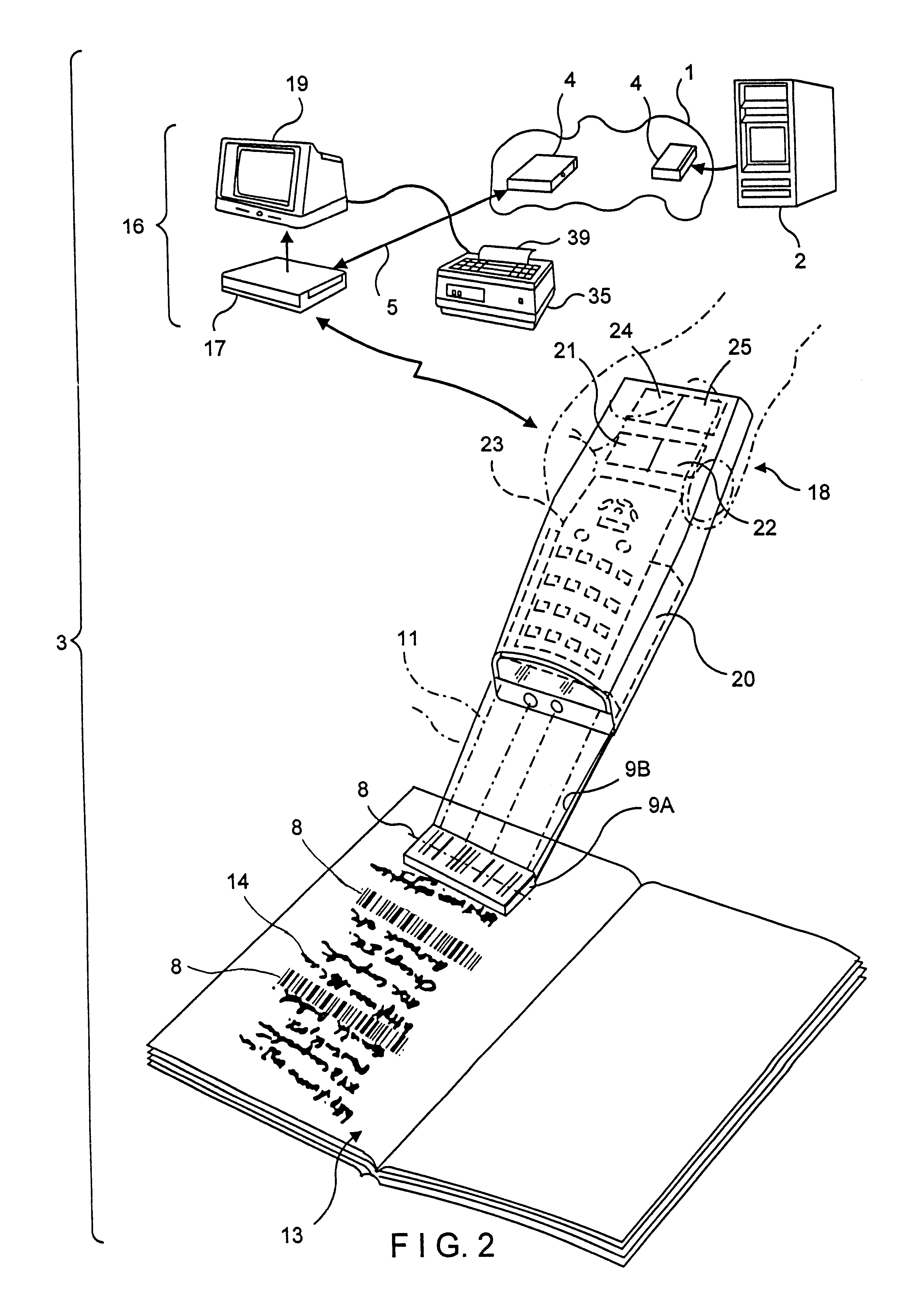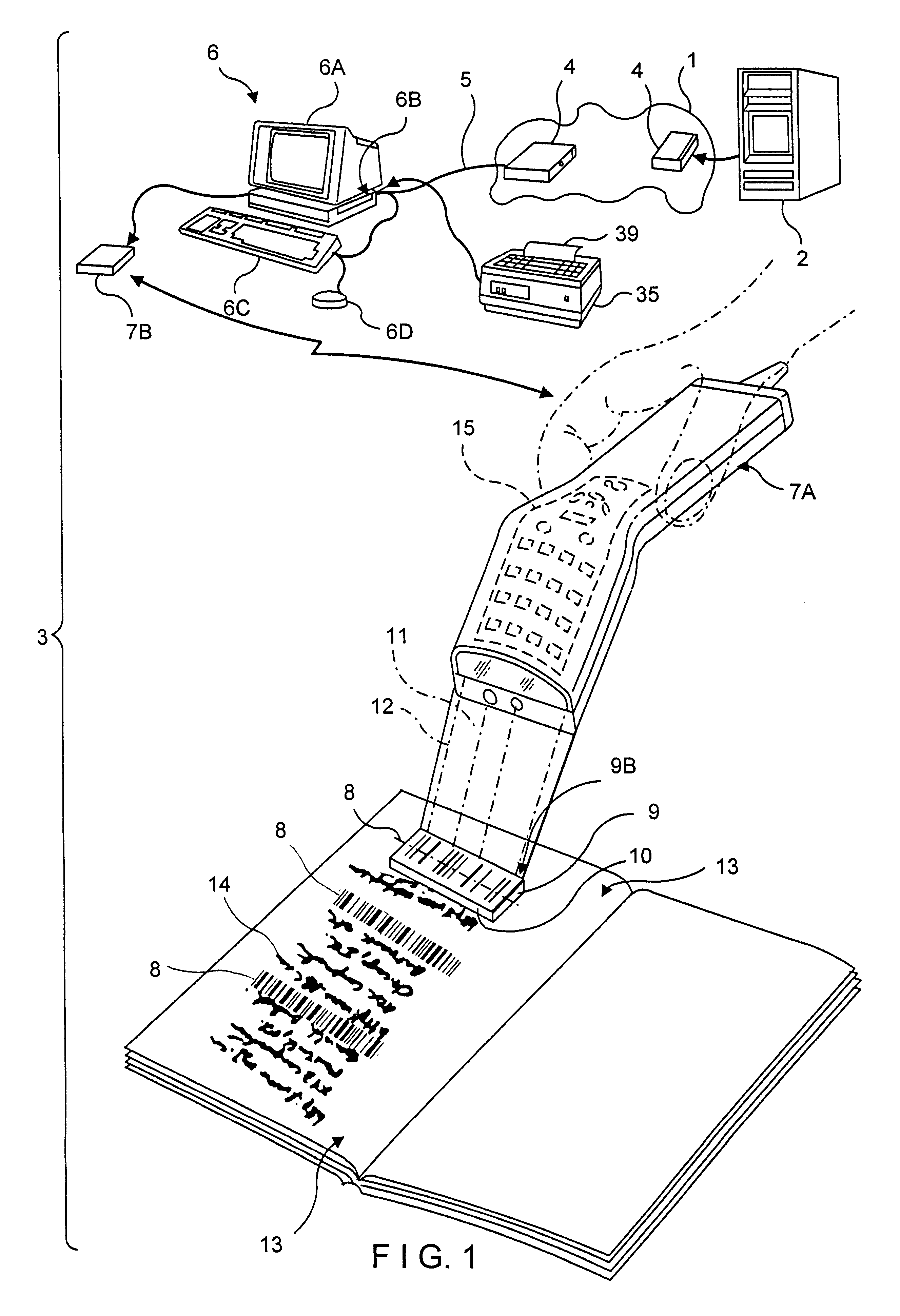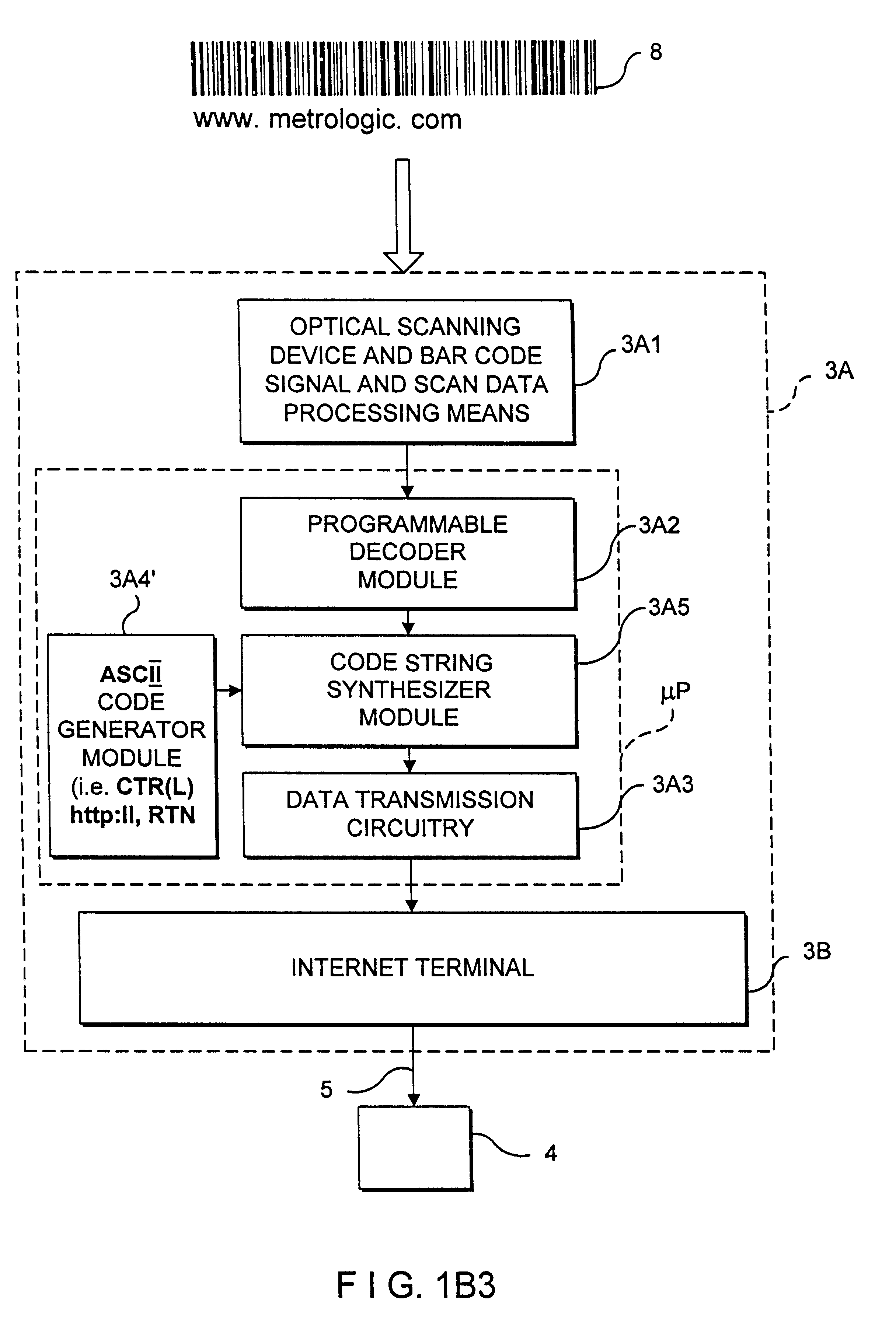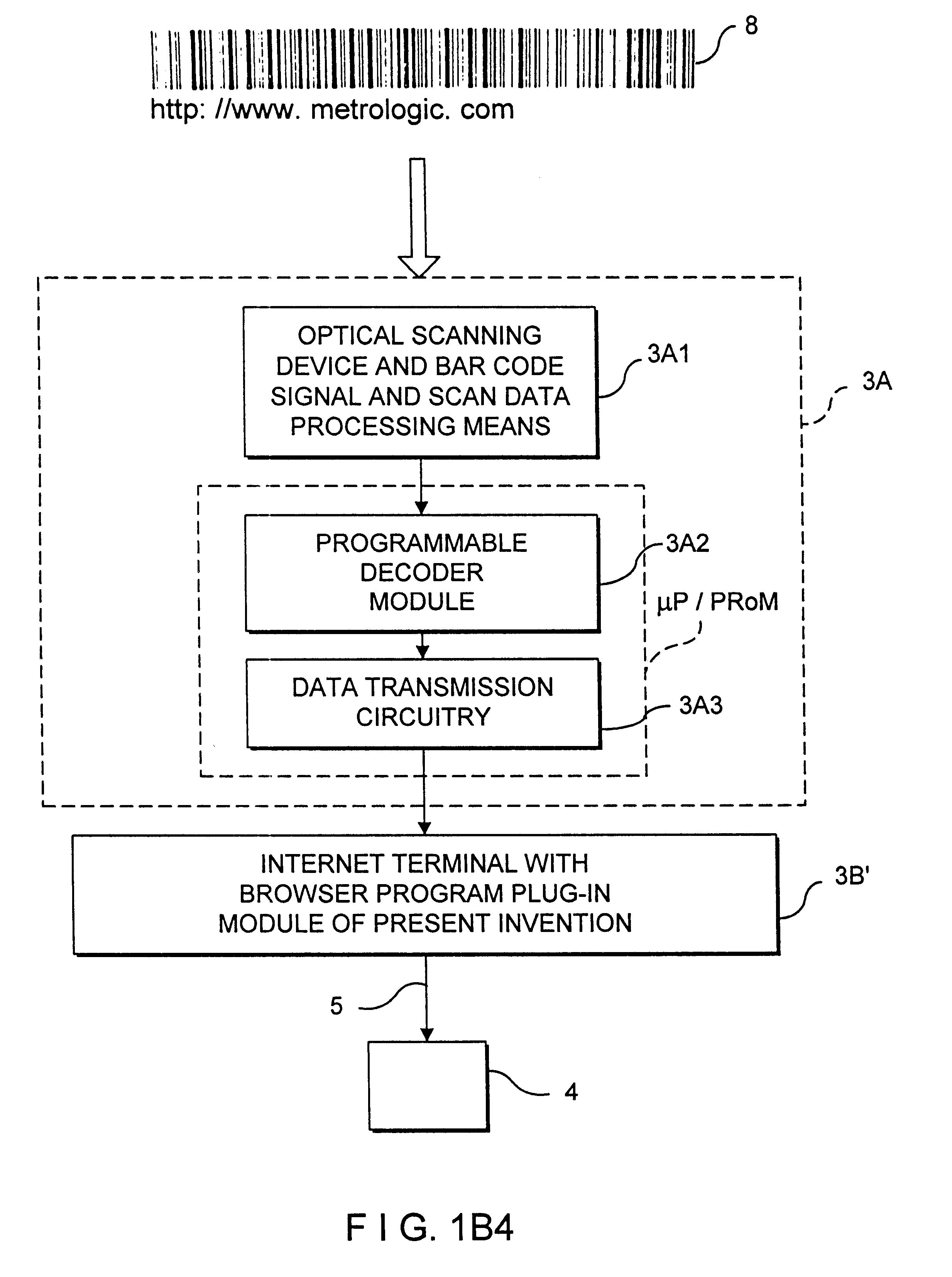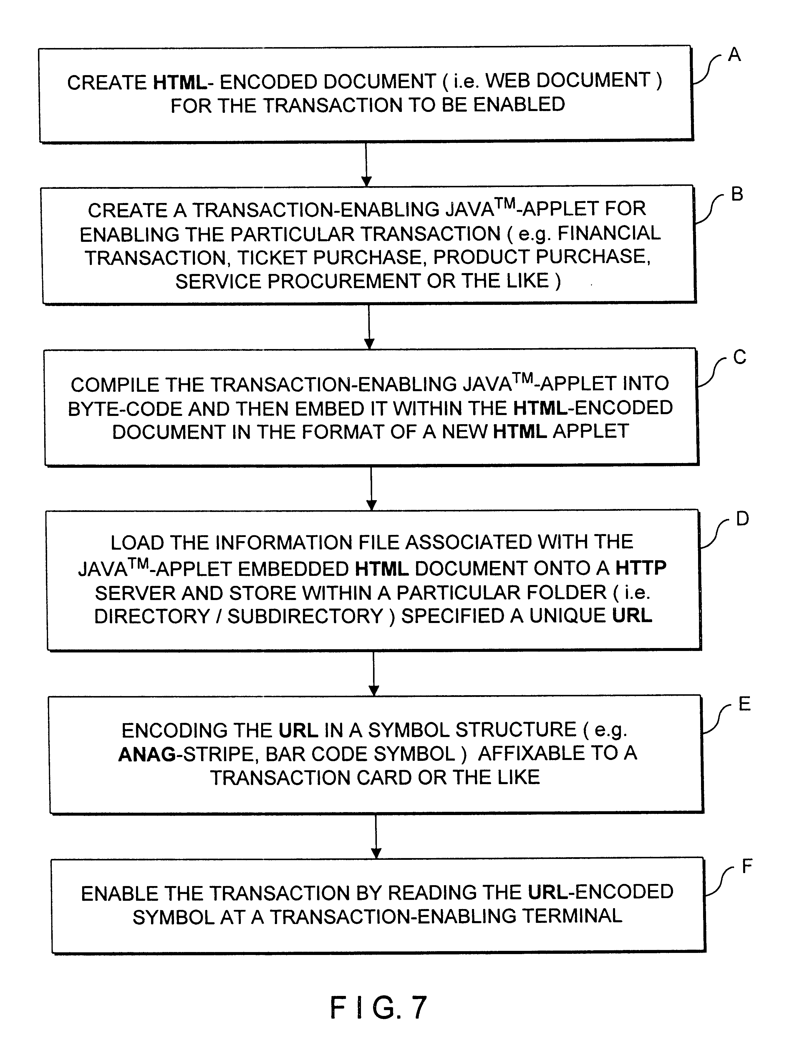 This application is a Continuation of application Ser. No. 09/136,646 filed Aug. 19, 1998, which is a Continuation of application Ser. No. 08/916,694 filed Aug. 22, 1997 now U.S. Pat. No. 5,905,248, which is Continuation-in-part of: application Ser. No. 08/905,903 entitled “BODY-WEARABLE BAR CODE SYMBOL DRIVEN SYSTEM FOR ACCESSING INFORMATION RESOURCES ON THE INTERNET”, by inventors C. Harry Knowles and David M. Wilz, Sr., filed Aug. 4, 1997; application Ser. No. 08/869,164 filed Jun. 4, 1997 now U.S. Pat. No. 5,992,752; application Ser. No. 08/846,219 entitled “Programmed Bar Code Symbol Reader For Accessing Internet-based Information Resources By Scanning Java-Applet Encoded Bar Code Symbols”, filed Apr. 25, 1997; application Ser. No. 08/838,501 entitled “Internet-Based System And Method For Tracking Objects Bearing URL-Encoded Bar Code Symbols” by David M. Wilz, Sr. and C. Harry Knowles, filed Apr. 7, 1997 now U.S. Pat. No. 5,869,819, which is a Continuation-in-Part of application Ser. No. 08/820,540 entitled “System And Method For Composing And Printing URL-encoded bar code symbol Lists And Menus For Use In Visiting Internet-Based Information Resources By Scanning The Same” by Harry Knowles, filed Mar. 19, 1997, which is a Continuation-in-part of application Ser. No. 08/753,367 filed Nov. 25, 1996 now abandoned; application Ser. No. 08/645,331 filed May 13, 1996 now U.S. Pat. No. 5,844,227; application Ser. No. 08/615,054 filed Mar. 12, 1996; application Ser. No. 08/573,949 filed Dec. 18, 1995 now abandoned; application Ser. No. 08/292,237 filed Aug. 17, 1994 now U.S. Pat. No. 5,808,885; application Ser. No. 08/365,193 filed Dec. 28, 1994 now U.S. Pat. No. 5,557,093; application Ser. No. 08/293,493 filed Aug. 19, 1994 now U.S. Pat. No. 5,525,789; application Ser. No. 08/561,479 filed Nov. 20, 1995 now U.S. Pat. No. 5,661,292; application Ser. No. 08/278,109 filed Nov. 24, 1995 now U.S. Pat. No. 5,484,992; application Ser. No. 08/489,305 filed Jun. 9, 1995 now abandoned; Ser. No. 08/476,069 filed Jun. 7, 1995 now U.S. Pat. No. 5,592,953; application Ser. No. 08/584,135 filed Jan. 11, 1996 now U.S. Pat. No. 5,616,908 which is a continuation of application Ser. No. 08/651,951 filed May 21, 1996 now U.S. Pat. No. 5,874,723 which is a continuation of application Ser. No. 08/489,305 filed Jun. 9, 1995 now abandoned, which is a continuation of application Ser. No. 07/821,917 filed Jan. 16, 1992, now abandoned, which is a continuation-in-part of application Ser. No. 07/583,421 filed Sep. 17, 1990, now U.S. Pat. No. 5,260553, and application Ser. No. 07/580,740 filed Sep. 11, 1990, now abandoned. Each said patent application is assigned to and commonly owned by Metrologic Instruments, Inc. of Blackwood, N.J., and is incorporated herein by reference in its entirety. 1. Field of Invention The present invention is directed to a novel system and method for carrying out information-related transactions (e.g., electronic commerce) using Web documents (i.e., Web pages) which embody transaction-enabling applets that are automatically launched and executed in response to reading code symbols embodying Uniform Resource Locators (URLs) pointing thereto. 2. Background of the Invention Presently, most information-related transactions, including financial transactions, product-purchases, service procurement, insurance claim reporting, information-access, and the like, are carried out using the telephone and information (e.g., personal identification number, etc.) preprinted on a credit-size card which functions as a transaction card. Some financial transactions (e.g., cash deposits and/or withdrawals) require the use of special machines called automated teller machines (ATMs). While developments in telephony and speech technology have made telephone-based transactions more economical in recent years, there are nevertheless practical restrictions imposed on the types of transactions that one can easily carry out over the telephone. In response to the shortcomings and drawbacks associated with telephonic-based transactions, many product vendors and service providers have launched Internet sites on the World-Wide Web (i.e., “Web-sites”) to enable their customers to carry out various types of transactions using an Internet browser program, such as the Navigator® from Netscape Communications, Inc. or the Internet Explorer® from Microsoft, Inc. While the development of the HyperText Mark-up Language (HTML) and GUI-based Web browser programs have made accessing Web-sites relatively simple, the fact remains that many consumers are uncomfortable using conventional Web browsers, and thus would rather carry out transactions using the telephone. Consequently, these consumers cannot enjoy benefits associated with Internet-based information transactions, while product vendors and service providers cannot enjoy the savings and benefits associated with Internet-based transactions. Thus, there is a great need in the art for an improved system and method of carrying out information-related transactions (as well as electronic commerce) over the Internet while avoiding the shortcomings and drawbacks of prior art systems and methodologies. Accordingly, it is a primary object of the present invention to provide an improved system and method of carrying out information-related transactions (as well as electronic commerce) over the Internet while avoiding the shortcomings and drawbacks of prior art systems and methodologies. An further object of the present invention is to provide such a system, in which a Web page embodying an transaction-enabling Applet is automatically served to the client system in response to reading a DN/PN-encoded (Domain Name and Path Name encoded) or URL-encoded (Uniform Resource Location encoded) symbol (e.g., bar code symbol or magnetic-stripe) which points to the Web page embodying the transaction-enabling Applet. A further object of the present invention is to provide such a sys