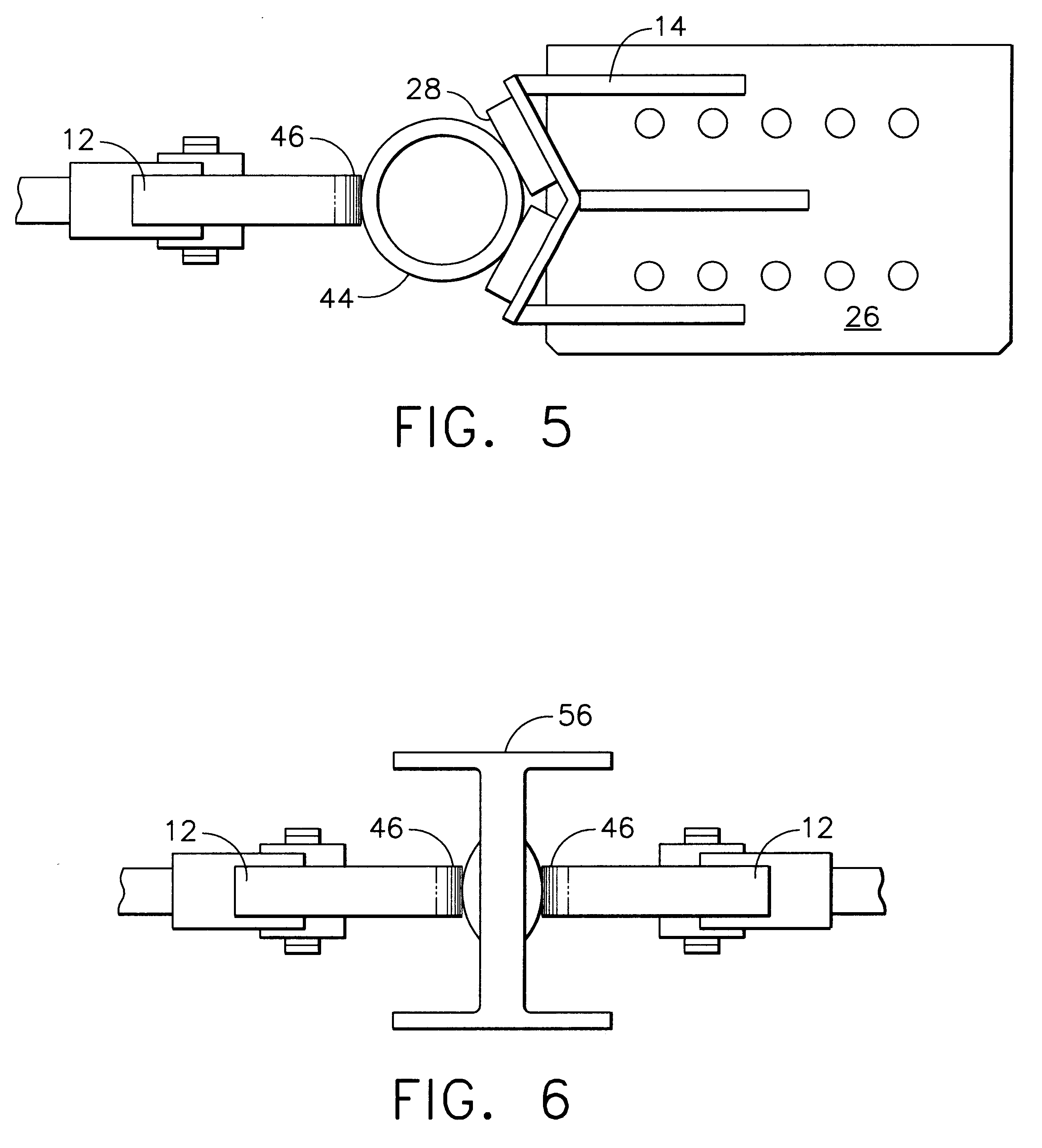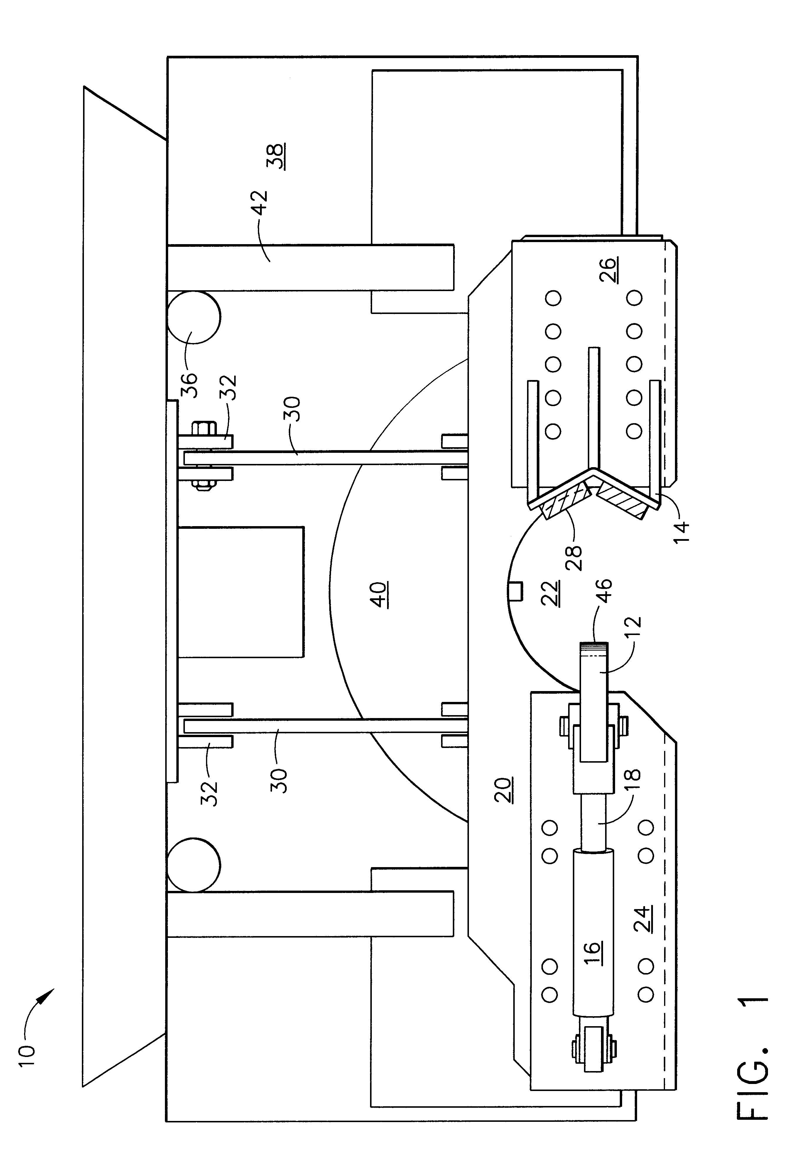 The present application is based on and claims priority benefit of U.S. Provisional Patent Application Ser. No. 60/146,529, filed Jul. 30, 1999, the entire specification of which is incorporated herein by reference. The present invention relates generally to post pullers and, more particularly, to an improved attachment for use with hydraulic power sources for pulling posts from the ground. The removal of highway guardrails and fence posts, especially those mounted in concrete, is a very difficult task. This task is frequently accomplished in a rather haphazard and unsafe manner. Generally, extracting a post may be accomplished by wrapping a chain around the post, then pulling up on the chain until it is tight and will “bind” on the post. This requires a minimum of two persons—one to wrap the chain and keep a “binding” force tension on the chain, and one to operate the machine to lift or pull the post from the ground. This is a dangerous operation because the person wrapping the chain onto the post must manually keep tension of the chain while the equipment operator pulls the chain tight, and often the operator cannot fully see the other person while operating the machine. Highway guardrails are pulled in a similar manner—either by wrapping the guardrail with a chain or attaching a cable to the guardrail with a plate clamp or similar device. Additionally, the second person or helper must also unchain or unclamp the post or guardrail in order to move on the next one. In addition, apparatus for pulling posts out of the ground are known in the art. Some such apparatus are so designed that they must be transported by hand to the site where they are to be used. Other apparatus, although designed to be vehicle mounted, are not provided with sufficient positive extracting force to be used for posts of larger sizes or that are set relatively deeply in the ground. Still others which are designed to be motor vehicle mounted have a minimal radius of operation or, at best, are confined to operation within an extremely limited radius from the vehicle. Still other post puller designs are incapable of effective use for removing posts of various diameters or cross-sectional shapes. The forces required to pull a post from the ground are often very large and indeterminate, due to unknowns such as soil compaction, soil type, suction, and other unknown variables. Therefore, many prior art post pulling machines are incapable of pulling a post from the ground, even if there were a method of clamping or gripping the post. The actual pulling or lifting function often requires the use of a large machine, due to the high breakout lifting forces required. These larger machines are required because they must supply all of the lifting or pulling force. These larger machines can also be a hazard when operating in the confined spaces of a heavily traveled highway. Accordingly, it is an object of the present invention to provide post puller adapted to be mounted on a prime mover or vehicle with a hydraulic power source that addresses the disadvantages of the above-described prior art. It is a further object of the present invention to provide a post puller attachment that grips the post from the side or front and that is adapted to clamp the object to be removed from the ground relatively low to the ground. It is still a further object of the present invention to provide a post puller attachment wherein the initial lifting or breakout force is supplied by the attachment which reacts against the ground and, as a result, is adaptable for use with relatively smaller and more maneuverable handling machinery such as skid steer loaders or small tractors. It is yet a further object of the present invention to provide a post puller attachment which is characterized by rugged construction and ease of use. Still other objects of the present invention will become apparent to those skilled in this art from the following description and drawing wherein there is described and shown a preferred embodiment of the invention. As will be realized, the invention is capable of other different embodiments, and its several details are capable of modification in various, obvious aspects all without departing from the invention. Accordingly, the drawings and descriptions will be regarded as illustrative in nature and not as restrictive. To achieve the foregoing and other objects, and in accordance with one aspect of the present invention, an improved post puller is provided. The improved hydraulically operated post pulling apparatus is adapted to be mounted on a vehicle such as a skid steer mover. The post puller apparatus includes a support frame adapted to be mounted on the vehicle. The support frame includes a number of base member brackets that attach a base member or base plate to the support frame. The base member includes a post receiving recess that is adapted to receive a post from the side rather than the top. The post pulling apparatus also includes a top support plate that also includes a post receiving indent, which is also adapted to receive a post from the side rather than the top. A rotating jaw member that includes a plurality of post-engaging teeth is pivotally mounted next to the post receiving indent on the top support plate. Opposite the rotating jaw member and also next to the post receiving indent, a fixed jaw member is attached to the top support plate that includes a number of post-engaging faces. A clamping cylinder is mounted to the top support plate and includes a piston that is pivotally attached to the rotating jaw member. The piston, when extended, operates to pivot the rotating jaw member downwardly into engagement with the post to be engaged and removed from the ground. First and second pairs of bar links are each pivotally mounted at one end to the support frame and pivotally mounted at an opposite end to a forward panel that is preferably attached to the rear of the support plate. A pair of pullin