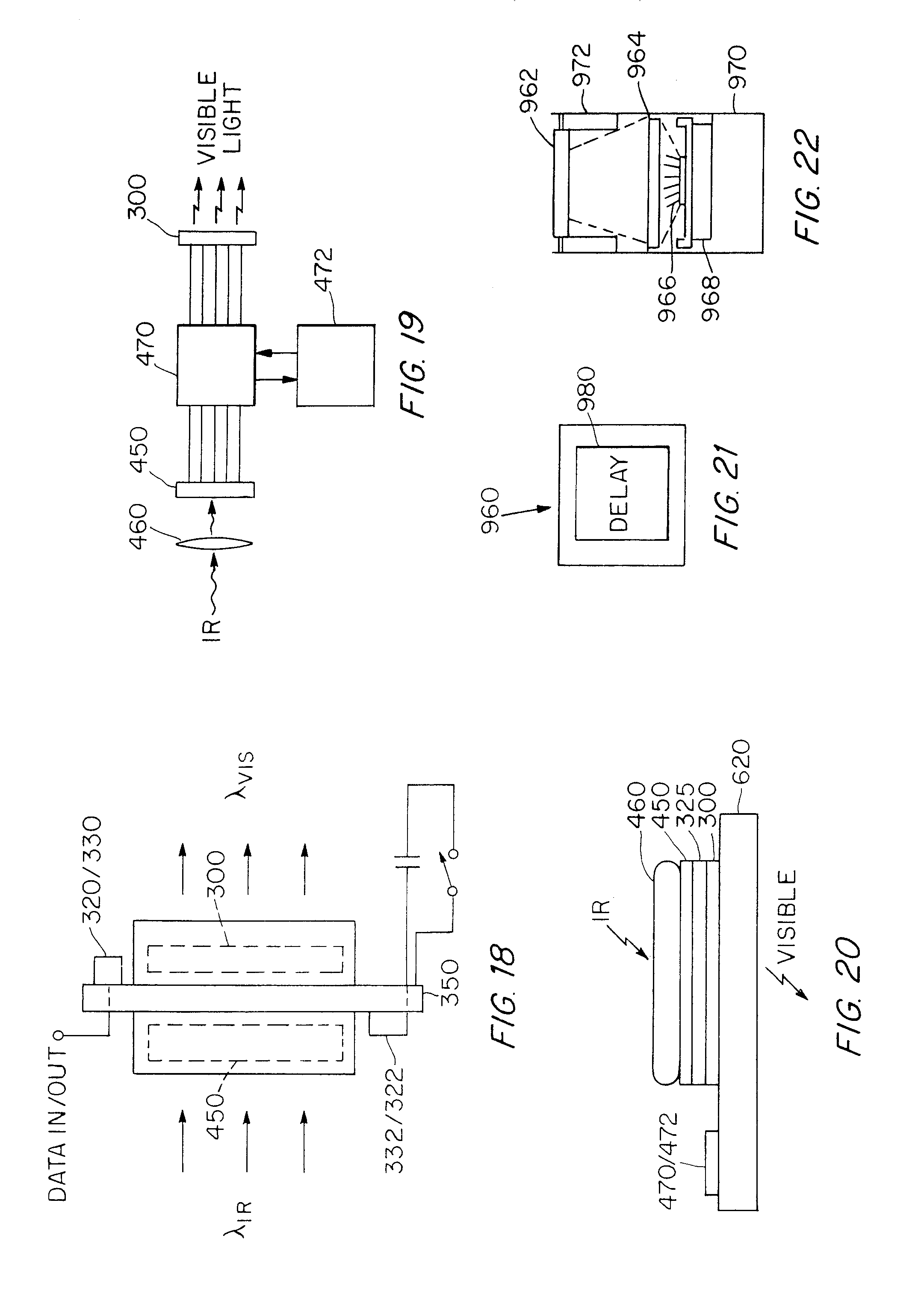 This application is a continuation of application Ser. No. 08/165,025 filed Dec. 9, 1993, now U.S. Pat. No. 5,453,405, which is a Divisional of Ser. No. 07/643,552 filed Jan. 18, 1991, now U.S. Pat. No. 5,300,788. This invention is in the field of light emitting diodes (LEDs). The background to the invention may be conveniently summarized in connection with four main subject matters. LEDs, LED bars, LED arrays and Lift-off methods, as follows: LEDs LEDs are rectifying semiconductor devices which convert electric energy into non-coherent electromagnetic radiation. The wavelength of the radiation currently extends from the visible to the near infrared, depending upon the bandgap of the semiconductor material used. Homojunction LEDs operate as follows: For a zero-biased p-n junction in thermal equilibrium, a built-in potential at the junction prevents the majority charge carriers (electrons on the n side and holes on the p side) from diffusing into the opposite side of the junction. Under forward bias, the magnitude of the potential barrier is reduced. As a result, some of the free electrons on the n-side and some of the free holes on the p-side are allowed to diffuse across the junction. Once across, they significantly increase the minority carrier concentrations. The excess carriers then recombine with the majority carrier concentrations. This action tends to return the minority carrier concentrations to their equilibrium values. As a consequence of the recombination of electrons and holes, photons are emitted from within the semiconductor. The energy of the released photons is close in value to that of the energy gap of the semiconductor of which the p-n junction is made. For conversion between photon energy (E) and wavelength (λ), the following equation applies: The optical radiation generated by the above process is called electroluminescence. The quantum efficiency η for a LED is generally defined as the ratio of the number of photons produced to the number of electrons passing through the diode. The internal quantum efficiency ηiis evaluated at the p-n junction, whereas the external quantum efficiency ηeis evaluated at the exterior of the diode. The external quantum efficiency is always less than the internal quantum efficiency due to optical losses that occur before the photons escape from the emitting surface. Some major causes for the optical losses include internal re-absorption and absorption at the surface. The internal efficiency can exceed 50% and, sometimes, can be close to 100% for devices made of a very high-quality epitaxial material. The external quantum efficiency for a conventional LED is such lower than the internal quantum efficiency, even under optimum conditions. Most commercial LEDs, both visible and infrared, are fabricated from group III-V compounds. These compounds contain elements such as gallium, indium and aluminum of group III and antimony, arsenic and phosphorus of group V of the periodic table. With the addition of the proper impurities, by diffusion, or grown-in; III-V compounds can be made p- or n-type, to form p-n junctions. They also possess the proper range of band gaps to produce radiation of the required wavelength and efficiency in the conversion of electric energy to radiation. The fabrication of LEDs begins with the preparation of single-crystal substrates usually made of gallium arsenide, about 250-350 μm thick. Both p- and n-type layers are formed over this substrate by depositing layers of semiconductor material from a vapor or from a melt. The most commonly used LED is the red light-emitting diode, made of gallium arsenide-phosphide on gallium arsenide substrates. An n-type layer is grown over the substrate by vapor-phase deposition followed by a diffusion step to form the p-n function. Ohmic contacts are made by evaporating metallic layers to both n- and p-type materials. The light resulting from optical recombination of electrons and holes is generated near the p-n junction. This light is characterized by a uniform angular distribution; some of this light propagates toward the front surface of the semiconductor diode. Only a small fraction of the light striking the top surface of the diode is at the proper angle of incidence with respect to the surface for transmission beyond the surface due to the large difference in the refractive indices between semiconductor and air. Most of the light is internally reflected and absorbed by the substrate. Hence a typical red LED has only a few percent external quantum efficiency, that is, only a few percent of the electric energy results in external light emission. More efficient and therefore brighter LEDs can be fabricated on a gallium phosphide substrate, which is transparent to the electroluminescent radiation and permits the light to escape upon reflection from the back contact. For brighter LEDs, AlGaAs, with the Al percentage equal to 0-38%, grown on GaAs substrates is used. The AlGAs LEDs are usually about 50 μm thick and are grown on GaAs by liquid-phase epitaxy(LPE). The p-n junctions are diffused. For even brighter LEDs, the AlGAs layers are grown even thicker (−150 μm), and the GaAs substrates are etched off. The thick AlGAs layer becomes the mechanical support. With no substrate and a reflector at the back side one can double the external efficiency. Visible LEDs are used as solid-state indicator lights and as light sources for numeric and alphanumeric displays. Infrared LEDs are used in optoisolators, remote controls and in optical fiber transmission in order to obtain the highest possible efficiency. The advantages of LEDs as light sources are their small size, ruggedness, low operating temperature, long life, and compatibility with silicon integrated circuits. They are widely used as status indicators in instruments, cameras, appliances, dashboards, computer terminals, and so forth, and as nighttime illuminators for instrument panels and telephone dials. Visible LEDs are made f