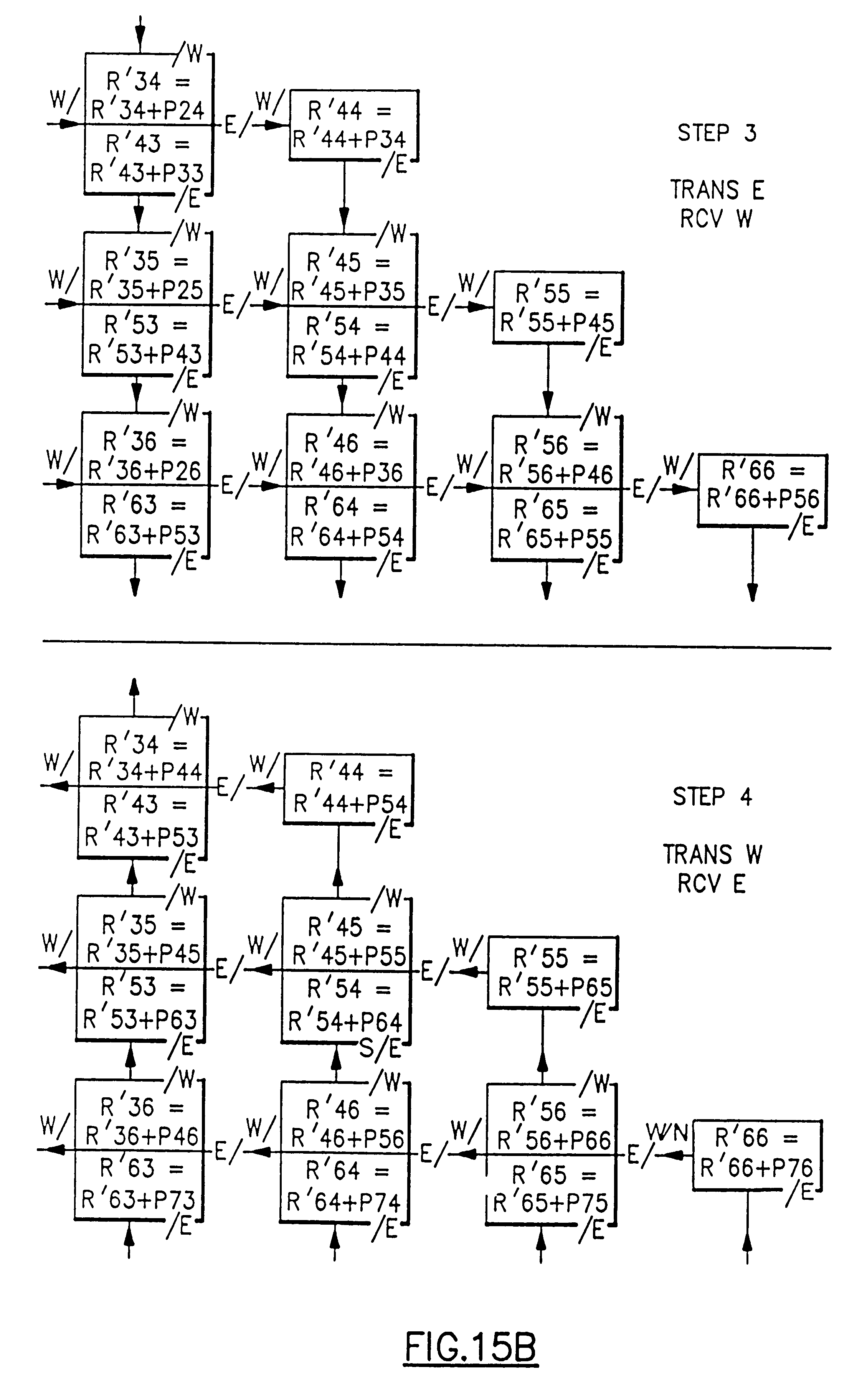 The initial values loaded into the Pijregisters are problem dependent. The accumulators R′ijare initialized to zero and a maximum acceptable error value is loaded into the Wabregister. After initialization the following steps are followed, refer to FIGS. 15 STEPS 1 through 5 corresponding to the following listed steps.