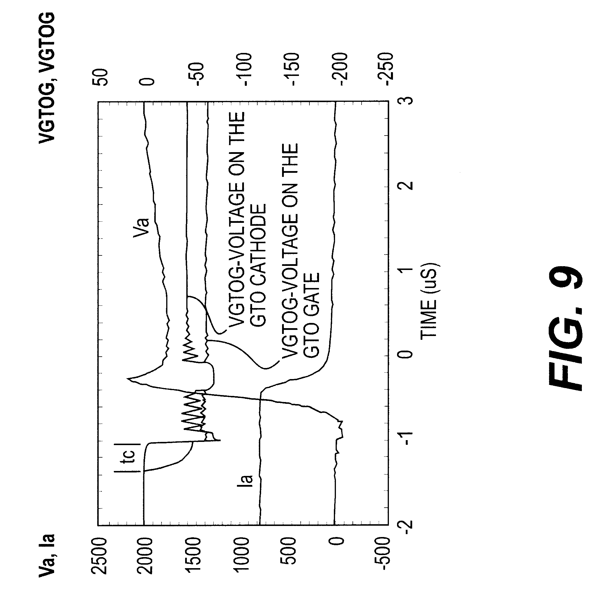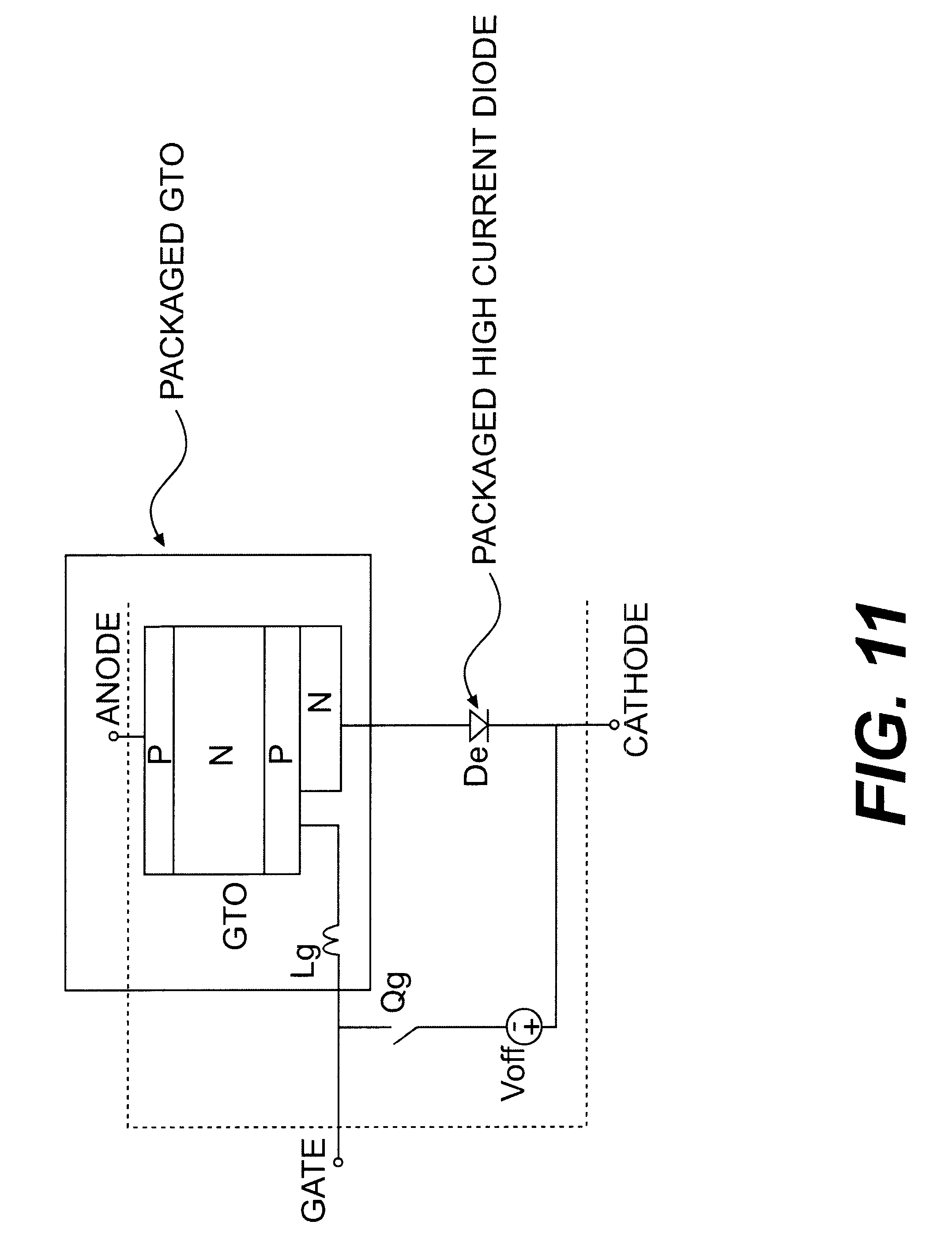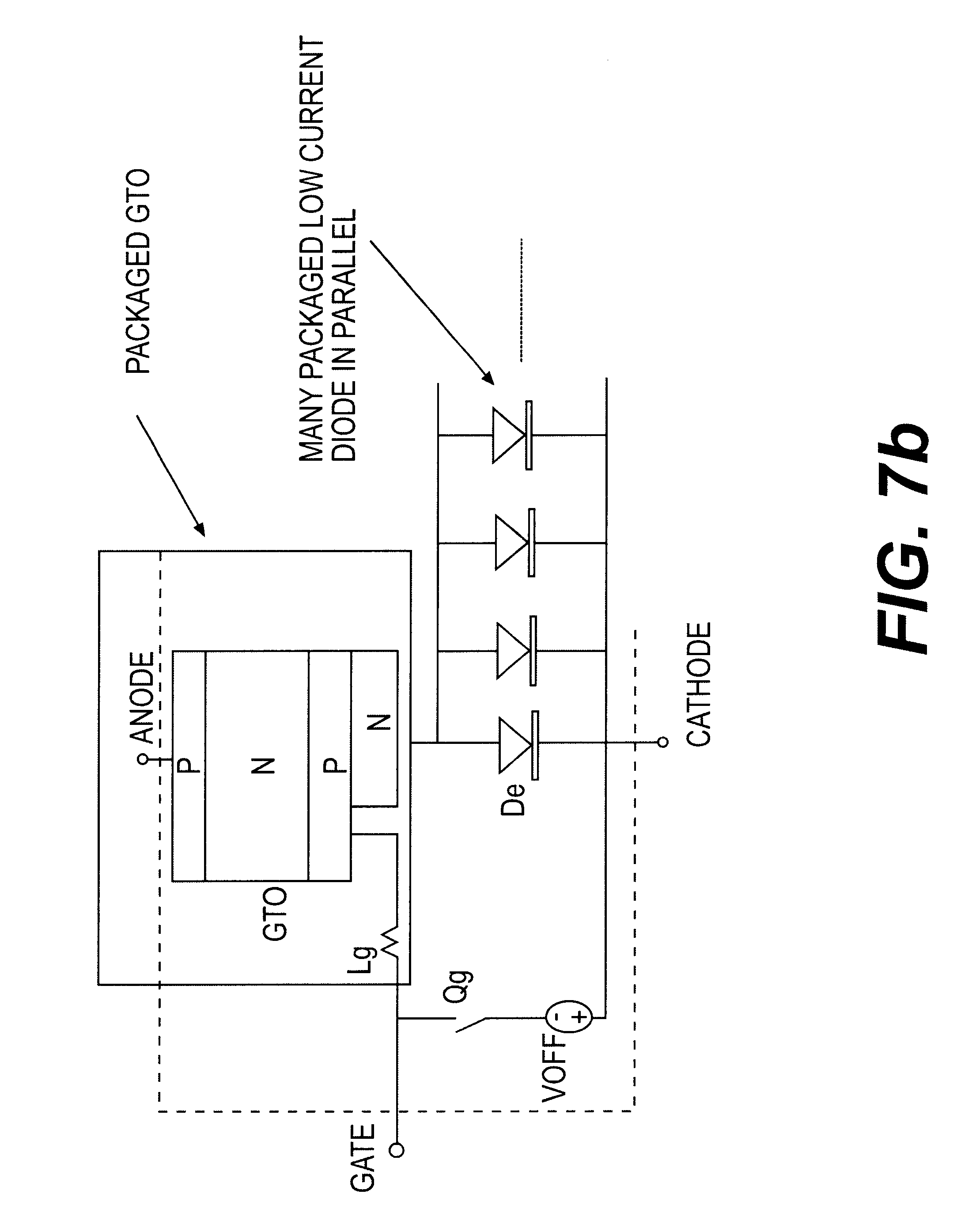 1. A gate turn-off thyristor circuit having an anode and a cathode, comprising: a gate turnoff thyristor connected to said anode; a diode connected in series with said gate turn-off thyristor in a cathode current path and said cathode; a turn-off voltage source connected to said diode; and a gate loop stray inductance element connected between said turn-off voltage and said gate turn-off thyristor, wherein a turn-off current commutating rate of said gate turn-off thyristor is based on a breakdown voltage of said diode. 2. The thyristor circuit of 3. The thyristor circuit of 4. The thyristor circuit of 5. The thyristor circuit of 6. The thyristor circuit of 7. The thyristor circuit of 8. The thyristor circuit of 9. The thyristor circuit of 10. The thyristor circuit of 11. A gate turn-off thyristor circuit having an anode and a cathode comprising: a gate turn-off thyristor connected to said anode; a plurality of parallel-connected diodes between said gate turn-off thyristor in a cathode current path and said cathode; a turn-off voltage source connected to said plurality of diodes; and a gate loop stray inductance element connected between said turn-off voltage and said gate turn-off thyristor; wherein said plurality of diodes form a diode element having a breakdown voltage, and wherein a turn-off current commutating rate of said gate turn-off thyristor is based on the breakdown voltage of said diode element. 12. A method for performing snubberless switching of a gate turn-off thyristor circuit, said circuit including an anode and a cathode, comprising: connecting a gate turn-off thyristor to said anode; connecting a diode in series with said gate turn-off thyristor in a cathode current path and said cathode; connecting a turn-off voltage source to said diode; connecting a gate loop stray inductance element between said turn-off voltage and said gate turn-off thyristor; and increasing a turn-off current commutating rate of said gate turn-off thyristor by increasing a breakdown voltage of said diode. 13. The method of maintaining a unity turn-off gain of said circuit until a turn-off transient process. 14. The method of selecting said turn-off voltage VOFFto satisfy the following relation: BVE+BVGC>VOFF, wherein BVEis the breakdown voltage of said diode and BVGCis a gate-to-cathode breakdown voltage. 15. The method of setting the breakdown voltage of said diode BVEto be less than said turn-off voltage VOFF, so that a sum of a gate-to-cathode breakdown voltage BVGC/2 and the breakdown voltage of said diode BVEis less than said turn-off voltage VOFF. 16. The method of setting a turn-off voltage VOFFof said voltage source to a level where current through an internal diode of the gate turn-off thyristor DGCdoes not flow forward once commutated.