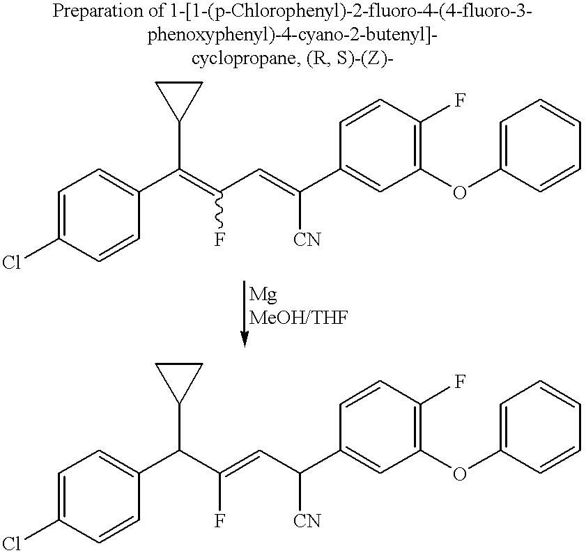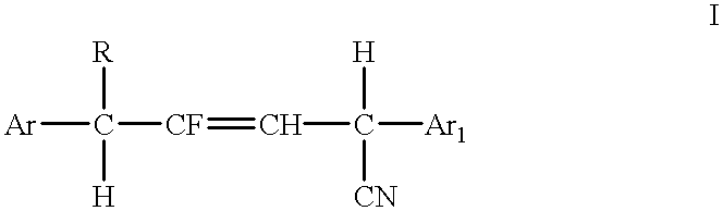 The present invention provides a process for the preparation of pesticidal 1,4-diaryl-2-fluoro-4-cyano-2 -butene compounds having the structural formula I and intermediates useful therefor.