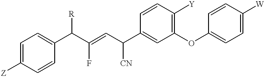(I′) (V′) No. Z R Y W A-1 Cl cyclopropyl H H A-2 Cl CH(CH3)2 F H A-3 Cl CH(CH3)2 H H A-4 OCH2CH3 CH(CH3)2 F H A-5 OCH2CH3 CH(CH3)2 F H A-6 OCH2CH3 cyclopropyl H H A-7 OCH2CH3 CH(CH3)2 H F A-8 Cl CH(CH3)2 H F A-9 F cyclopropyl F H A-10 OCH2CH3 cyclopropyl H H A-11 F cyclopropyl H H EXAMPLE 1