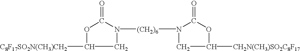 25 FINA 3860 polypropylene + fluorochemical 20 at 1 wt % of the polypropylene 26 FINA 3860 polypropylene 30 24 0.883 26.3 26 0.720 77.8 28 0.587 140. 30 0.480 217 35 0.294 480. 40 0.184 889. 50 0.074 2510. 60 0.027 7200. 24 0.747 (0.088) 0.194 (0.033) 26 0.936 (0.006) 0.214 (0.036) 28 0.952 (0.124) 0.452 (0.008) 30 0.807 (0.239) 0.669 (0.023) 35 1.161 (0.079) 0.742 (0.056) 40 1.169 (0.042) 0.682 (0.064) 50 0.873 (0.053) 0.703 (0.043) 60 0.609 (0.008) 0.580 (0.020)
