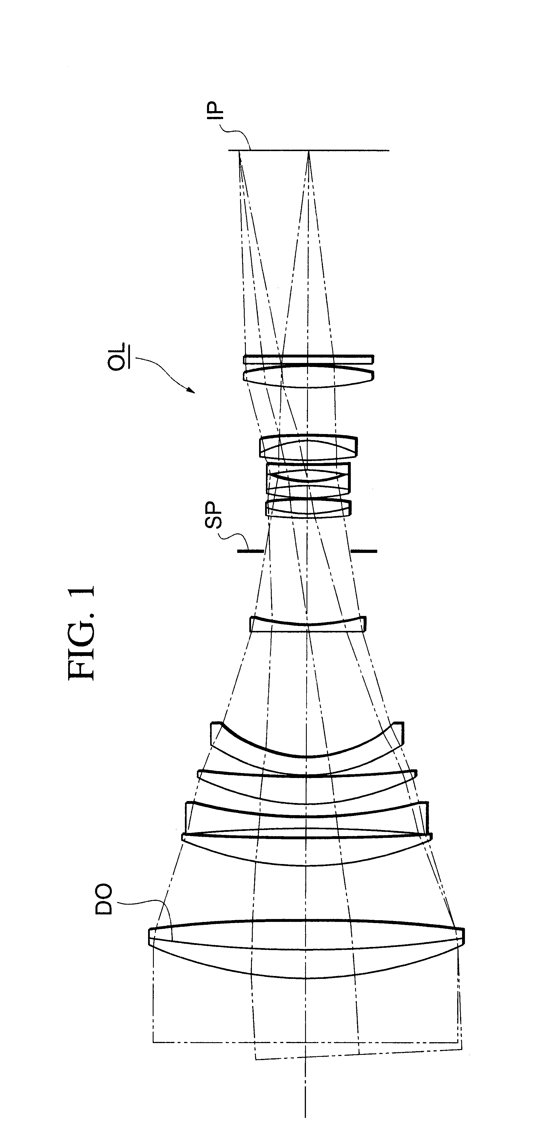 f = 392.00 Fno = 1:4.12 2ω = 6.32° r 1 = 115.683 d 1 = 9.40 n 1 = 1.56384 ν 1 = 60.7 r 2 = 319.640* d 2 = 9.00 n 2 = 1.51633 ν 2 = 64.1 r 3 = −478.031 d 3 = 16.76 r 4 = 96.413 d 4 = 8.60 n 3 = 1.51823 ν 3 = 58.9 r 5 = 472.518 d 5 = 3.11 r 6 = −495.228 d 6 = 3.60 n 4 = 1.74950 ν 4 = 35.3 r 7 = 135.791 d 7 = 4.08 r 8 = 71.132 d 8 = 8.40 n 5 = 1.48749 ν 5 = 70.2 r 9 = 245.218 d 9 = 0.80 r10 = 51.628 d10 = 5.30 n 6 = 1.67270 ν 6 = 32.1 r11 = 40.134 d11 = 39.15 r12 = 1141.040 d12 = 1.80 n 7 = 1.43387 ν 7 = 95.1 r13 = 56.180 d13 = 22.84 r14 = ∞ (Stop) d14 =10.50 r15 = 90.269 d15 = 1.30 n 8 = 1.80518 ν 8 = 25.4 r16 = 34.628 d16 = 4.70 n 9 = 1.48749 ν 9 = 70.2 r17 = −87.040 d17 = 0.50 r18 = 68.906 d18 = 3.85 n10 = 1.76182 ν10 = 26.5 r19 = −59.203 d19 = 1.30 n11 = 1.80400 ν11 = 46.6 r20 = 32.357 d20 = 3.41 r21 = −74.136 d21 = 1.30 n12 = 1.80400 ν12 = 46.6 r22 = 131.344 d22 = 1.53 r23 = 75.659 d23 = 6.20 n13 = 1.63980 ν13 = 34.5 r24 = −31.349 d24 = 1.40 n14 = 1.80400 ν14 = 46.6 r25 = −170.115 d25 = 14.65 r26 = 82.731 d26 = 6.60 n15 = 1.51633 ν15 = 64.1 r27 = −106.118 d27 = 0.72 r28 = ∞ d28 = 2.20 n16 = 1.51633 ν16 = 64.1 r29 = ∞ *: Diffractive Surface C1= ˜4.22716D-05 C2= 4.71244D-10 f = 51.50 Fno = 1:1.46 2ω = 45.57° r 1 = 50.061 d 1 = 4.15 n1 = 1.78000 ν1 = 50.0 r 2 = 243.413 d 2 = 0.10 r 3 = 30.828 d 3 = 3.68 n2 = 1.88500 ν2 = 41.0 r 4 = 45.316 d 4 = 1.98 r 5 = 57.891 d 5 = 3.40 n3 = 1.65070 ν3 = 31.8 r 6 = 20.182 d 6 = 5.87 r 7 = ∞ (Stop) d 7 = 10.63 r 8 = −19.290 d 8 = 3.40 n4 = 1.79528 ν4 = 28.1 r 9 = 131.601 d 9 = 6.77 n5 = 1.79558 ν5 = 48.3 r10 = −32.350* d10 = 0.10 r11 = −106.926 d11 = 5.26 n6 = 1.88430 ν6 = 40.4 r12 = −36.060 d12 = 0.10 r13 = 82.121 d13 = 3.60 n7 = 1.88500 ν7 = 41.0 r14 = 455.723 *: Diffractive Surface C1= −2.52500D-04 C2= 4.01280D-07 C3= −4.53740D-10 f = 24.61 Fno = 1:1.45 2ω = 82.64° r 1 = 62.320 d 1 = 2.80 n 1 = 1.69680 ν 1 = 55.5 r 2 = 31.224 d 2 = 5.77 r 3 = 58.654 d 3 = 2.30 n 2 = 1.69680 ν 2 = 55.5 r 4 = 32.021 d 4 = 6.94 r 5 = 220.248 d 5 = 4.36 n 3 = 1.71300 ν 3 = 53.8 r 6 = −101.757 d 6 = 4.09 r 7 = 72.682 d 7 = 2.96 n 4 = 1.84666 ν 4 = 23.8 r 8 = 340.356 d 8 = 1.70 n 5 = 1.49700 ν 5 = 81.6 r 9 = 23.248 d 9 = 12.21 r10 = 30.622 d10 = 6.82 n 6 = 1.80400 ν 6 = 46.6 r11 = −58.996 d11 = 0.15 r12 = −1174.273 d12 = 1.48 n 7 = 1.72825 ν 7 = 28.5 r13 = 38.385 d13 = 4.63 r14 = ∞ (Stop) d14 = 7.99 r15 = −16.394 d15 = 4.66 n 8 = 1.84666 ν 8 = 23.9 r16 = −37.366** d16 = 0.15 r17 = −201.177 d17 = 7.04 n 9 = 1.60311 ν 9 = 60.7 r18 = −23.231* d18 = 0.15 r19 = −86.014 d19 = 5.55 n10 = 1.77250 ν10 = 49.6 r20 = −29.191 *: Diffractive Surface **: Aspheric Surface A = 0.00000D+00 B = 2.10265D-05 C = 1.79508D-08 D = −1.59961D-11 E = −1.82408D-13 F = 2.10232D-16 C1= −4.42491D-04 C2= 3.53506D-07 C3= 3.46931D-11 C4= 2.27434D-12 C5= −2.17625D-15 C6= 9.09469D-18 C7= 2.48396D-20 C8= 9.80318D-23 C9= −1.98660D-24 C10= 8.60373D-27 Condition Numerical Example No. Factor 1 2 3 (1) |D/R| 0.026 1.172 2.801 (2) C1· P 6.29847D-09 −6.20948D-06 −1.14875D-05