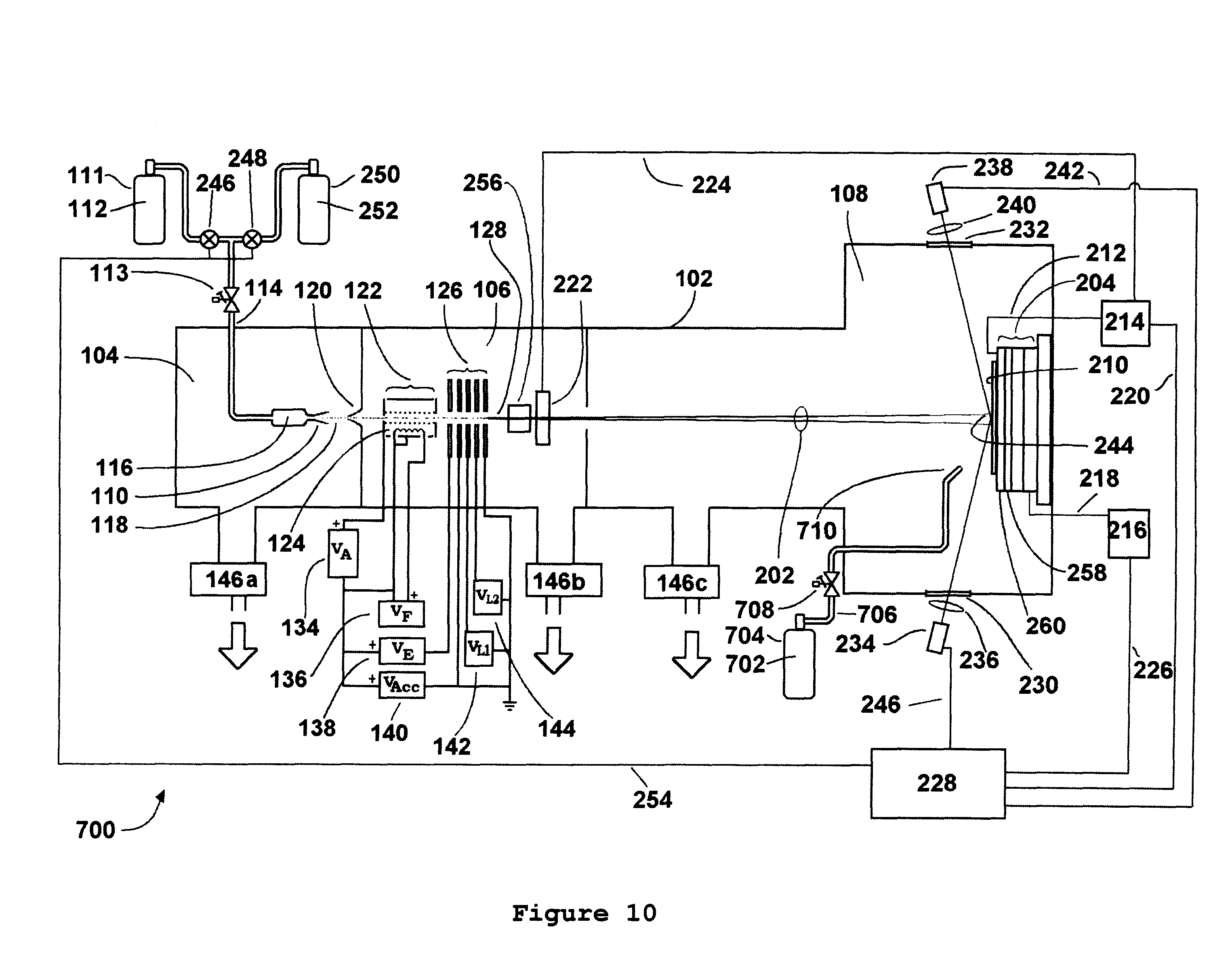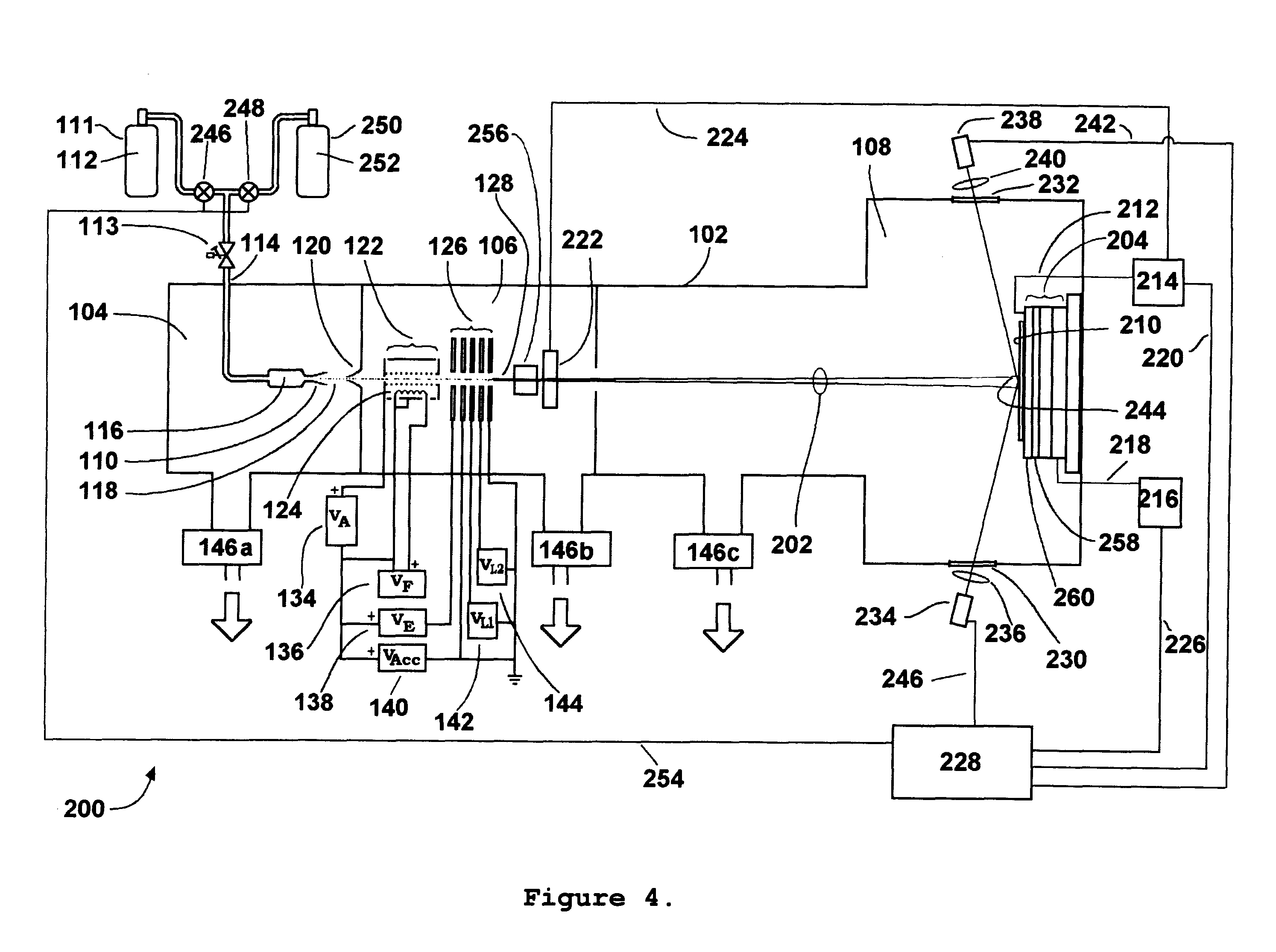 This application claims priority of the U.S. Provisional Application Ser. No. 60/217,196 filed Jul. 10, 2000 entitled SYSTEM AND METHOD FOR IMPROVING THIN FILMS BY GAS CLUSTER ION BEAM PROCESSING. This invention was made with U.S. Government support from the AFRL/MLKN USAF/AFMC Air Force Research Laboratory under Contract No. F33615-99-C-5411. The U.S. Government has certain rights in the invention. This invention relates generally to the smoothing of thin films, and, more particularly to the smoothing and uniformity enhancement of thin films on insulators by a gas cluster ion beam (GCIB) apparatus. Growth in integration and power consumption levels of integrated circuits (ICs) and the increase in space and portable electronics applications have stimulated significant efforts in the area of radiation hardened, low power electronics (LPE). Special technology and circuit architecture is under investigation for implementation of radiation hard LPE which operate at low supply voltages and consume low power levels without sacrificing performance. Silicon-On-Insulator (SOI) substrates have advantages which make it attractive for applications that require tolerance to radiation effects. In addition, use of SOI is a primary approach to simultaneously achieve the increased circuit density, reduced power consumption, and improved performance of SRAM's in a cost effective and timely manner. Recent advances in SOI applications include radiation-hardened memories for space applications, Bi-CMOS, low power electronics, analog and digital circuitry, smart power devices, as well as high-temperature (>350° C.) and cryogenic applications. Such applications for SOI material have made use of the substrates widespread. There are many SOI substrate (wafer) types available on the market today. For example, the SOI wafer may be fabricated by several methods—separation-by-implanted-oxygen (SIMOX) SOI, various forms of bond-and-etch-back SOI (BE-SOI), hydrogen-implant-and-release silicon (also known as SMART CUT® SOI, “SMART CUT” is a registered trademark of S.O.I. TEC Silicon On Insulator Technologies S.A.), or by plasma implanting oxygen into silicon, etc. SIMOX and BE-SOI are the most widely used SOI materials, but Smart Cut® SOI is becoming more widespread. Great simplification and consequent reduction in semiconductor fabrication costs would be achieved during fabrication of many products if the starting SOI substrate wafers were consistent from wafer to wafer and/or batch to batch. A significant problem encountered in the commercial application of SOI substrates is the inconsistency of the gate oxide integrity (GOI) and the buried oxide integrity of CMOS circuitry. For large-scale integration, consistency in gate oxide characteristics and intrinsic break down voltages of the buried oxide are required for device and circuit operating consistency. The general threshold-voltage uniformity of SOI devices would be greatly assisted if the starting ultra-thin silicon layer could be uniform to less than 25 angstroms (Å) across an SOI wafer. The inconsistency of the gate-oxide integrity has been attributed in large part to the starting SOI-wafer surface roughness. General threshold-voltage uniformity of transistor devices fabricated from SOI wafers is dependent upon the thickness uniformity of the overlying (top) silicon layer (thin film). Thus, a major issue that must be addressed is the surface quality of the top, ultra-thin silicon layer on SOI substrates or other types of thin film substrates. Surface roughness (spatially varying topography) is typically measured by analysis of measurements formed with an atomic force microscope (AFM), imaging optical interferometer, or a transmission-electron microscope (TEM). The thickness uniformity of the silicon film can be observed by the unaided eye as color fringes for any non-uniformity greater than about 25 Å. For greater precision, an imaging optical interferometer, a mapping spectroscopic ellipsometer can be employed. While bulk silicon wafers, such as utilized in standard IC manufacturing, have surface roughness of typically less than 1 Å, SOI wafers are known to have a minimum surface roughness of about 3 Å to 50 Å, across the wafer in the final state of SOI fabrication. This non-uniformity is consistent within a lot or “batch” of wafers with the same lot number, i.e., the same manufacturing run. In the case of SIMOX, the surface roughness and non-uniformity is caused by the oxygen-ion implantation process, whereby a mono-energetic beam of oxygen atoms and molecules is implanted ˜200 nm below the original surface of a silicon wafer, as well as the required subsequent thermal anneal to heal defects deep in the thin film. In the case of BE-SOI, the surface roughness and non-uniformity are caused by an etch-back process that inherently leaves substantial non-uniformity of the silicon layer unless extraordinary steps are taken. In the case of the SMART CUT® SOI, a cleavage process (following the hydrogen implant) leaves many atomic steps on the silicon surface. Early indications of the plasma implantation process of SOI substrate fabrication reveal sub-surface damage and non-uniformity of the silicon and insulating layers due to the random ionization charges of the penetrating oxygen ions. Silicon-on-insulator material poses unique problems for smoothing of the silicon surface. The method applied to smooth or provide uniform silicon layers must not contribute significant quantities of metal contamination, (typically required to be less than 9×1010 atoms/cm2 total metal content), and must remove a minimal of surface silicon so as to avoid removing the thin silicon layer. Traditional bulk smoothing methods, while satisfactory for silicon films on the order of microns thick, cannot be applied to SOI films having silicon as thin as 10 to 20 nm, such as will likely be required for advanced devices. Historically, plasma polishing has been used to reduce 