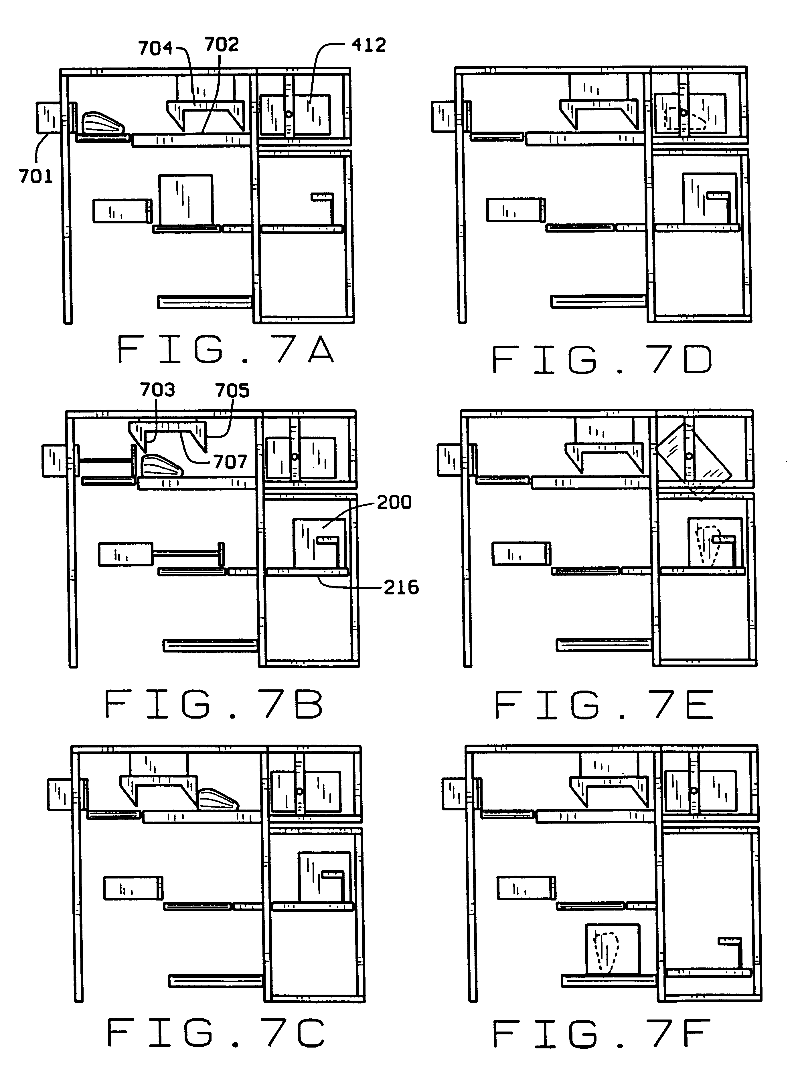 This application is a divisional application of U.S. application Ser. No. 09/452,954 filed Dec. 12, 1999 now abandoned entitled Item Handler For Sorting and Packing. 1. Field of the Invention This invention relates to automatic item handling systems and methods for the sorting of a product item and the packing of said product item into a receptacle where packing of the item is performed by spatially manipulating the item to an optimal orientation prior to depositing it into a storage or packing receptacle for the most efficient usage of the receptacles storage volume. More specifically, the invention relates to such an automatic item handling apparatus and methods where the item is a type of now conforming material, such as a subprimal cut of meat, to be packed in a cardboard packing box. 2. Related Art There is a need for an automated item handling system for meat packing facilities, or other like facilities, where the item handler can automatically pack items in packing receptacles while filling the volume of the receptacle with product items in a pre-defined orientation and without the need for manual interaction. Item handling systems generally perform the function of capturing an item in the manufacturing flow and operating on it and manipulating it in such a way as to prepare it or spatially position it for the next series of operations in the manufacturing flow. In the case of an item handling system that has the specific function of packing an item or multiple items into a storage receptacle or a simple packing box, there are several key objectives that must be achieved in order to develop an effective item handling system. It is desired that an item handling system for the purpose of packing will have the flexibility to handle various types of items and quantity of items to be packed. The types of items can vary in size, shape, and weight and the quantity to be packed can vary for a given receptacle. It is also desired that an item handling system has the ability to automatically deposit an item into a receptacle or box with a specific positional orientation which is based on the size and shape of the item, and each item has its own orientation such that the interior storage volume of the receptacle or box is utilized most efficiently and guarantees quality of product. Another desire is that the item handling system will pack same-type items into receptacles of various volumes. A typical automated item handler/packing device that is utilized in a factory environment is integral with a network of conveyors that transport items to and from the sorting and packing stations. In the art area of package handling or item handling, a conveyor has been traditionally employed to forward a package from one work-station to another in order to accomplish the various handling functions. In many factory operations the work stations for placing an item in a storage receptacle or a shipping container are totally manual operations. In other factory operations the work-stations are somewhat more automated but still have limitations that negatively effect the efficiency and the cost of the packaging function. For example, U.S. Pat. No. 4,798,278 issued Jan. 17, 1989 to Gornacchia addresses a conveyor system that has the ability to turn packages upside down in a very gentle fashion. The conveyor device is interposed in line with a separate feed conveyor and discharge conveyor. The device receives a package from a feed conveyor and then turns the package upside down and discharges the package onto a subsequent discharge conveyor. The conveyor includes a rotateable turning element which receives at least one package and an intermittent rotational mechanism which tumbles the turning element in rotation. This mechanism allows the package to be turned upside down without actually gripping the package with a gripping mechanism. This patent is similar to the subject invention in that the apparatus of this patent allows an item to be positionally manipulated in order to automatically facilitate the handling of said item. However, the apparatus of this patent does not address the needs as satisfied by the subject invention. There is a need in the art area for an automated apparatus that has the ability to positionally/spacially manipulate an item and discharge the item to a specific location whether within a receiving receptacle or other container. Also, for greater flexibility and efficient use of the receptacles volume, the system should have the ability to position a receptacle unit, specifically a packing box, at the proper location such that the item to be packaged can more readily be placed in said receptacle at a specific location. The conveyor belt in the case of the referenced patent is actually utilized to manipulate the position of the item by flipping it upside down. However, the limited ability to flip an item upside down is a spatial manipulation that in many cases will not be adequate to position an item to be packed in a receptacle in the most efficient manner. Another example of item handling is shown in U.S. Pat. No. 4,699,564 issued Oct. 13, 1987 to Cetrangolo which addresses an apparatus that has the ability to rotate a heavy object 180°. The device comprises a set of spaced parallel circular conveyor tracks that have an ability to rotate 180° on roller bearings. The parallel circular roller conveyor tracks line the top and bottom faces of a slot defined by said tracks. When the parallel tracks are rotated 180° end-over-end, any heavy object currently resting on the lower track will be transferred to the upper track, which will become the bottom track once the 180° rotation is complete. The center of gravity of the loaded turning apparatus coincides with the center of rotation, thereby requiring very little turning power. Traverse rollers permit entry and exit of a heavy object at opposite ends of the slot defined by the roller tracks. Once the 180° rotation is complete, any object t