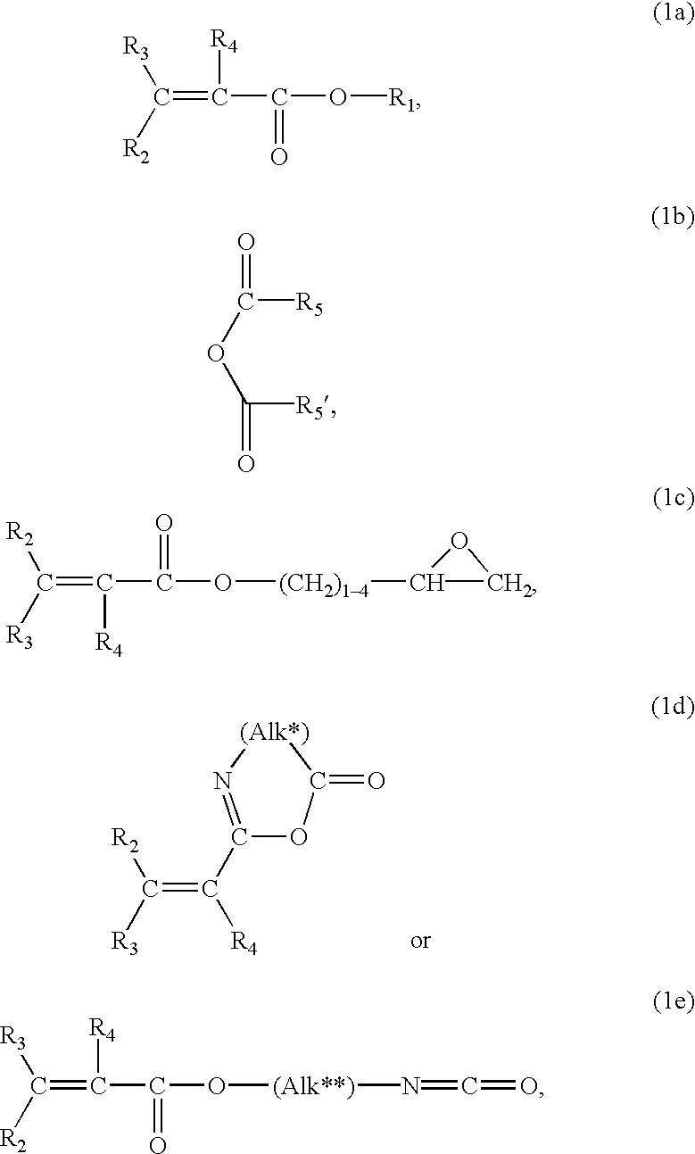 A suitable further compound comprising an ethylenically unsaturated double bond in step (c) independently may be one of the compounds comprising an ethylenically unsaturated group mentioned in step (a) where the above given meanings and preferences apply. A particularly preferred compound having an ethylenically unsaturated double bond in step (c) is IEM.