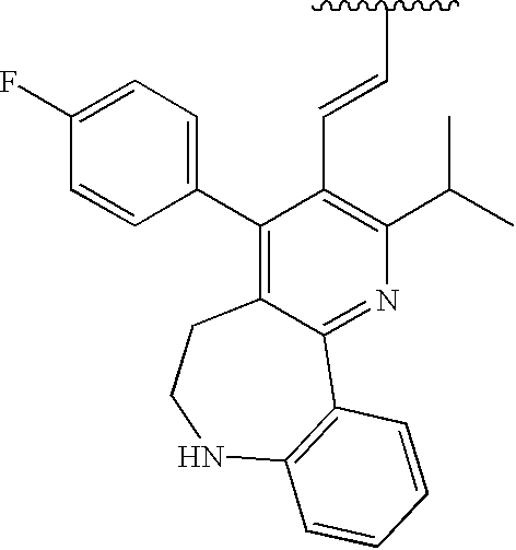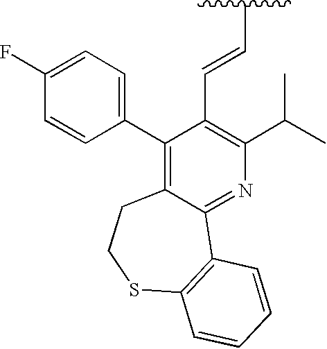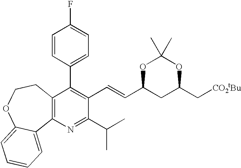 An N2purged 250 mL 3-neck rb flask is charged with Example 27 pyridine derivative (18) (5 g, 13.9 mmol), Example 28 sulfone (16) (6.9 g, 15.3 mmol) and THF (75 mL). The stirred solution is cooled to −74 to −78° C. Slowly a 1M solution of LiHMDS (lithium bis(trimethylsilyl)amide) (15.3 mL, 15.3 mmol) in THF is charged at a rate such that the temperture remained between −70 and −78° C. After addition of the base is complete, the reaciton mixture is warmed to ˜−45° C. over ˜15 minutes. The stirred reaction is quenched at −70° C. by slow addition of sat. aq. NH4Cl (7.5 mL) solution and water (38 mL). The dry ice bath is removed and the solution is warmed to 20-25° C. from the reaction mixture. Ethyl acetate (50 mL) is added, the mixture agitated, and layers separated. The organic layer is washed with saturated sodium bicarbonate solution (2×38 mL) followed by brine (25 mL) and concentrated to a volume of 50 mL. Acetonitrile (50 mL) is added and the solution is concentrated to a volume of 50 mL. This step is repeated. Water (˜5-6 mL) is slowly added to the hot solution (60-70° C.) until the cloud point is reached. The thin slurry is held for 30 min at high temperature and then slowly cooled over several hours with stirring. The product is filtered, cake is washed with a 5:1 mixture of acetonitrile and water, and dried to afford the title compound.