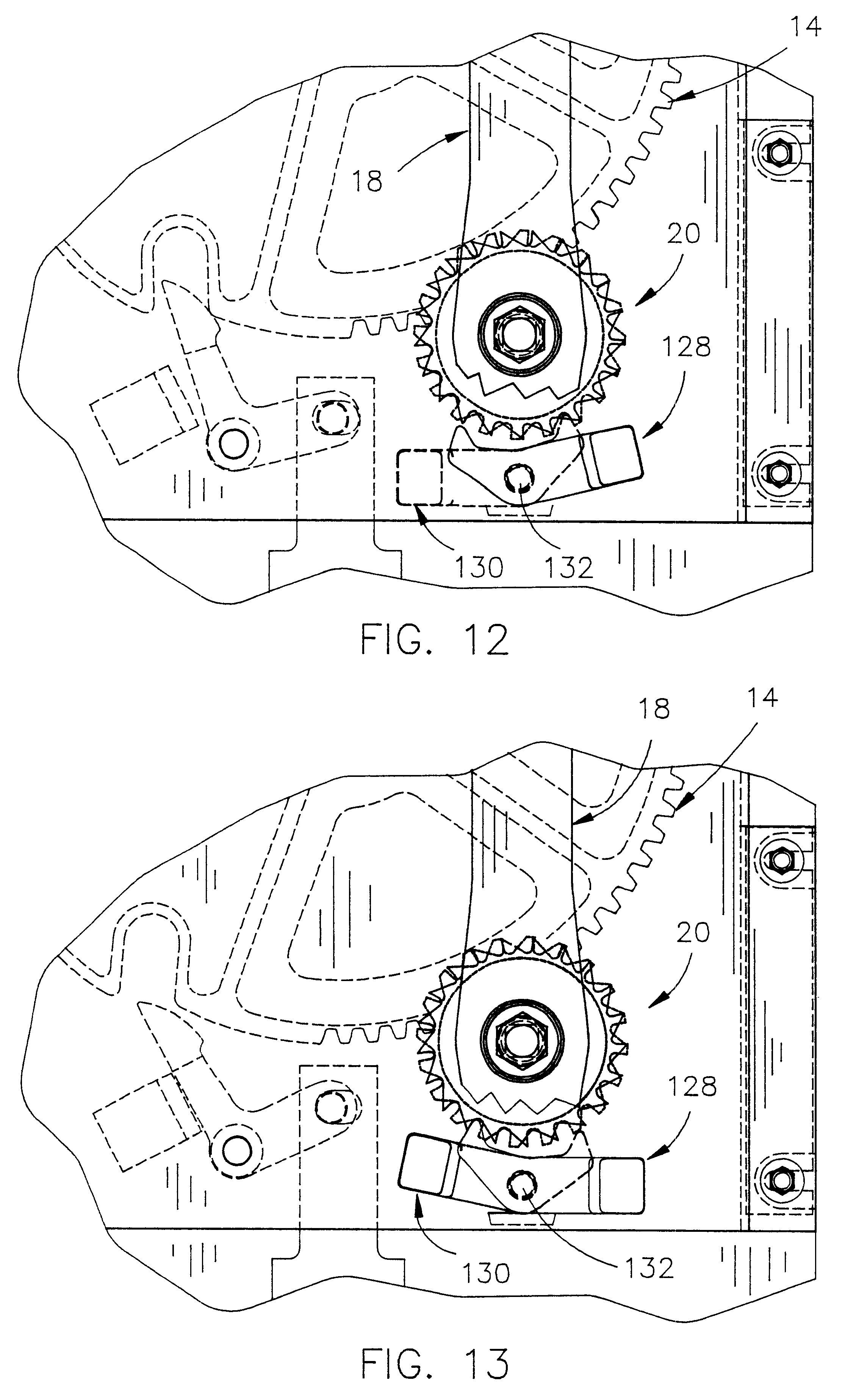 A module is provided for use with a drive mechanism particularly suited for plug-type railcar doors to prevent "overspinning" and "drifting." The mechanism disclosed is a double brake-type mechanism and includes a first rotatably mounted member. The first member is arranged to transmit force in either direction of rotation and is connected with an input drive mechanism. The drive mechanism includes a rotatable pinion gear carried on a rotatable input shaft extending generally parallel to the axis of rotation of the first member. The pinion gear is connected with the shaft by means which cause it to move longitudinally of the shaft to a first or a second spaced point depending upon the direction the shaft is rotated. At each of the points, there are ratchets which are freely rotatable relative to the shaft except when the pinion gear moves to engage them at their respective points. When engaged, the ratchets permit movement of the shaft only in one direction. The arrangement is such that should the driven mechanism being moving the member at a rate greater than the pinion, the pinion will move longitudinally of the shaft to engage the other ratchet wheel and prevent movement of the shaft in response to force input from the driven mechanism. One of the ratchets has an even number of teeth and one of the ratchets has an odd number of teeth. The profiles of the ratchet teeth on the ratchets are different.