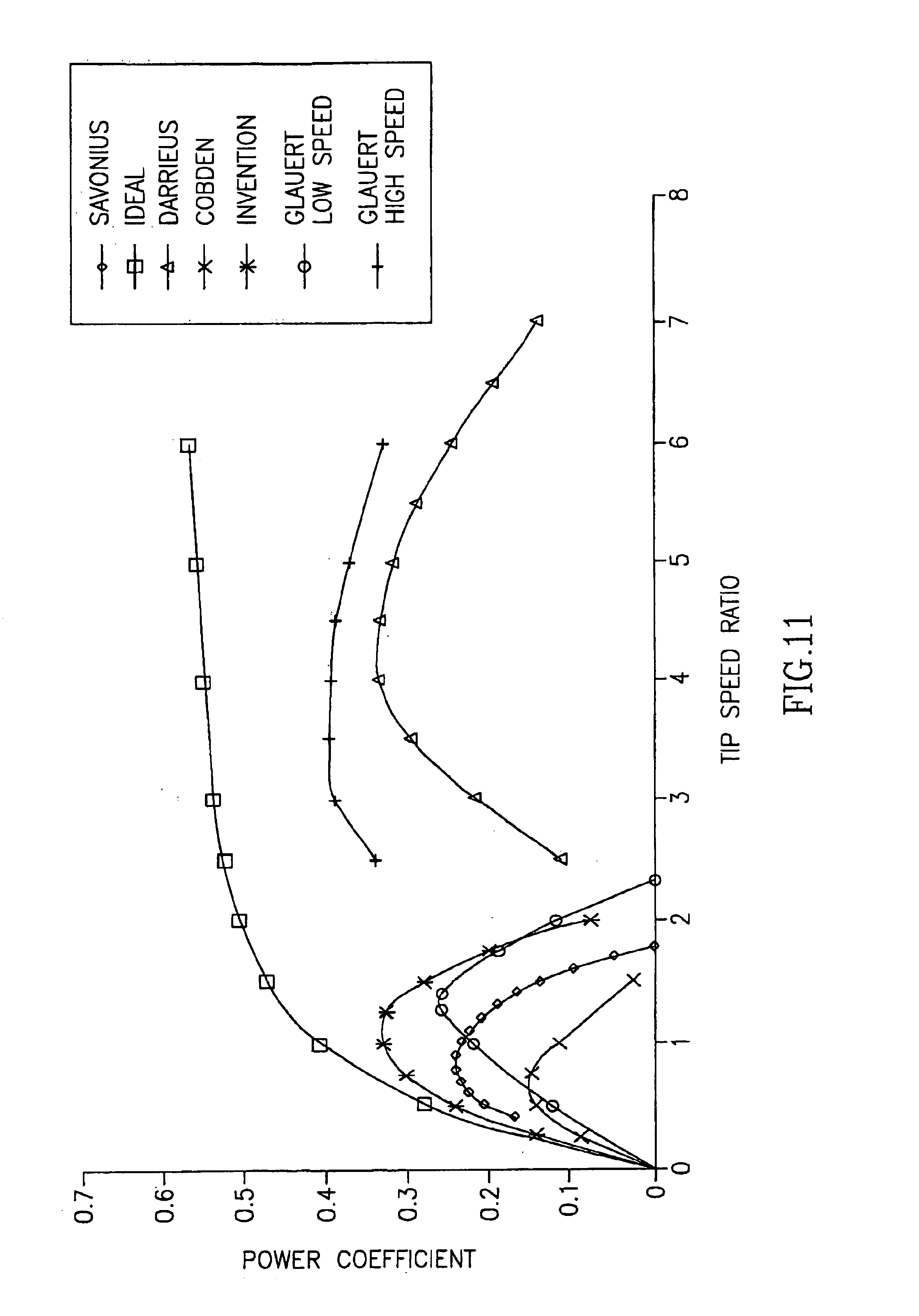 1. A fluid turbine for extraction of power from a moving fluid, including: a rotor mounted to a support structure for rotation about a horizontal axis, said rotor having a plurality of blades extending and angled forwardly and outwardly from a hub and sweeping a volume in the shape of an outwardly extending conical surface as the rotor rotates, the hub being shared to deflect fluid flow through the blades; and a ring fairing secured to said blades at outer ends thereof and rotatable with said blades about axis, said ring fairing being concentric with said axis of rotation, wherein said ring fairing has at leant one peripheral location having thereon a radial cross-section shaped to develop in operation of said turbine a circulatory flow about said cross section in such a direction as to increase the velocity of fluid flow between said ring fairing and said hub. 2. A fluid turbine according to 3. A fluid turbine according to 4. A fluid turbine according to 5. A fluid turbine according to 6. A fluid turbine according to 7. A fluid turbine according to 8. A fluid turbine according to 9. A fluid turbine according to 10. A fluid turbine according to 11. A fluid turbine according to 12. A fluid turbine according to 13. A fluid turbine according to 14. A fluid turbine according to 15. A fluid turbine according to 16. A fluid turbine according to 17. A fluid turbine according to 18. A fluid turbine according to