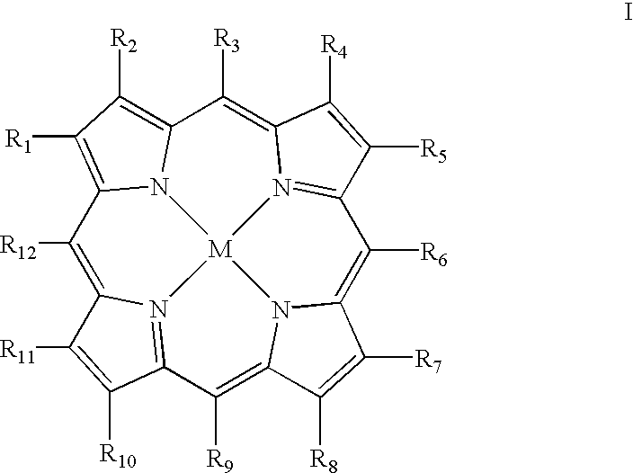 36. The method of any of claims 1, 2, and 3 wherein said metallated porphyrin is formulated by encapsulation in carriers selected from water, deionized water, phosphate buffered saline, aqueous ethanol, glucose, amino acids, vegetable oils, liposomes, immunoliposomes, cyclodextrans, microspheres, nanoparticles, lipoproteins, micellular systems or combinations thereof.