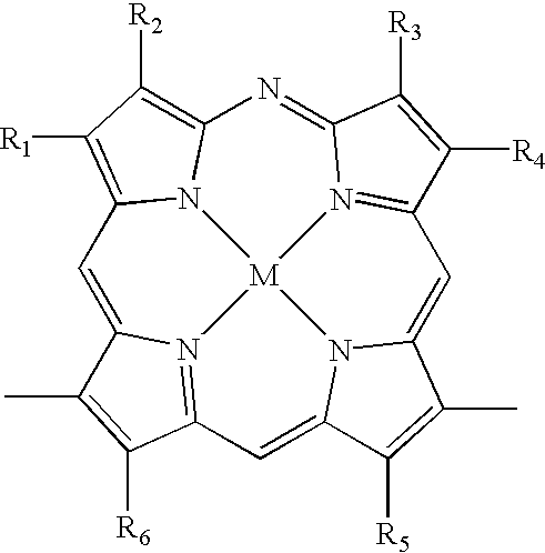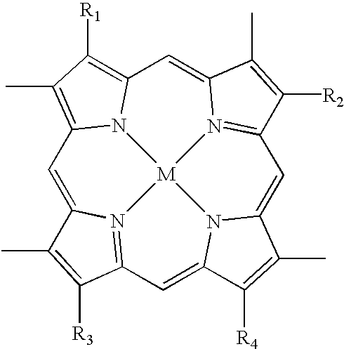 29. The method of claim 3 wherein said administration of porphyrin or azaporphyrin is prior to, concomitant with, or subsequent to, administration of adjunctive interventions, diagnostics or therapies.