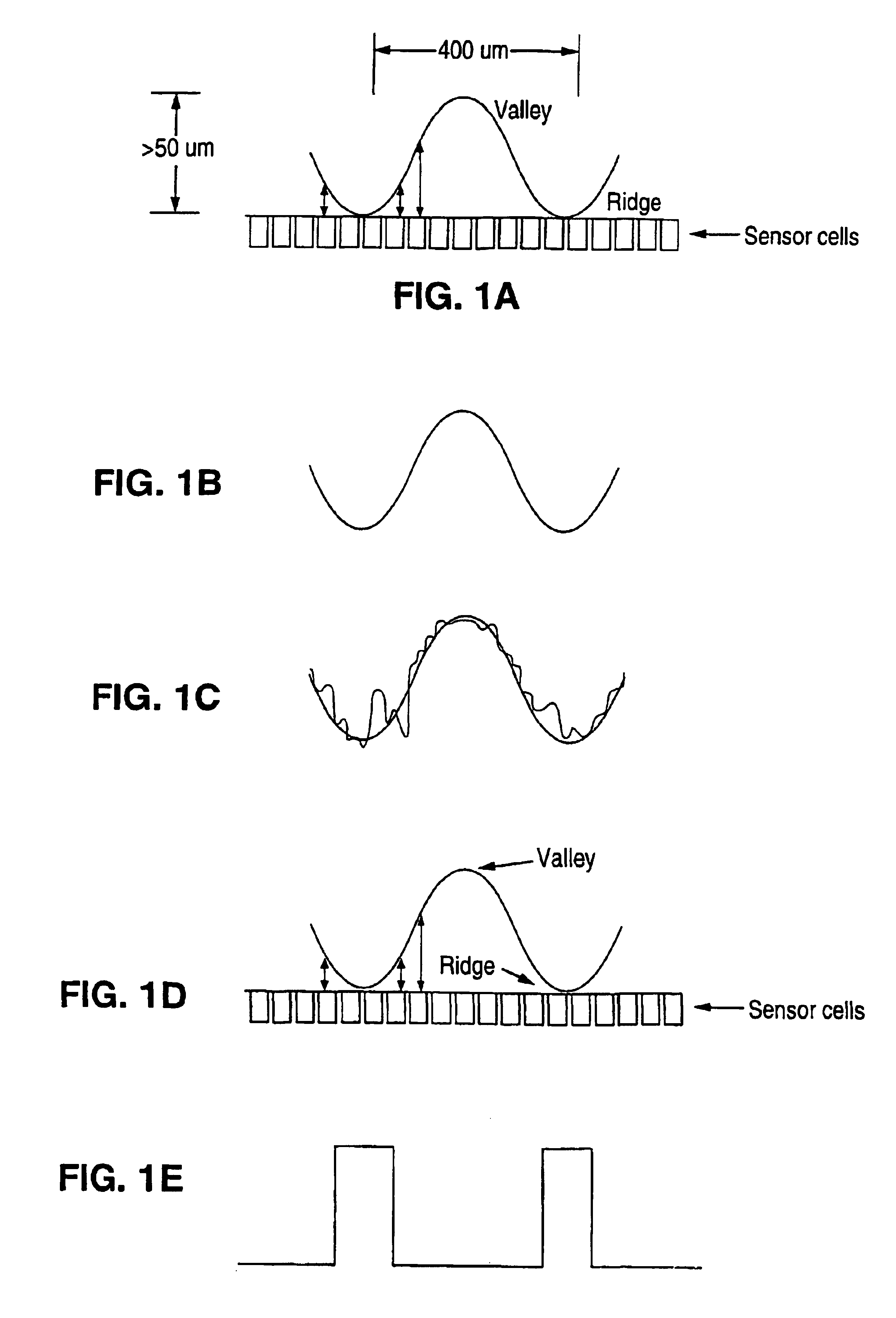 The present invention provides a pressure based fingerprint image capture device that includes an array of cantilevers or simply suspended bridges, with each pressure based sensor having a cantilever or a simply suspended bridge in contact with a conducting electrode that deforms under the load applied by the localized ridge on the fingerprint, and which provides contact to another conducting electrode thereby closing the electrical circuit, a switch in the simplest form, and providing a "pulse" response from the sensor. In the quiescent state, each cantilever or simply suspended bridge structure contains an upper electrode which forms one part of the switch, while another conducting layer, the lower electrode at the bottom of the well of the individual sensor, forms the other part of the switch.
