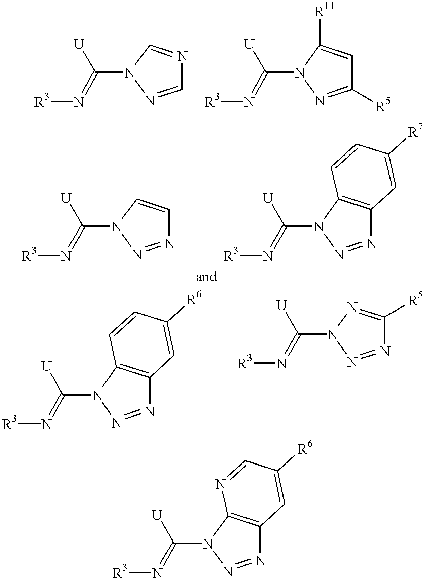 wherein R3, R5, R6, R7, R11and U are defined as above.
