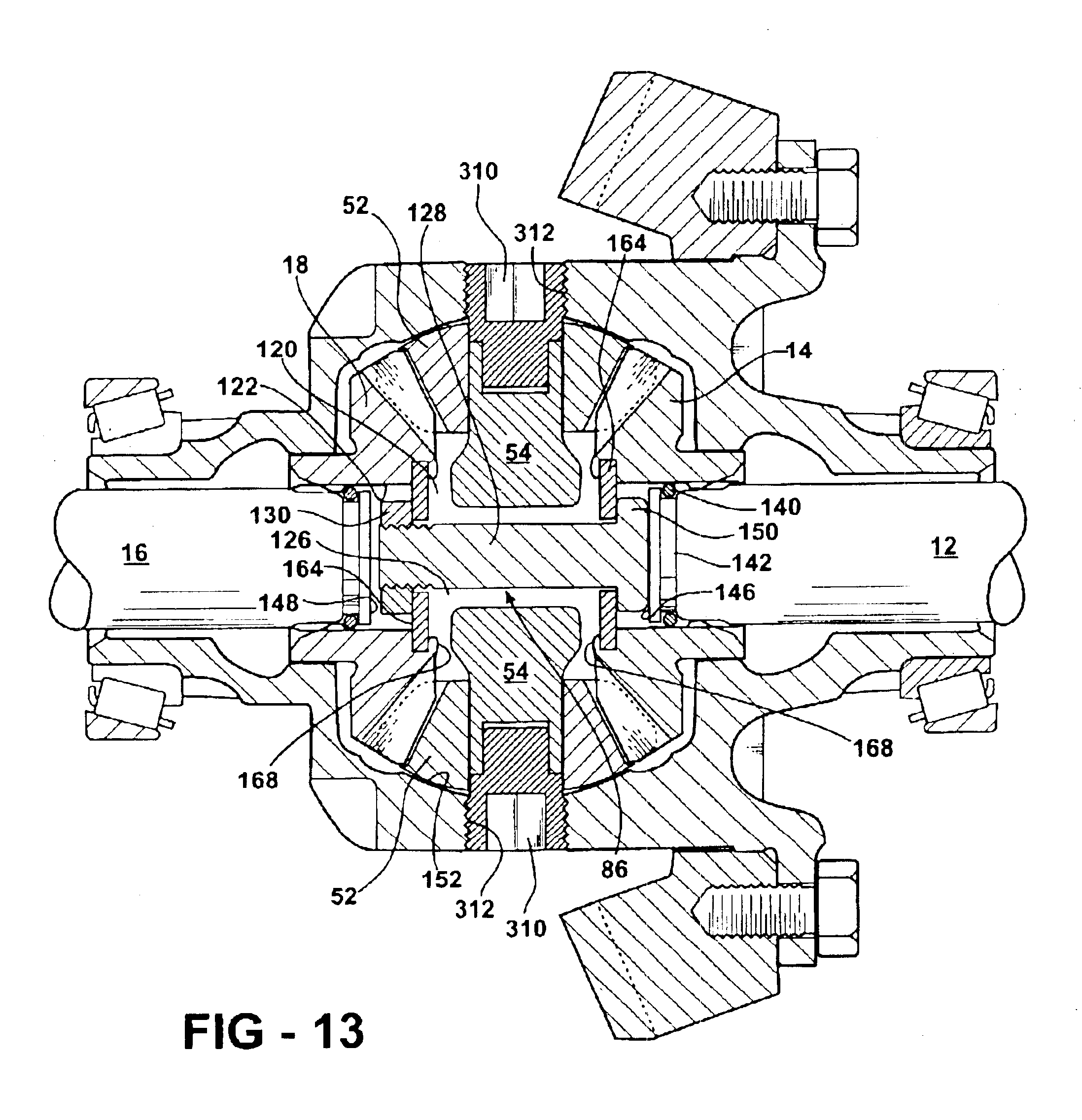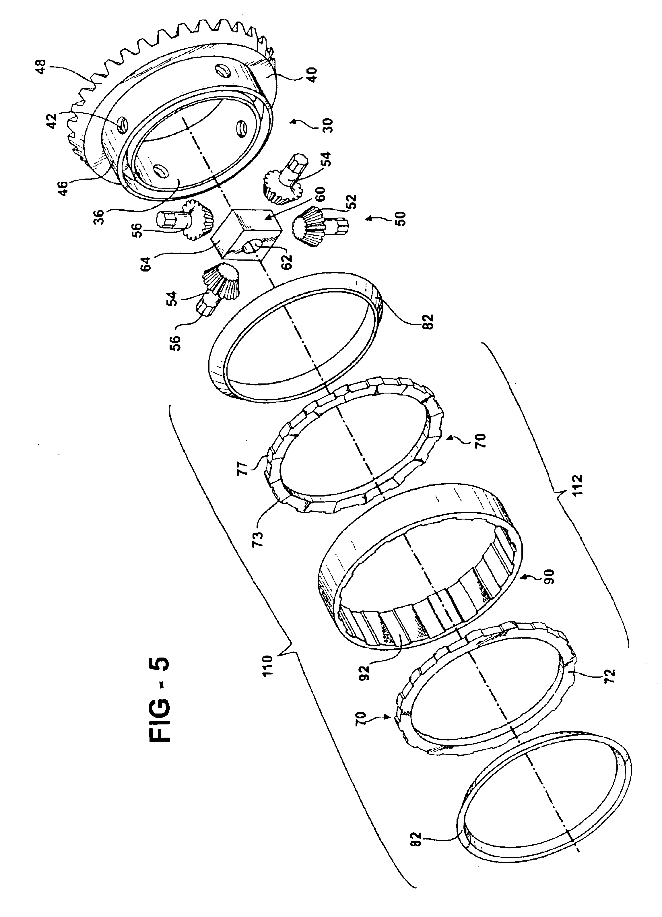 a ring gear rotatable about an axis; a pinion coupled to rotate with and relative to said ring gear, said pinion having a gear; a first side gear and a second side gear, said side gears meshed with said pinion gear such that said pinion rotates when said first side gear rotates relative said second side gear; a rotational slip coupling assembly coaxially arranged with said ring sear and operatively coupled to said pinion, said rotational slip coupling inhibiting rotation of said pinions. 9. The limited slip differential of 10. The limited slip differential of 11. The limited slip differential of 12. The limited slip differential of 13. The limited slip differential of 14. The limited slip differential of 15. The limited slip differential of 16. A limited slip differential comprising: