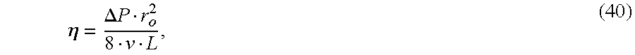5. The method of claim 4, wherein the estimating is according to one selected from η=ΔP·ro28·v·Landη=K·ΔPv,