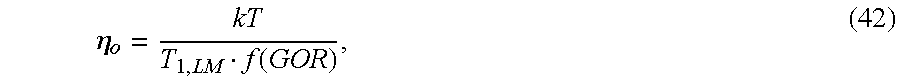 15. The method of claim 14, wherein the estimating is according to: ηo=kTT1,LM·f(GOR)