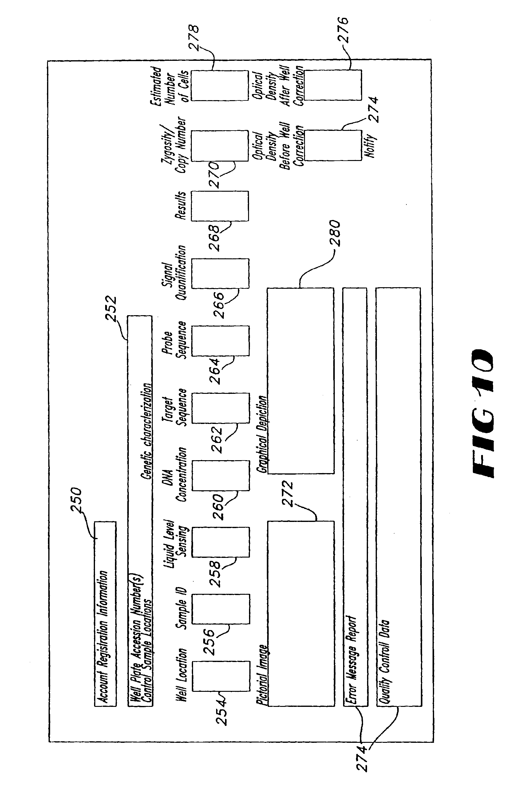 This binding sequence specifically couples to the capture arm of the reverse transcriptase sequence for the Cyanine 3 (Cy3) dendrimer. The remote user 1 is presented with the Sample Identification and Designation screen. The screen presents is an image of the source well plate 2 in the proper orientation as shown in FIG. 6. This pictorial representation aids the remote user 1 in the process of specifically designating each sample into its correct source well plate 2 location. Each of the remote user's 1 samples are correlated, recorded and tracked to a specific well of the source plate. The user identifies the accession number 3 from the barcode of the Source plate. The remote user 1 loads the source well plate 2 with the proper samples into the correct locations as designated in The package 15 is received by the screening laboratory 20 and the source well plate(s) 2 are removed and loaded into the work station 14. While all samples are being individual tracked the samples have their genomic DNA extracted and optimized in an automated fashion. The quantity of DNA is recorded. The DNA is printed onto a substrate and hybridized with reference probes: