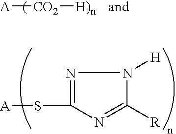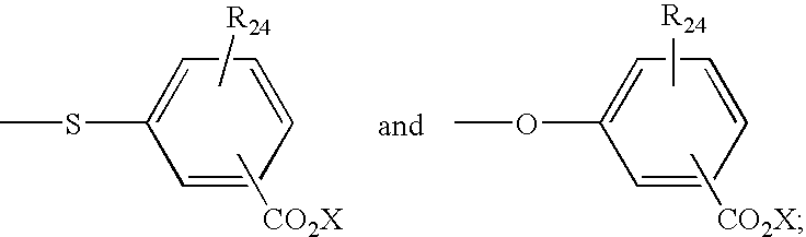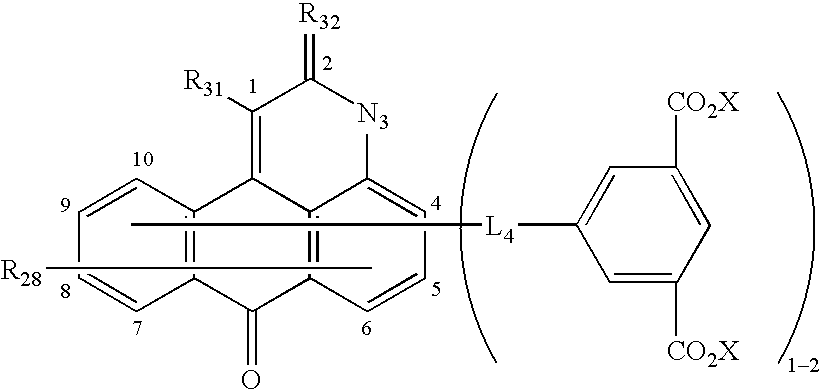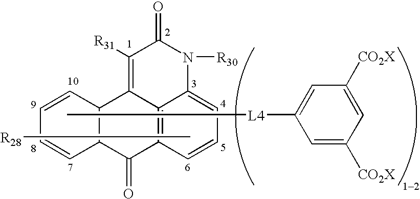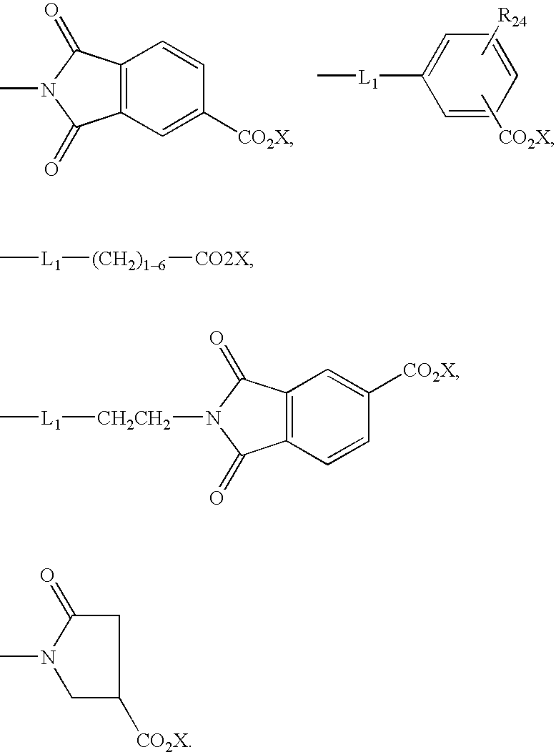 wherein L7is selected from —S—, —O— and —NH—, with the provision that one to four —CO2X groups be present.