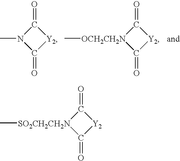 wherein Y2is selected from 1,2-phenylene; 1,2-phenylene substituted with C1–C6alkyl, C1–C6-alkoxy, halogen, CO2C1–C6-alkyl or nitro; C2–C4alkylene; —OCH2—; —SCH2—; —CH2OCH2—; —CH2SCH2—; —NHCH2—; —NHCH2CH2—N(C1–C6-alkyl)CH2—; —N(C1–C6-alkyl)CH2CH2; —NHC(aryl)2, and wherein R16and R17may be combined with themselves or another element to which they are attached to form a radical Z having the formula:
