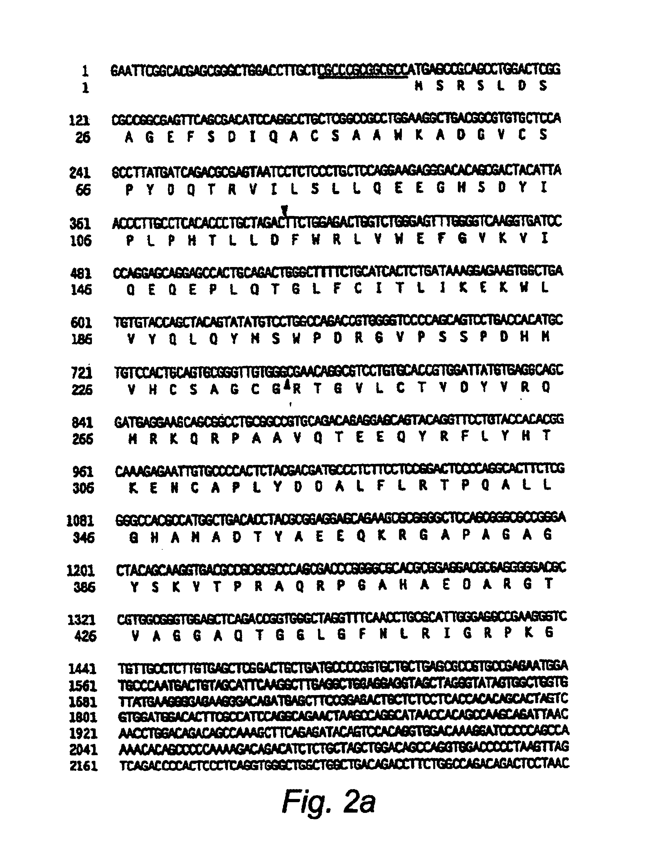 This application claims priority to (1) Aoki, et al., PROTEIN TYROSINE PHOSPHATASE PTP20 AND RELATED PRODUCTS AND METHODS, U.S. patent application Ser. No.60/019,629, filed Jun. 17, 1996; (2) Kim, et al., PROTEIN BDP1, U.S. patent application No. 60/023,485, filed Aug. 9, 1996; (3) Wang, et al., PROTEIN PCP-2, U.S. patent application Ser. No. 60/030,860, filed Nov. 13, 1996; (4) Naylor, et al., CLK PROTEIN KINASES AND RELATED PRODUCTS AND METHODS, U.S. patent application Ser. No. 60/034,286, filed Dec. 19, 1996; and, (5) Ullrich, et al., SIRP PROTEINS AND USES THEREOF, U.S. patent application Ser. No. 60/030,964, filed Nov. 15, 1996; all of which are hereby incorporated herein by reference in their entirety, including any drawings. The present invention relates generally to newly identified proteins involved in cellular signal transduction including protein tyrosine phosphatases, protein serine/threonine kinases, downstream signaling molecules and related products and methods. The novel proteins are called PTP20, BDP1, PCP-2, CLK, and SIRP. The following description of the background of the invention is provided to aid in understanding the invention, but is not admitted to describe or constitute prior art to the invention. Cellular signal transduction is a fundamental mechanism whereby external stimuli that regulate diverse cellular processes are relayed to the interior of cells. One of the key biochemical mechanisms of signal transduction involves the reversible phosphorylation of proteins, which enables regulation of the activity of mature proteins by altering their structure and function. Enzymes that mediate phosphorylation of cellular effectors fall into two classes. While protein phosphatases hydrolyze phosphate moieties from phosphoryl protein substrates, protein kinases transfer a phosphate moiety from adenosine triphosphate to protein substrates. The converse functions of protein kinases and protein phosphatases balance and regulate the flow of signals in signal transduction processes. Kinases largely fall into two groups, those specific for phosphorylating serines and threonines (STKs), and those specific for phosphorylating tyrosines (TKs). The protein phosphatases can also be classified as being specific for either serine/threonine (STPs) or tyrosine (PTPs). The known enzymes, both kinase and phosphatases, can be divided into two groups—receptor and non-receptor type proteins. Most receptor-type protein tyrosine phosphatases (RTPs) contain two conserved catalytic tyrosine phosphatase domains each of which encompasses a segment of 240 amino acid residues (Saito et al, Cell Growth and Diff., 2:59, 1991). The RPTPs can be subclassified further based upon the amino acid sequence diversity of their extracellular domains (Saito, et al., supra, Krueger, et al., PNAS 89:7417, 1992). Alignment of primary amino acid sequences of known phosphatases and kinases shows that their catalytic domains share common amino acid sequences with other enzymes in their respective classes. This observation has facilitated efforts of cloning protein phosphatases from multiple organisms and tissues. Probing cDNA libraries with polynucleotides complementary to cDNA encoding protein phosphatase consensus sequences has identified cDNAs resembling protein phosphatase or kinase sequences via the polymerase chain reaction (PCR). Some polypeptide molecules encoded by these cDNAs have enzymatic activity. Tyrosine phosphatases can down-regulate the catalytic activity of protein kinases involved in cell proliferation and are therefore thought to be possible candidate anti-cancer proteins. In addition to their role in cellular proliferation, protein phosphatases are thought to be involved in cellular differentiation processes. Cell differentiation occurs in some cells upon nerve growth factor (NGF) or epidermal growth factor (EGF) stimulation. Cellular differentiation is characterized by rapid membrane ruffling, cell flattening, and increases in cell adhesion. Chao, Cell 68:995-997, 1992. In view of the above, it can be seen that a need exists to identify additional proteins whose inappropriate activity may lead to cancer or other disorders so that pharmaceutical compounds for the treatment of those disorders might also be identified. The present invention relates to a group of novel proteins designated PTP20, PCP-2, BDP1, mCLK2, mCLK3, mCLK4, and SIRP1 and SIRP4 and related polypeptides, nucleic acids encoding such polypeptides, nucleic acid vectors harboring such nucleic acid molecules, cells containing such nucleic acids, antibodies to such polypeptides, assays utilizing such polypeptides, methods of identifying compounds that bind such polypeptides or abrogate their interactions with natural binding partners, and additional methods relating to all of the foregoing. Also disclosed are methods for diagnosing and treating specific abnormal conditions in an organism with such polypeptides related molecules or compounds. The nucleic acid molecules, nucleic acid vectors, recombinant cells, polypeptides, and antibodies may be produced using well known and standard techniques used currently in the art. Each of the new proteins is described briefly below. PTP20 The present invention is based in part upon the isolation and characterization of nucleic acid molecules encoding a novel protein phosphatase designated PTP20. PTP20 regulates growth factor stimulation of cellular differentiation. PTP20 is thought to be involved in cellular differentiation, as its over-expression in rat pheochromocytoma cells (PC12) causes increased rates of differentiation. Various treatments of neural cancers as well as neural damage are thus provided based on the discovery of PTP20 and its role in those disorders. The open reading frame of the full-length PTP20 nucleic acid molecule encodes a protein of 453 amino acids with a predicted molecular weight of approximately 50 kDa. Hydropathy analysis (see Kyte and Doolittle, 1982, J. Mol. Bio. 