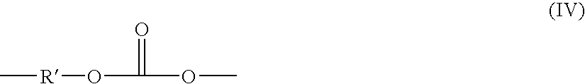 in which greater than or equal to about 60 percent of the total number of R′ groups are aromatic organic radicals and the balance thereof are aliphatic or alicyclic radicals. Preferably, R′ is an aromatic organic radical and, more preferably, a radical of the formula (V):