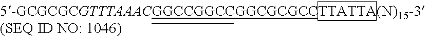 (SEQ ID NO: 1052) 5′-CCGCCGCTCGAGGGGTGTGTTTCGTCGA(N)18-3′ (SEQ ID NO: 1053) 5′-AGTCCCATCGATGAGCAACCTCACTCTTGTGTGCATC(N)18-3′ Example 6