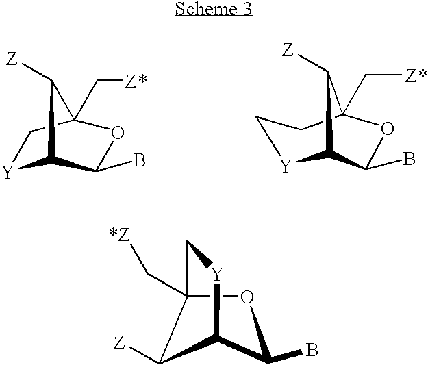 To deal with these and other problems, much effort has been invested in creating novel analogues with improved properties. As depicted in the scheme 1 below, these include wholly artificial analogues such as PNA and Morpholino and more conventional DNA analogues such as boranosphosphates, N3′-P5′ phosphoroamidates and several 2′ modified analogues, such as 2′-F, 2′-O-Me, 2′-O-methoxyethyl (MOE) and 2′-O-(3-aminopropyl) (AP). More recently hexitol nucleic acid (HNA), 2′-F-arabino nucleic acid (2′-F-ANA) and D-cyclohexenyl nucleoside (CeNA) have been introduced.