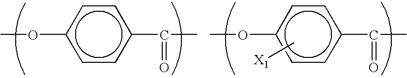wherein II is terephthalic acid or a terephthalic acid derivative having repeating structural units represented by the following formula, wherein X2is selected from the group consisting of halogen atoms, alkyl groups and aryl groups: