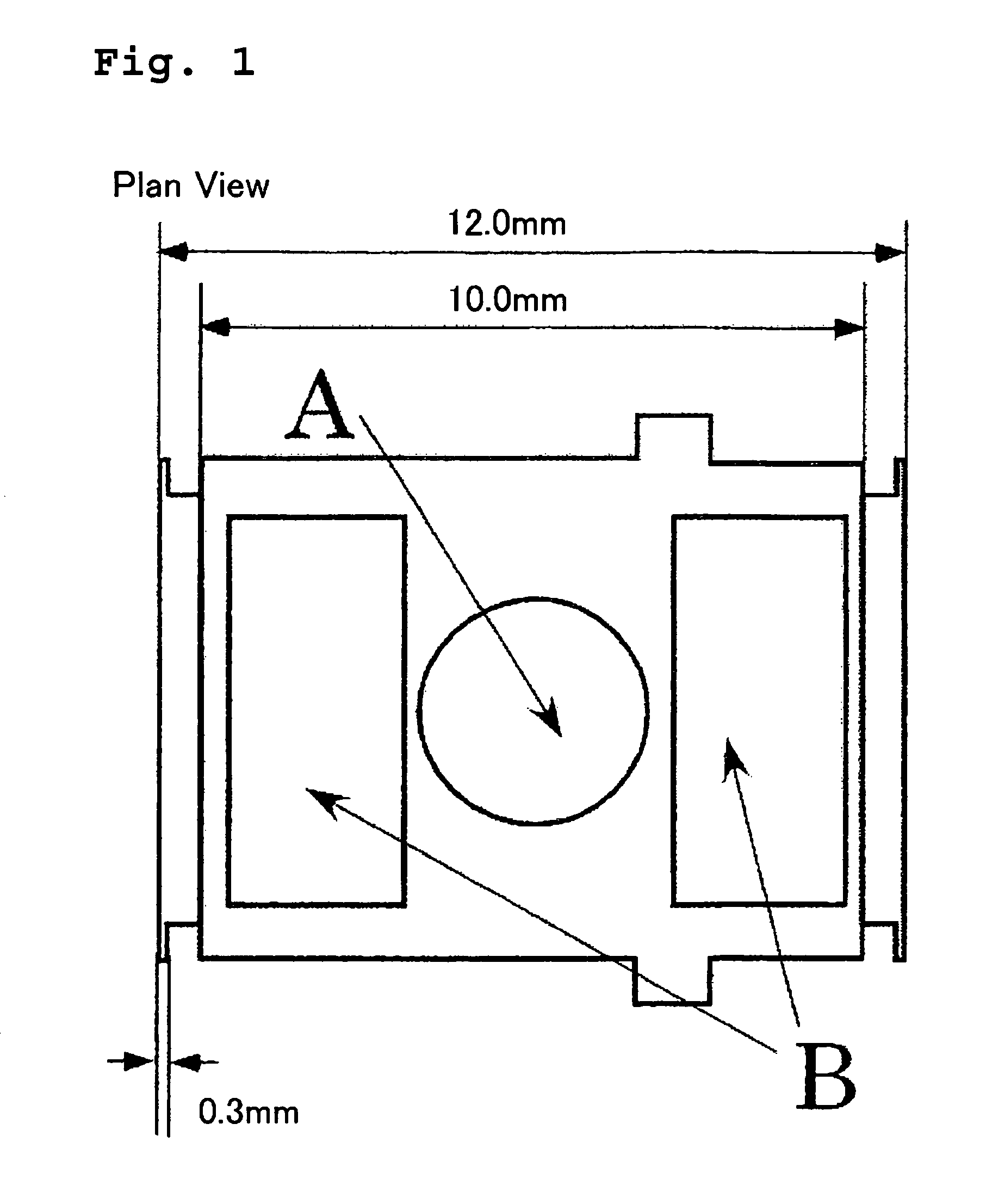 FIG. 1 illustrates a plan view of an optical pickup lens holder shape used for a performance evaluation. A shows an opening port for lens, and B shows an opening port for coil in FIG. 1.