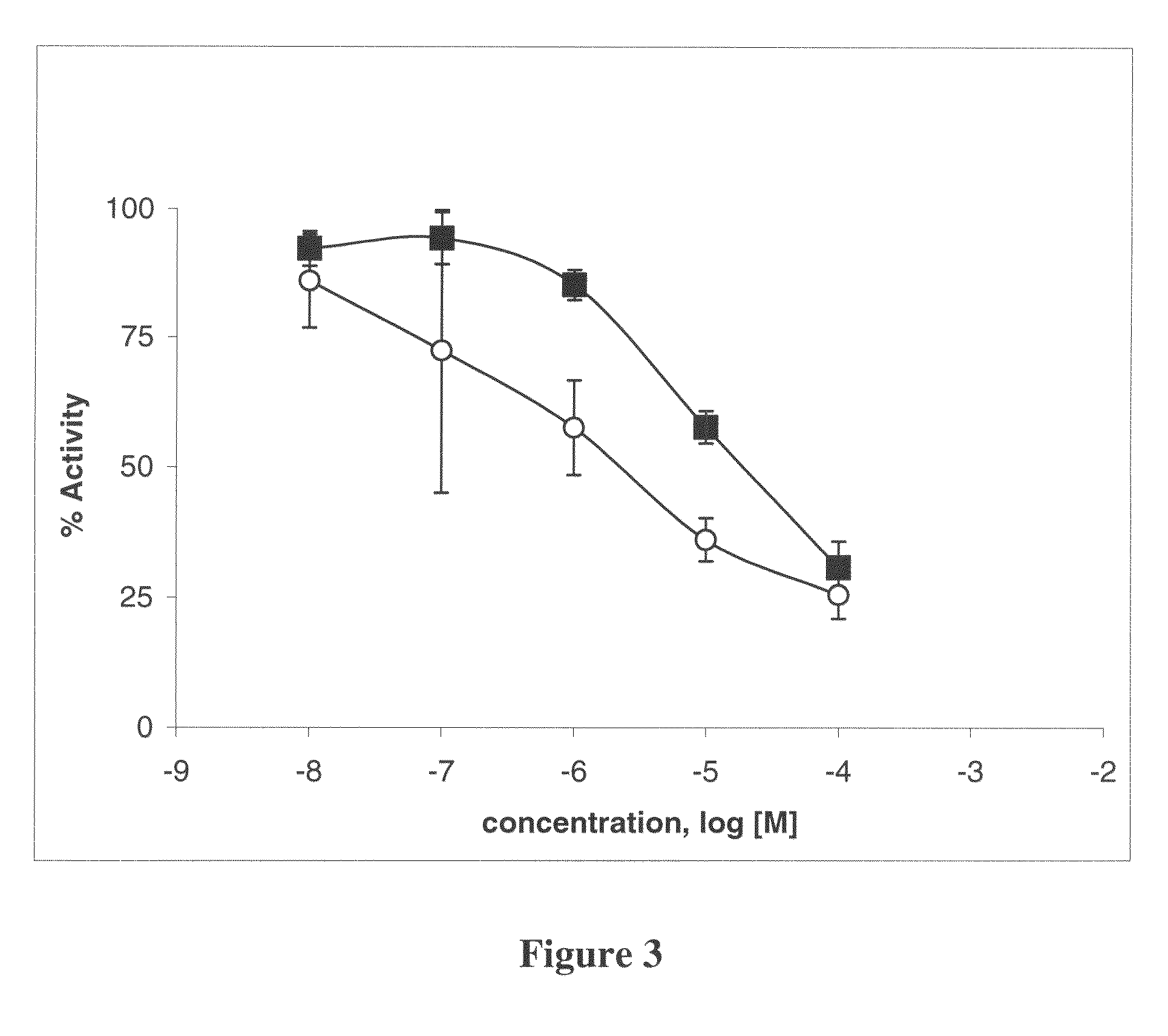 Percentage of BACE455 inhibition by various inhibitors Inhibitor III Pepstatin A Chymostatin E-64c Leupeptin BACE455 104.16 14.39 25.90 12.23 17.27 BACE501 117.54 13.14 20.44 13.14 8.03 Shown results are mean percentage of cleavage inhibition +− SEM in BACE455, BACE501 or mock-transfected cell extratct plus the indicated inhibitor (100 μM each). Example 6